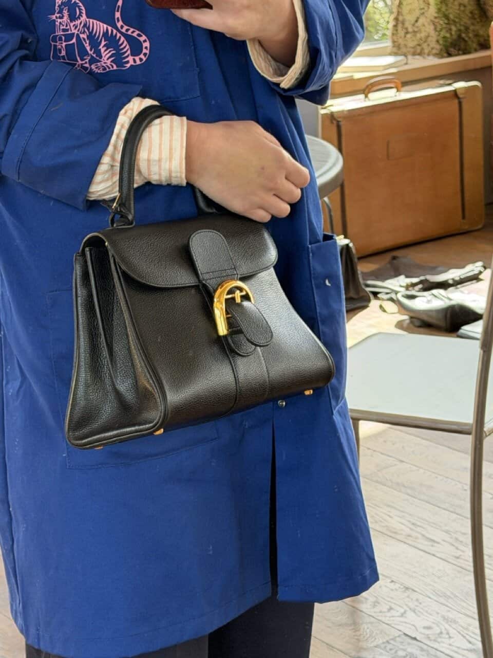 Atelier Mémé besteedt veel tijd en aandacht aan het zorgvuldig selecteren en, indien nodig, retoucheren van originele Delvaux handtassen. De tas is zo correct mogelijk in beeld gebracht met imperfecties die horen bij de vintage staat en manuele ambacht van zowel de Delvauxtas als de ambacht van het restaureren.