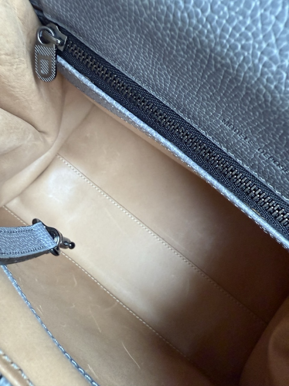 Atelier Mémé besteedt veel tijd en aandacht aan het zorgvuldig selecteren en, indien nodig, retoucheren van originele Delvaux handtassen. De tas is zo correct mogelijk in beeld gebracht met imperfecties die horen bij de vintage staat en manuele ambacht van zowel de Delvauxtas als de ambacht van het restaureren.