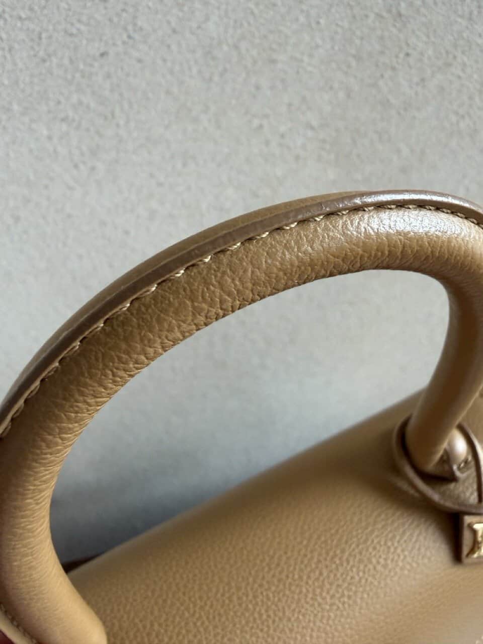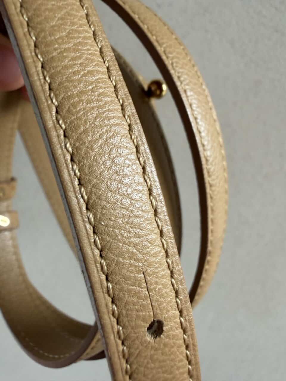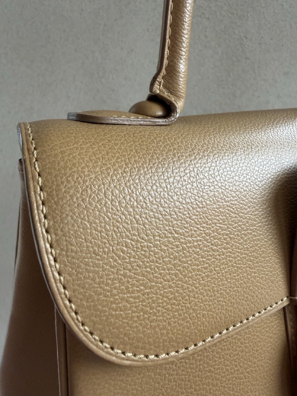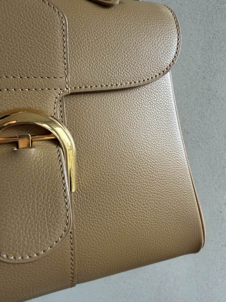 Atelier Mémé besteedt veel tijd en aandacht aan het zorgvuldig selecteren en, indien nodig, retoucheren van originele Delvaux handtassen. De tas is zo correct mogelijk in beeld gebracht met imperfecties die horen bij de vintage staat en manuele ambacht van zowel de Delvauxtas als de ambacht van het restaureren.