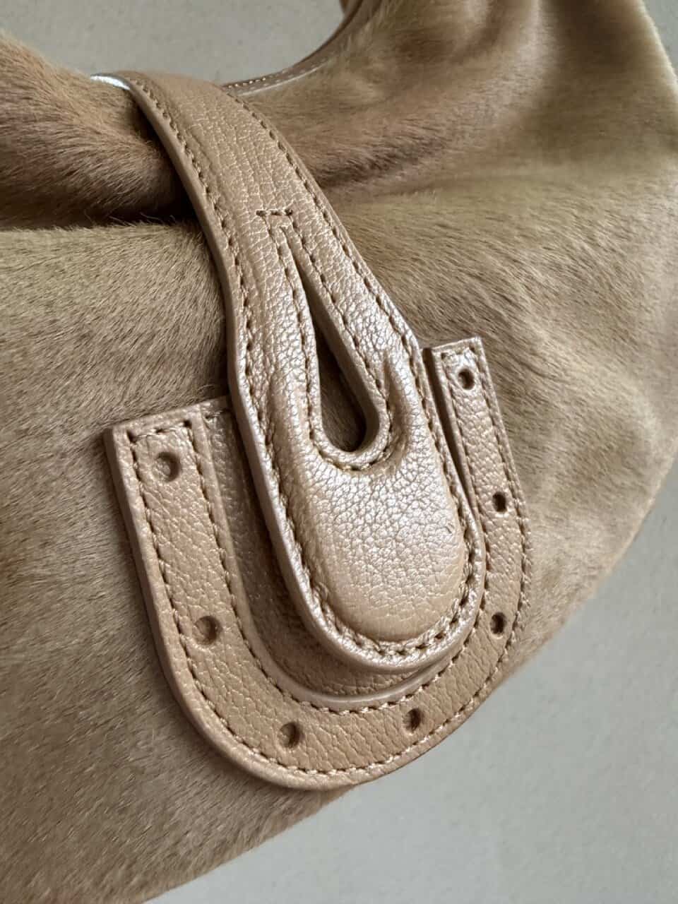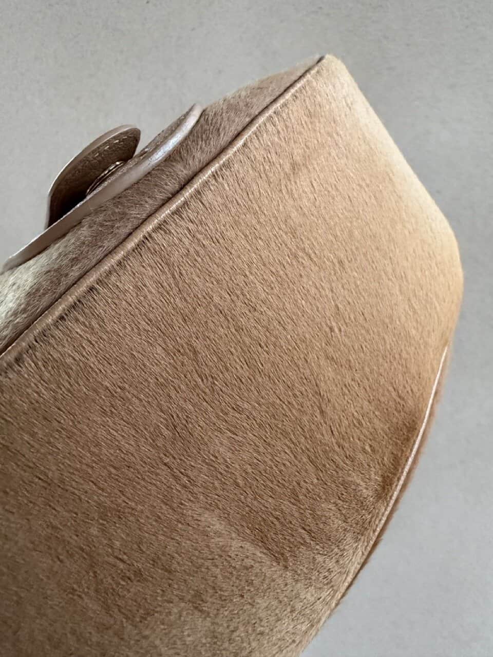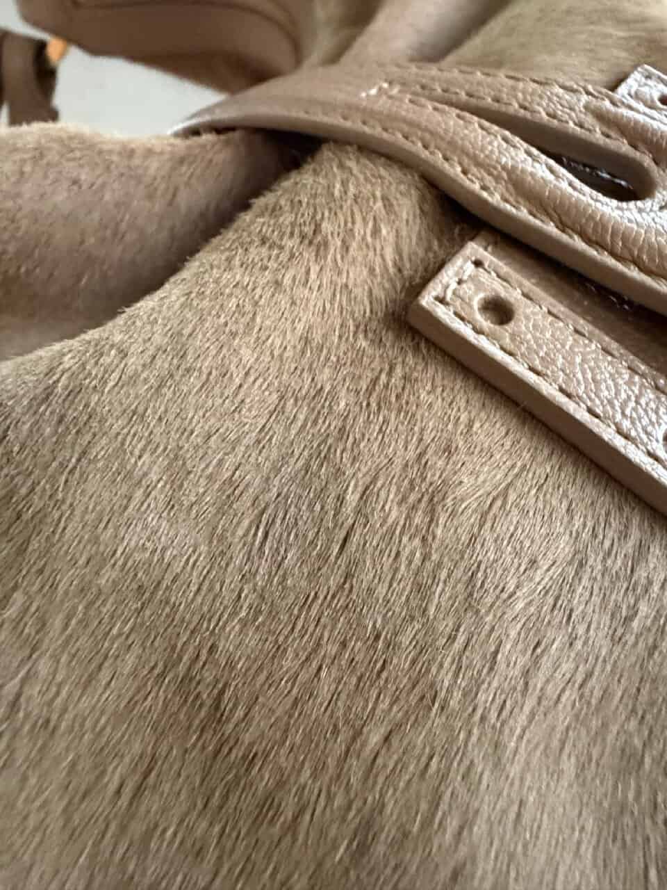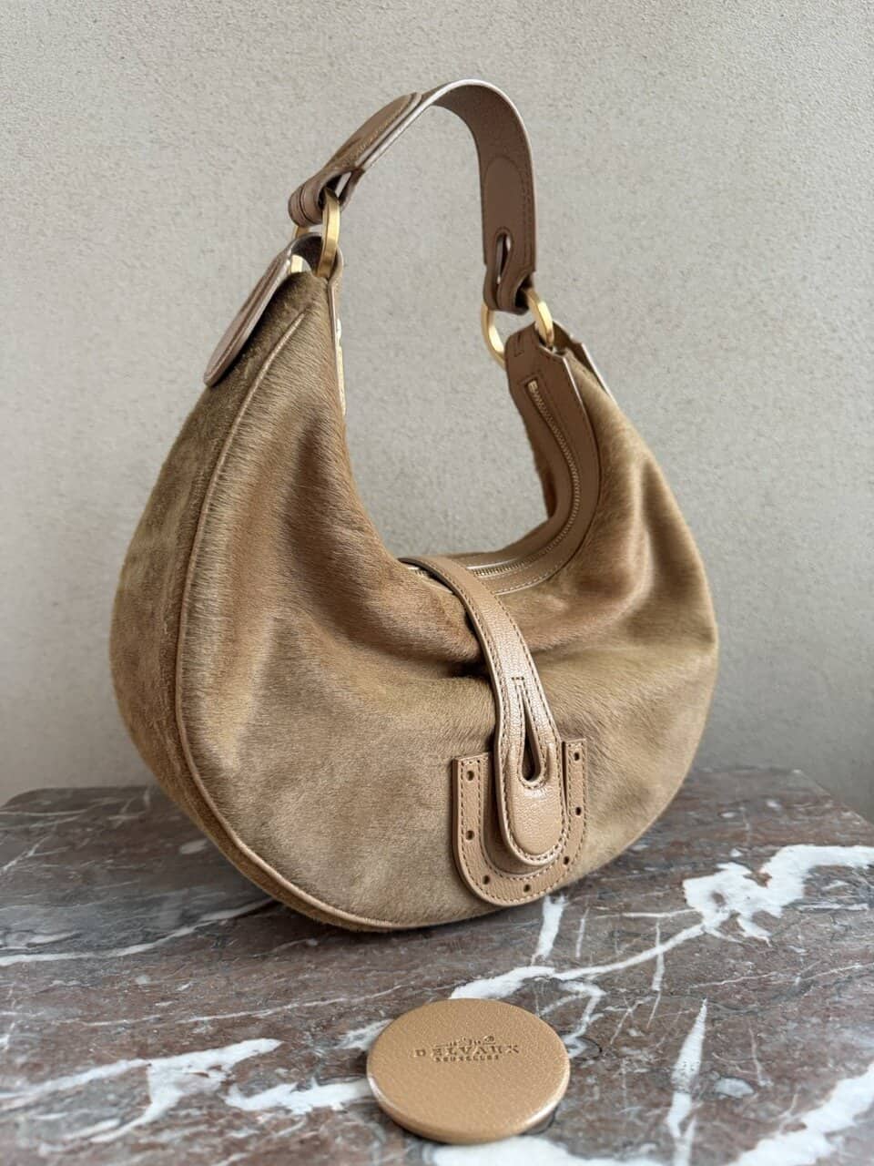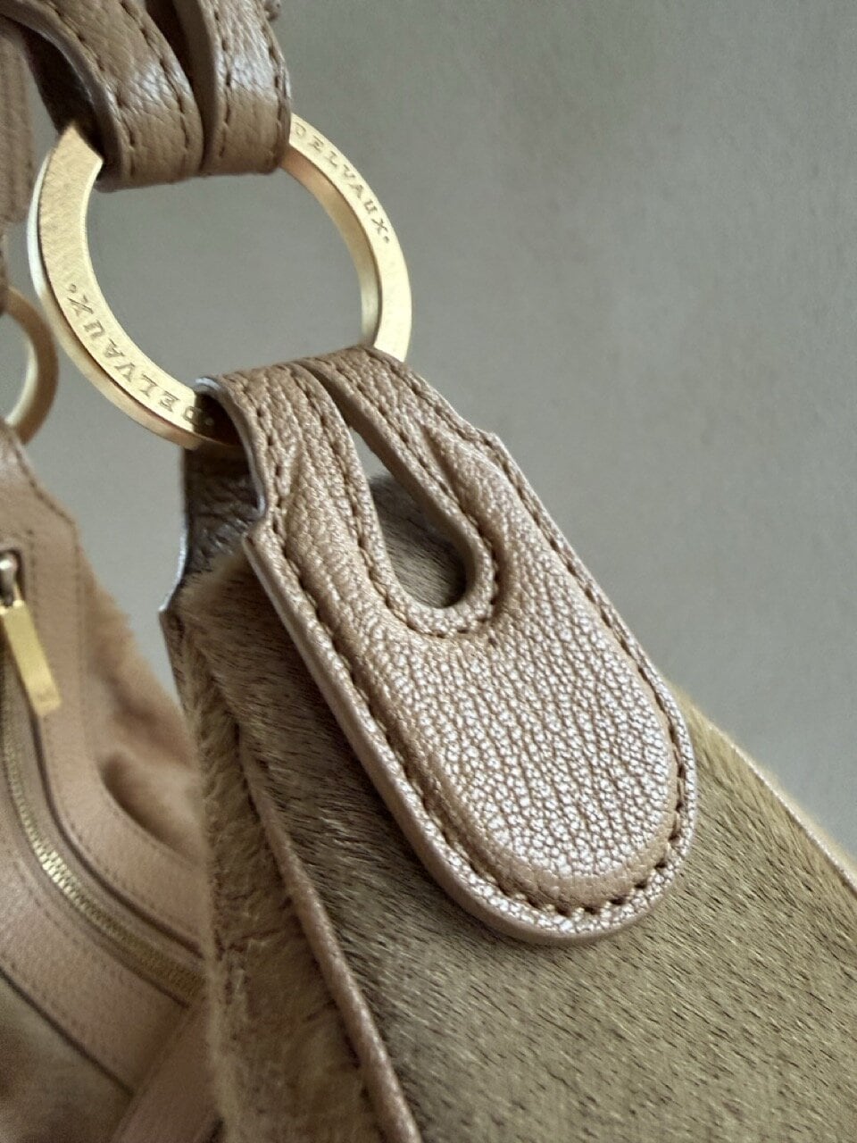 Kamelenhaar is eerder uitzonderlijk bij Delvaux. Deze tas is zeldzaam te noemen.