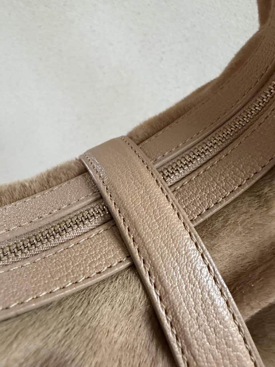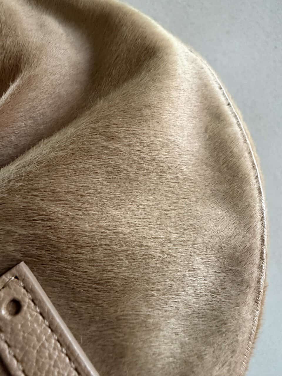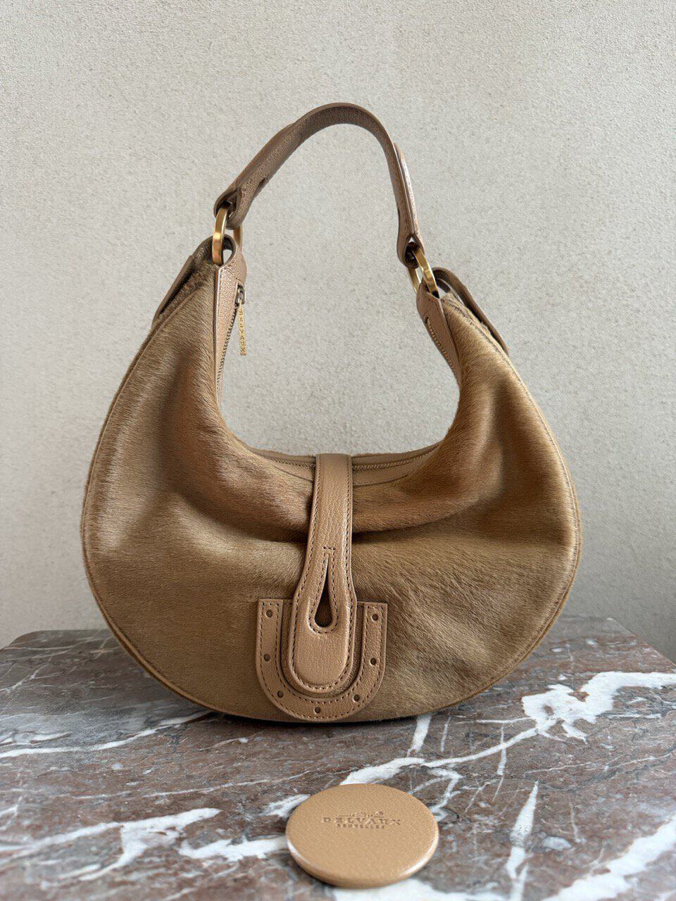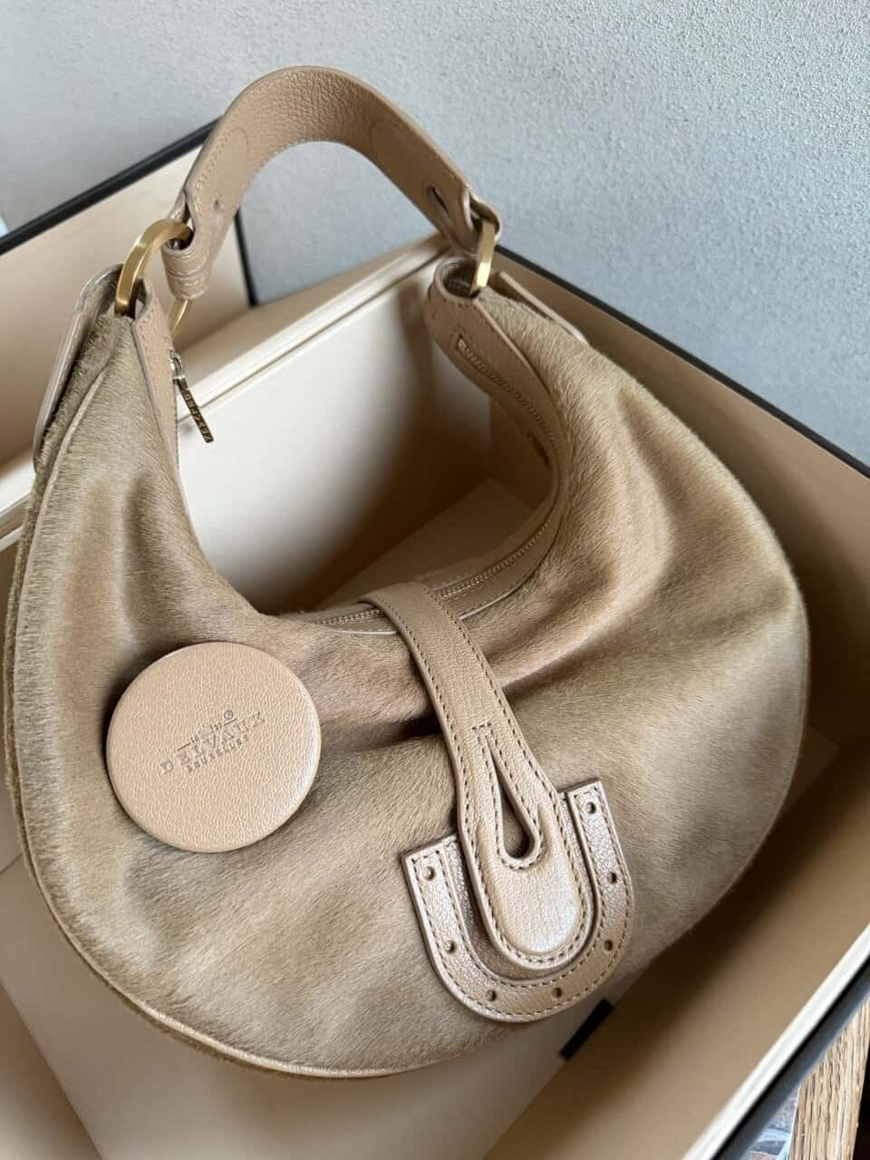 Kamelenhaar is eerder uitzonderlijk bij Delvaux. Deze tas is zeldzaam te noemen.
