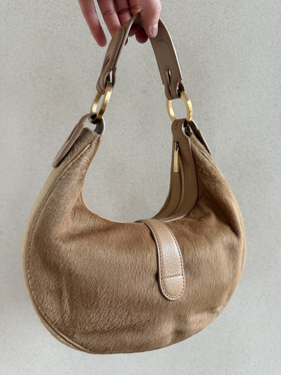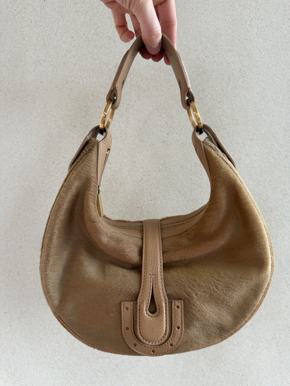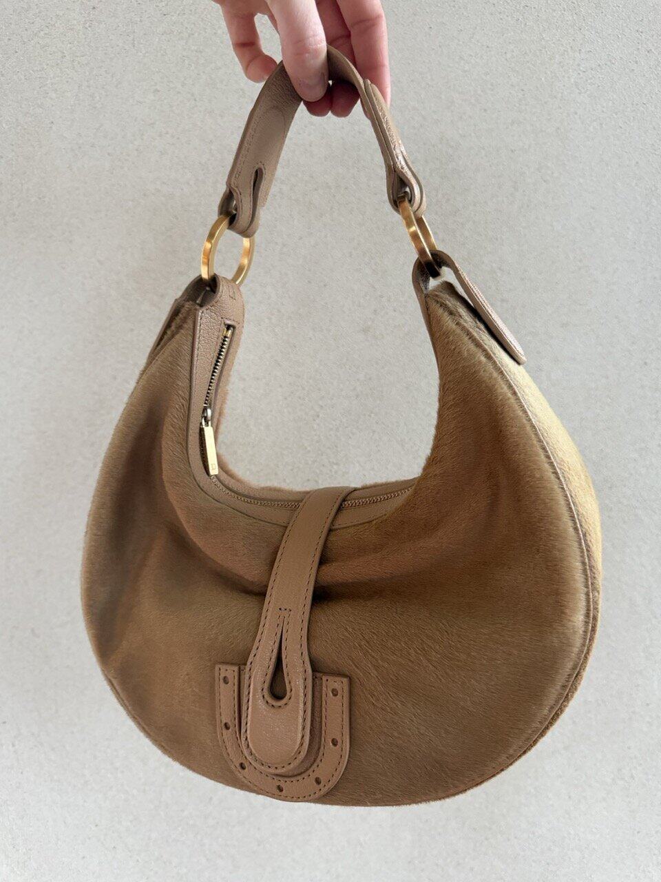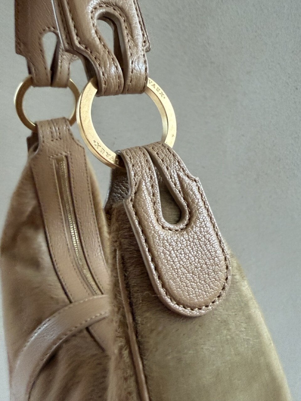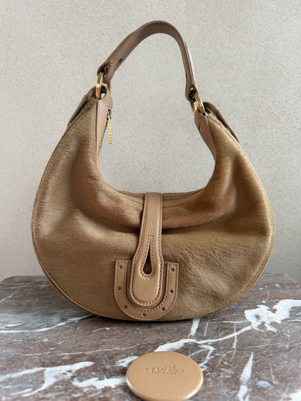 Kamelenhaar is eerder uitzonderlijk bij Delvaux. Deze tas is zeldzaam te noemen.