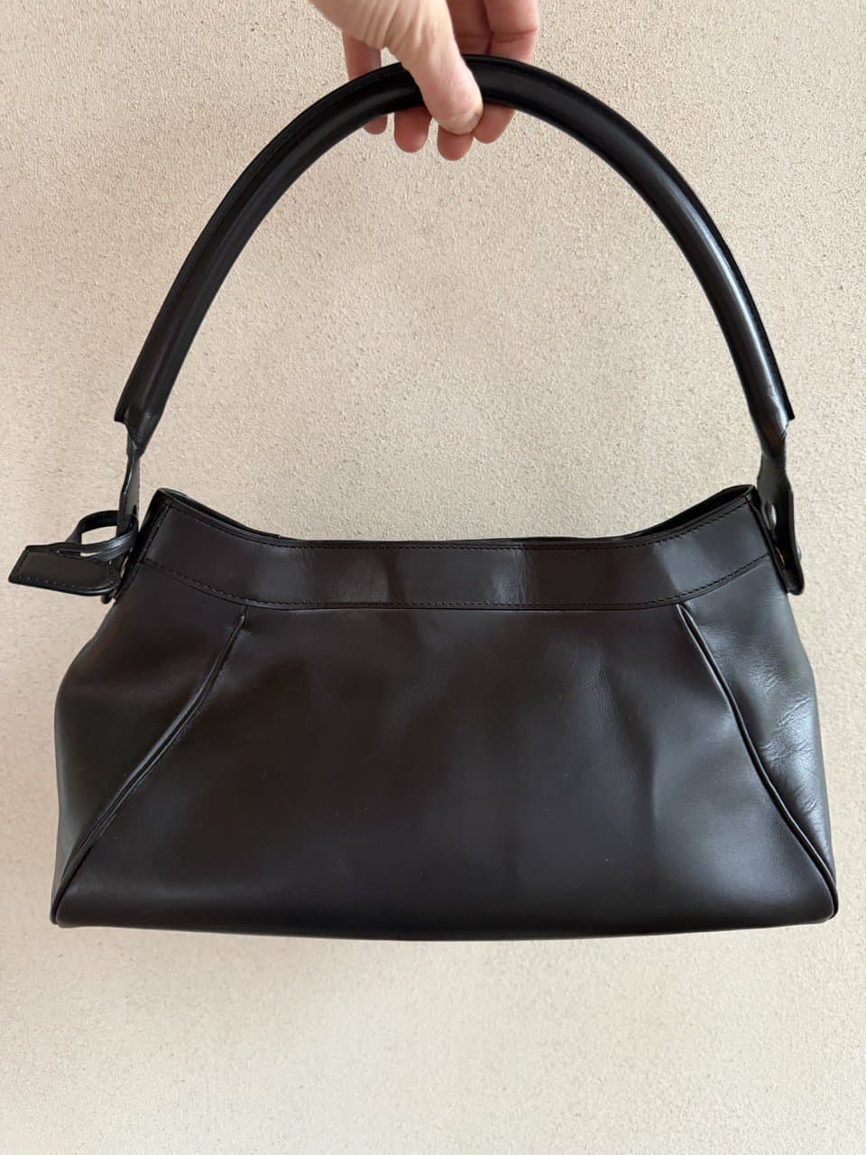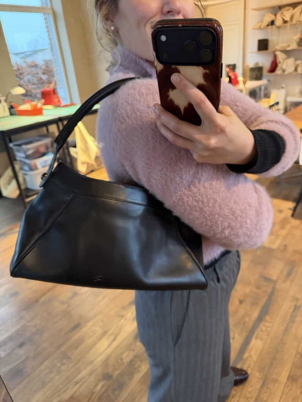 Je draagt hem over de schouder of aan de hand. Hij is binnenin gevoerd met een prachtige suède.