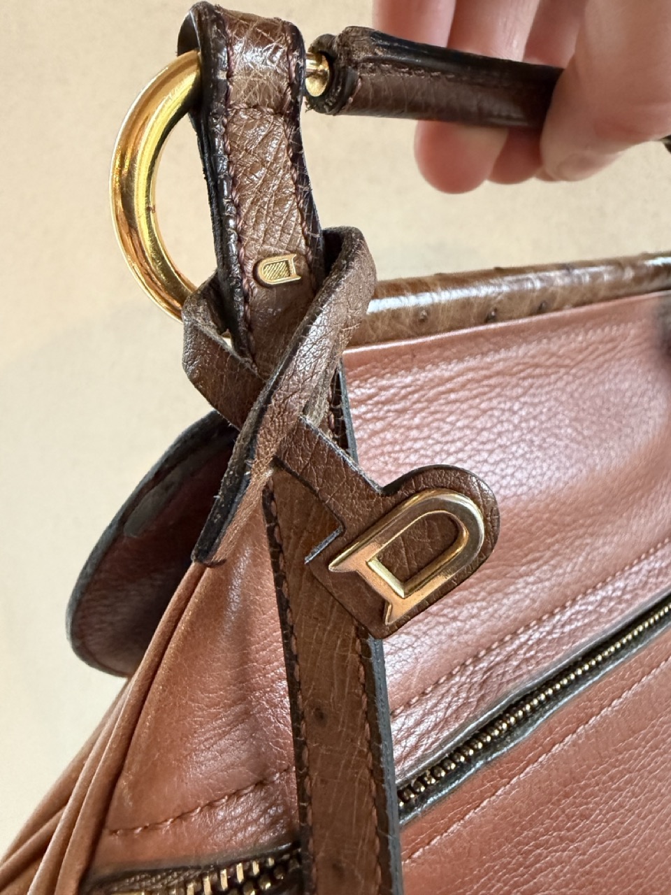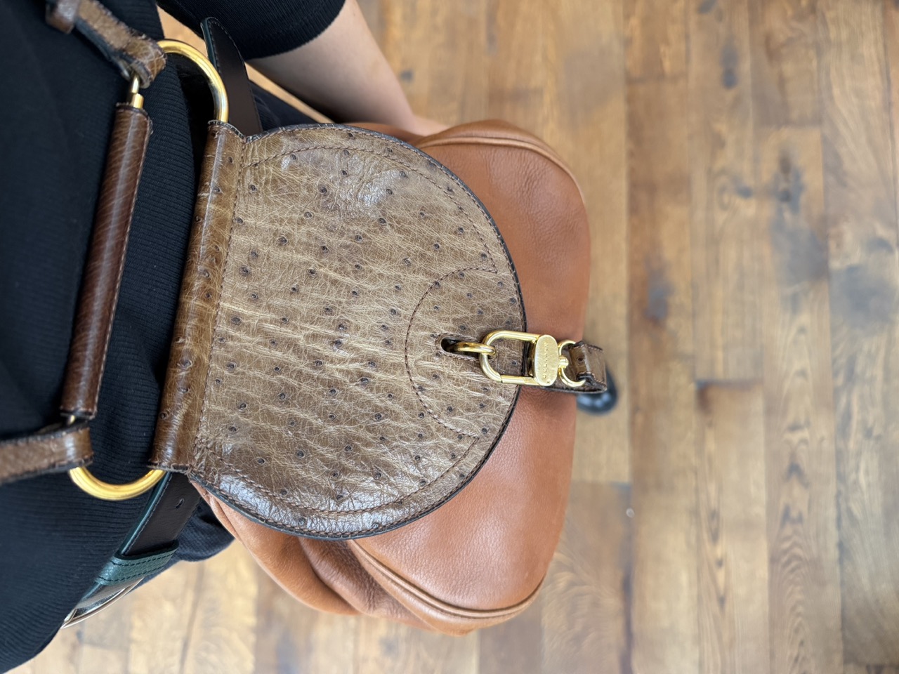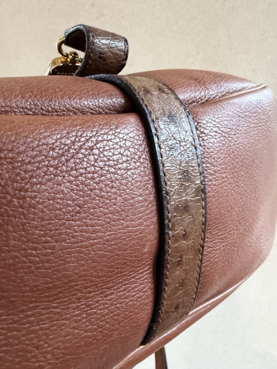De tas is uitgevoerd in autruche en wordt alleen maar mooier met de jaren.