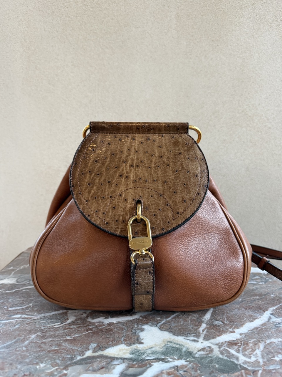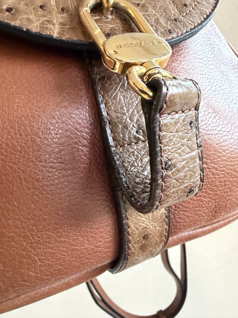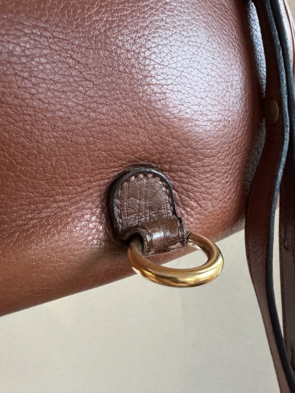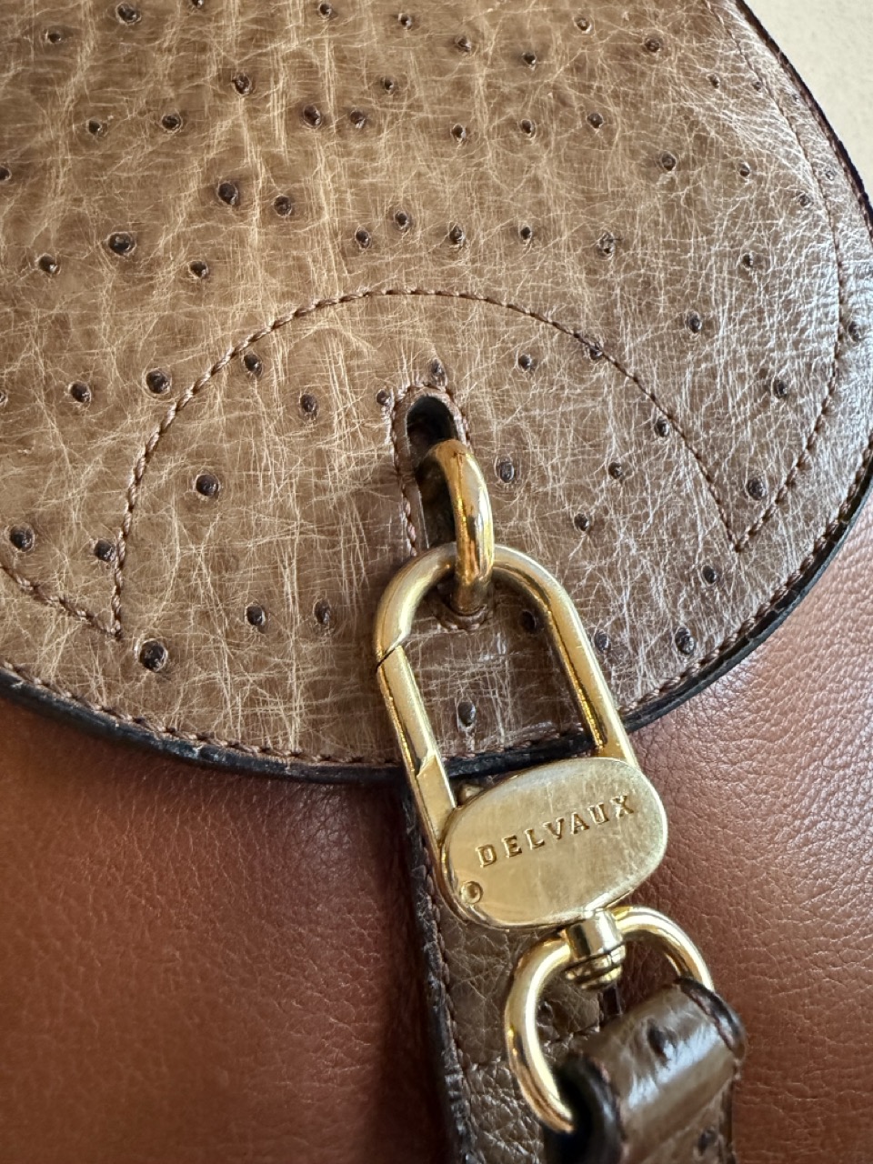 De tas is uitgevoerd in autruche en wordt alleen maar mooier met de jaren.