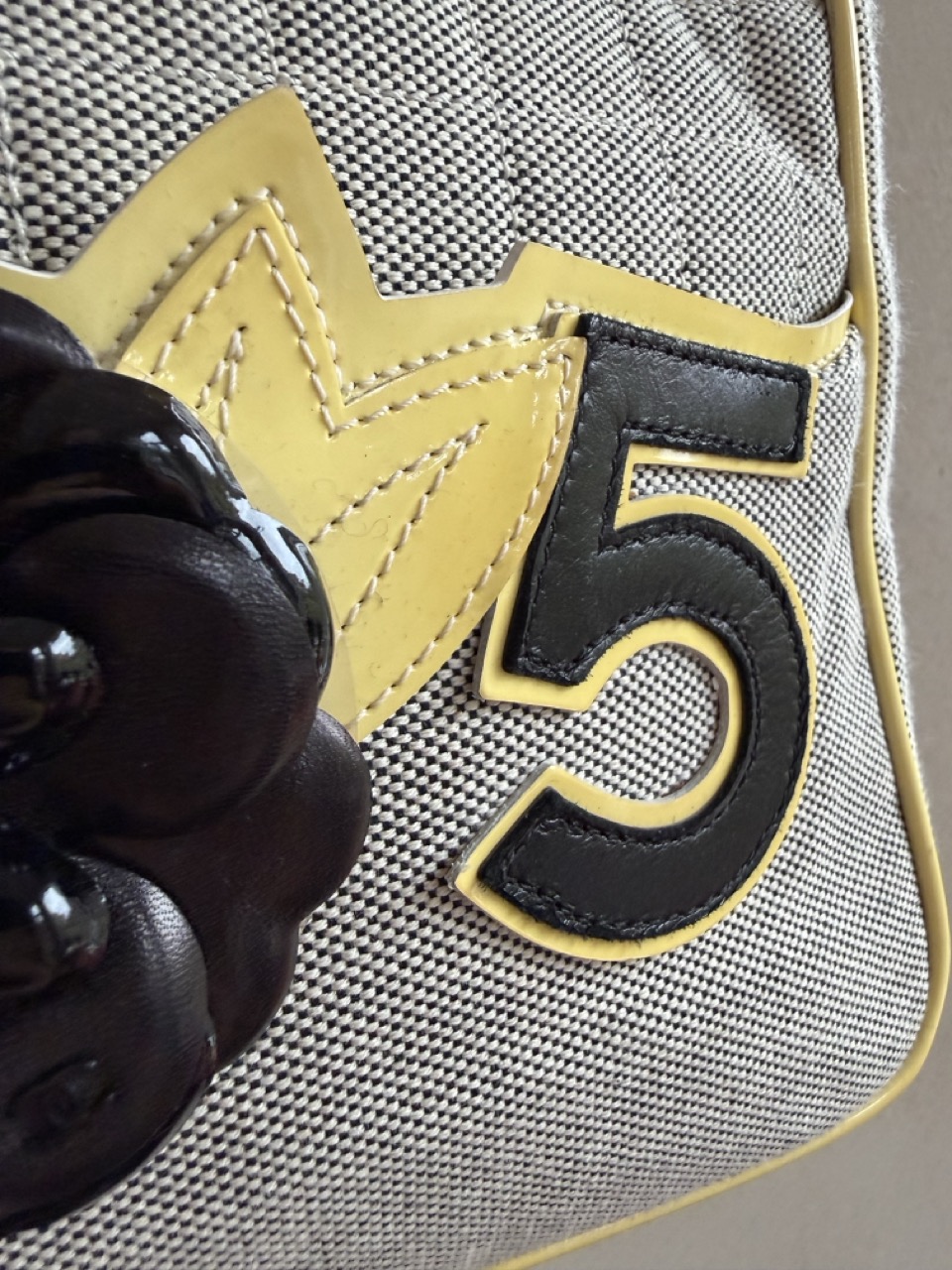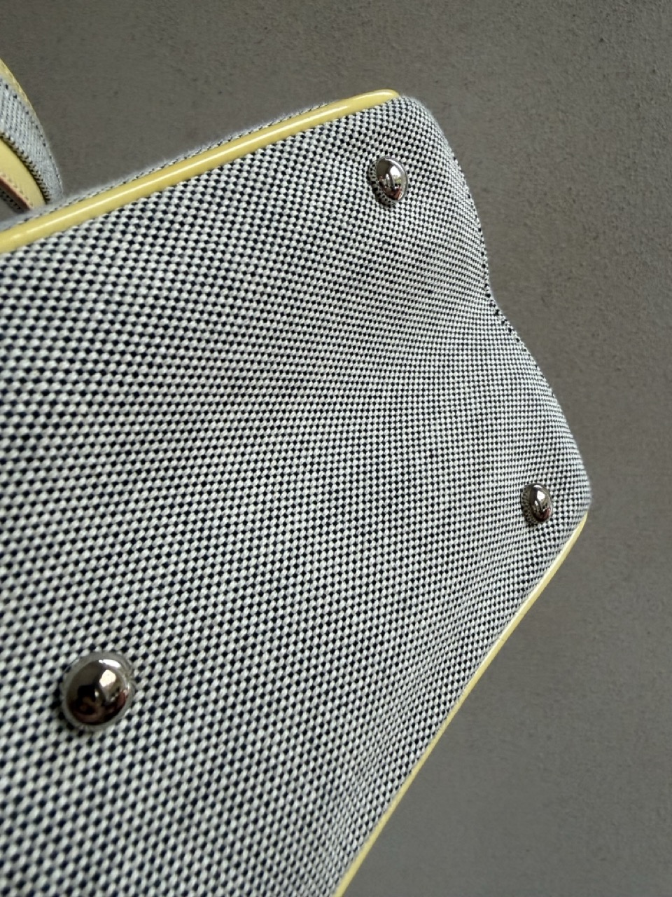 Eentje in canvas met magnifieke details in leder.