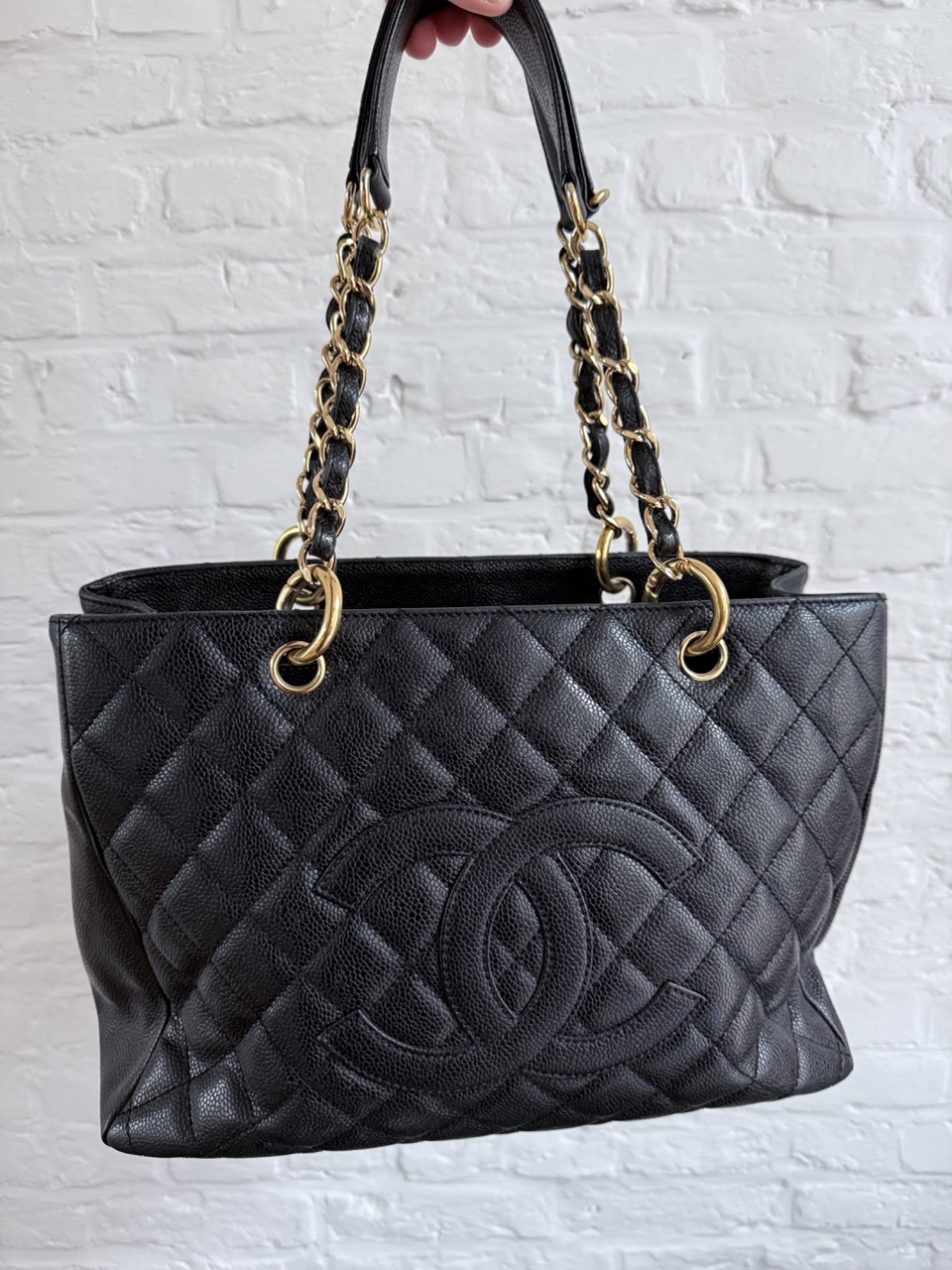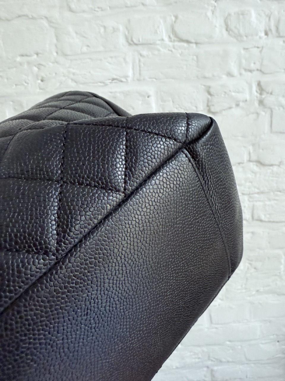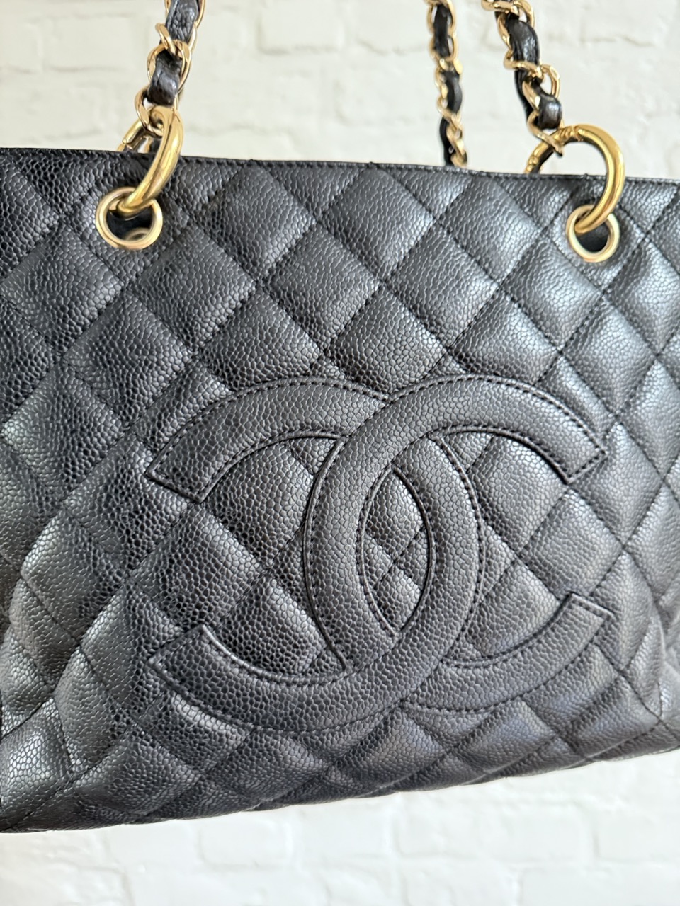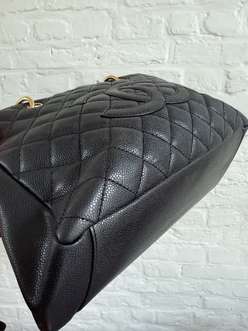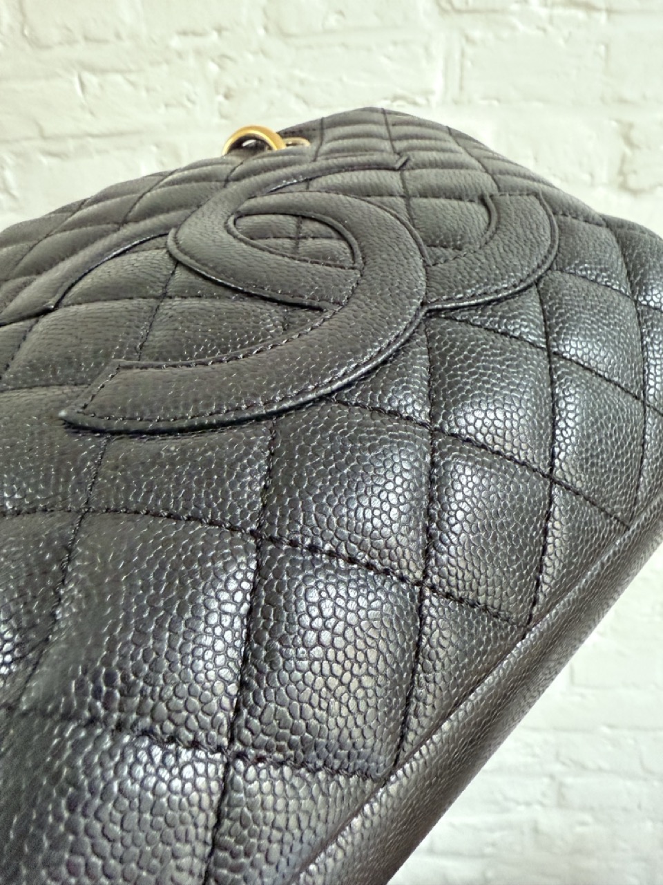 Het caviar leder is in topconditie, net als de gouden hardware.