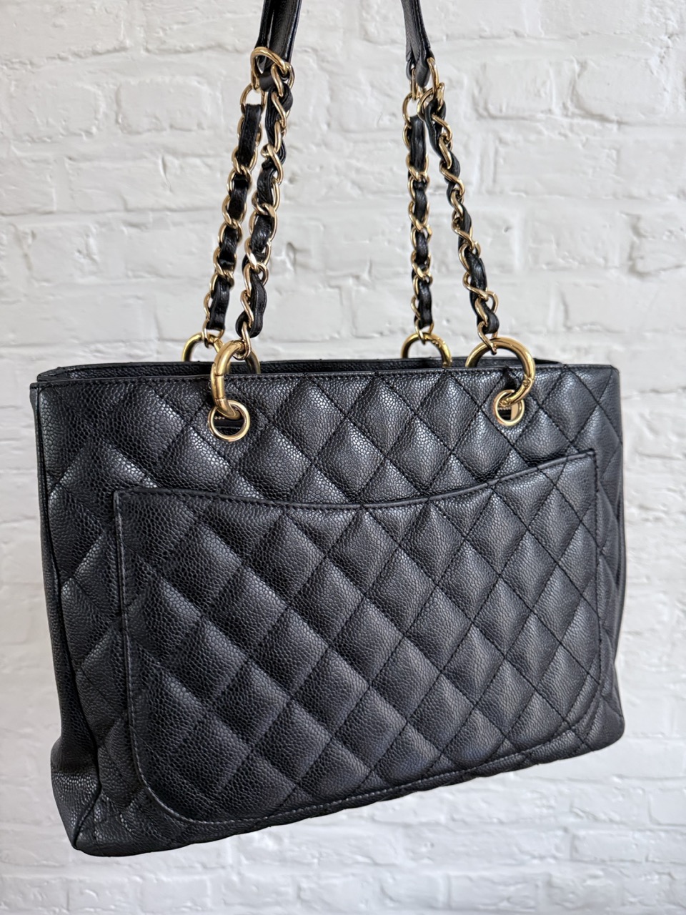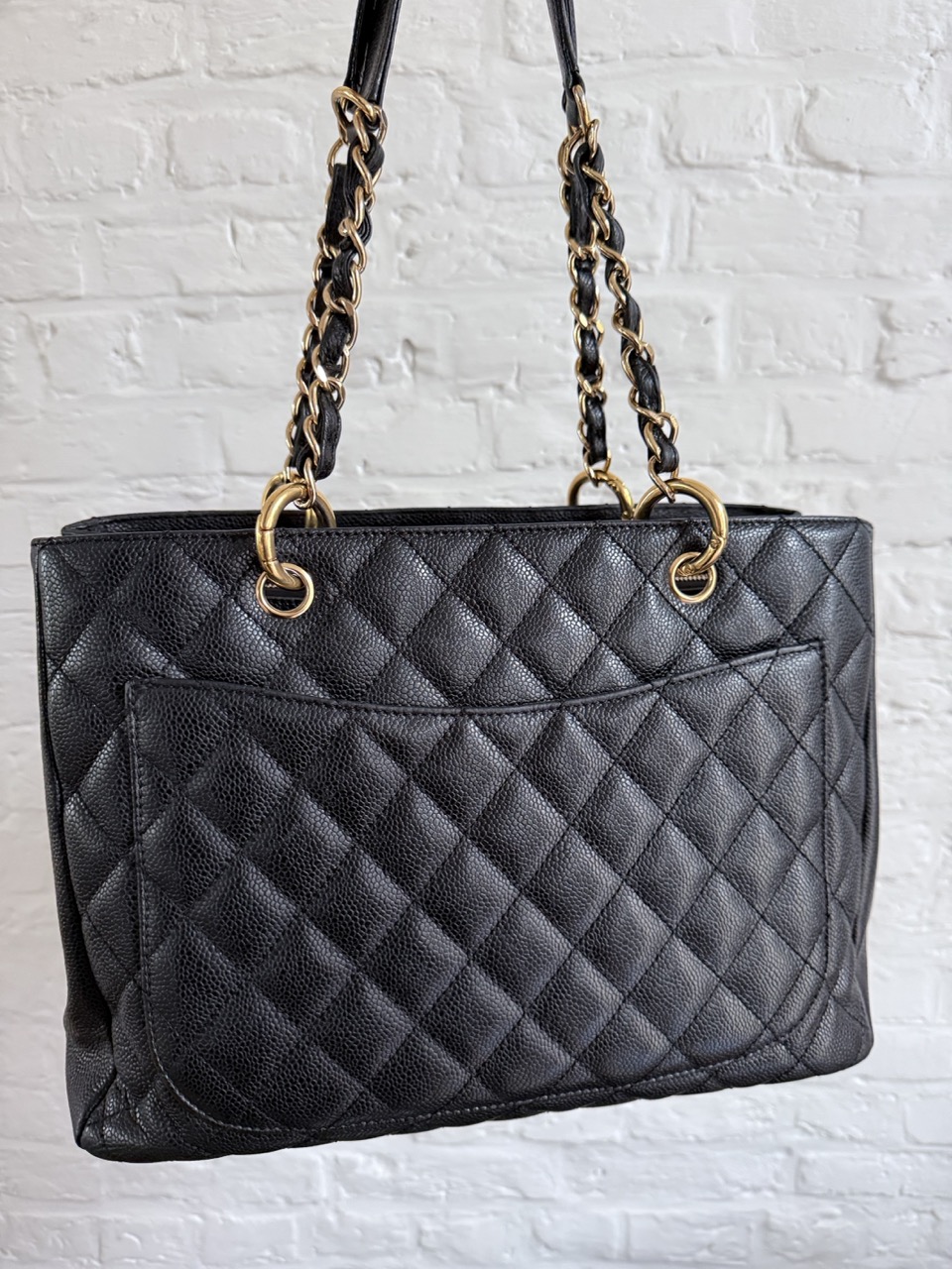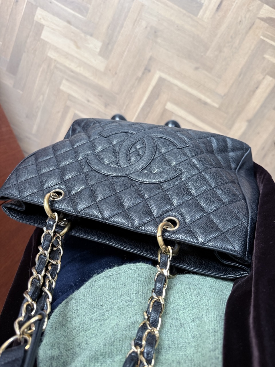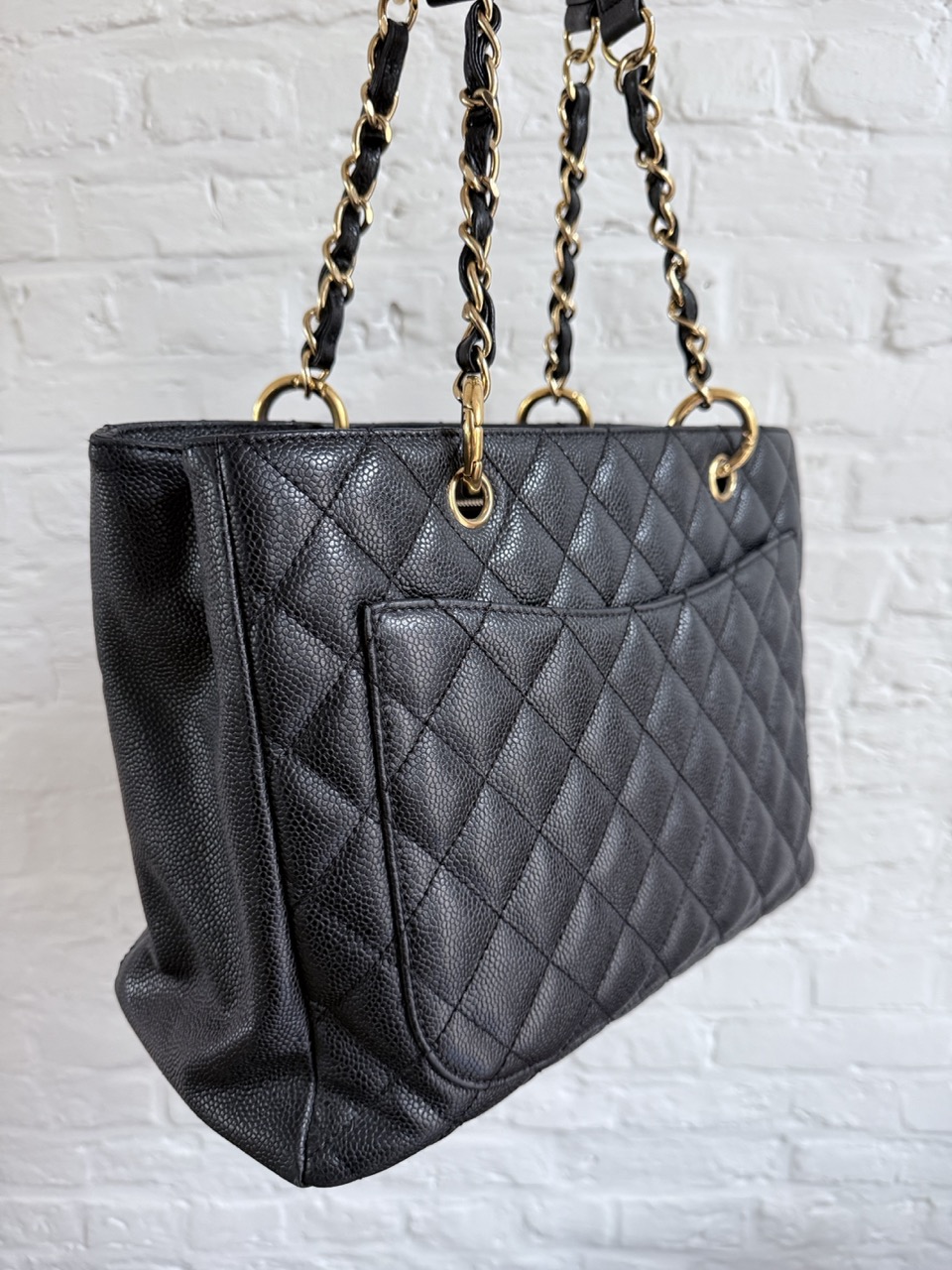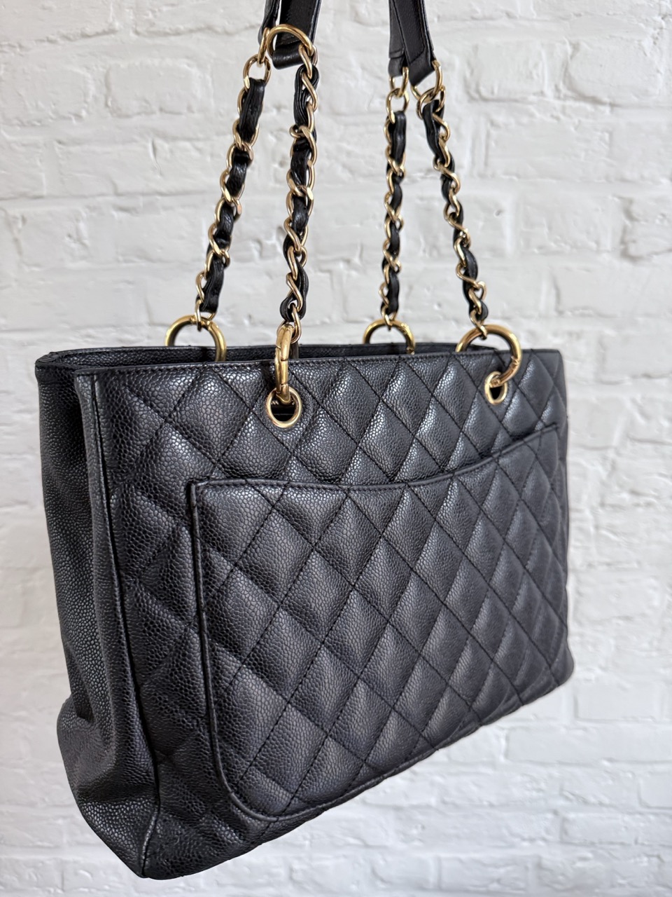 Het caviar leder is in topconditie, net als de gouden hardware.