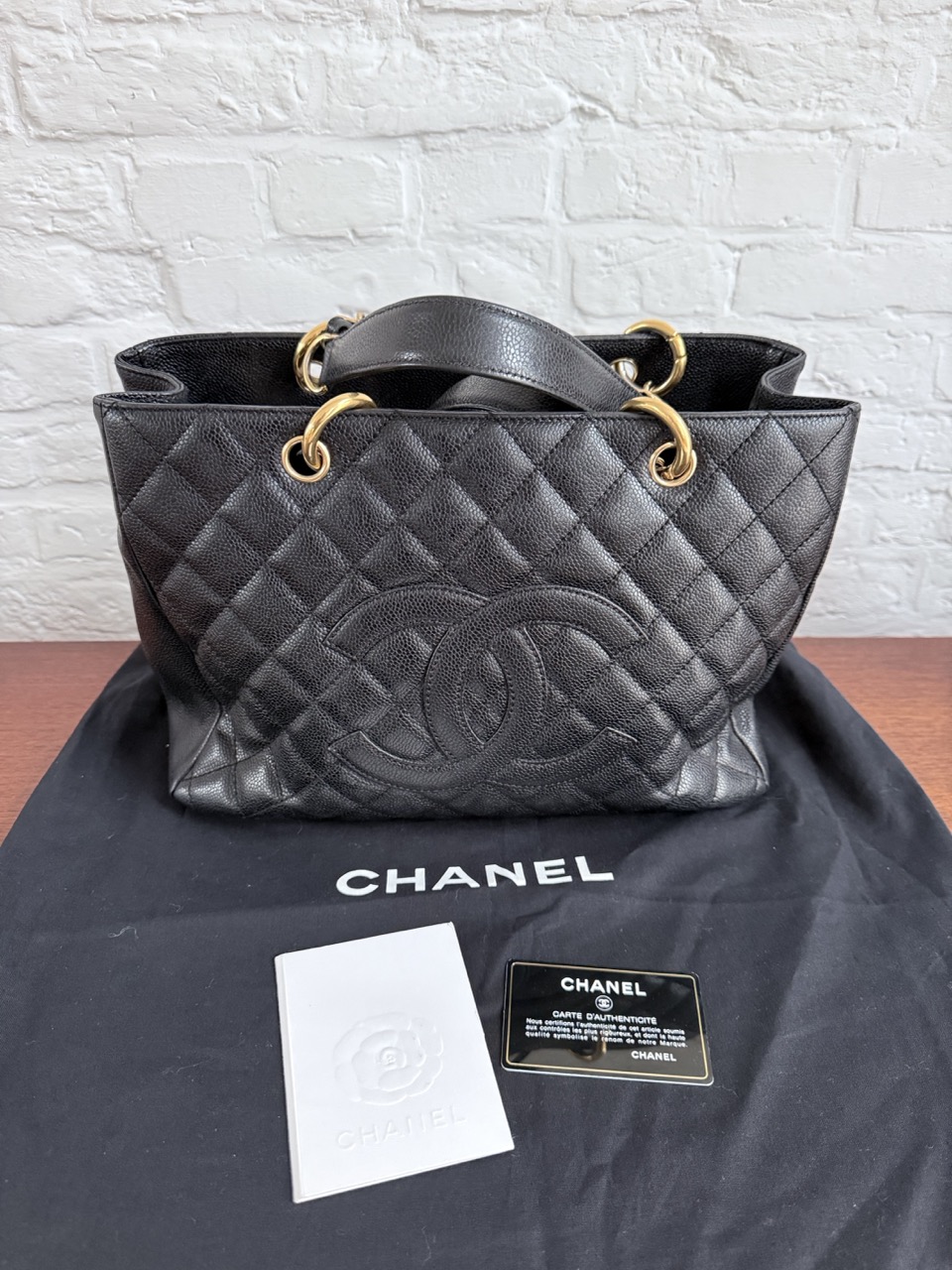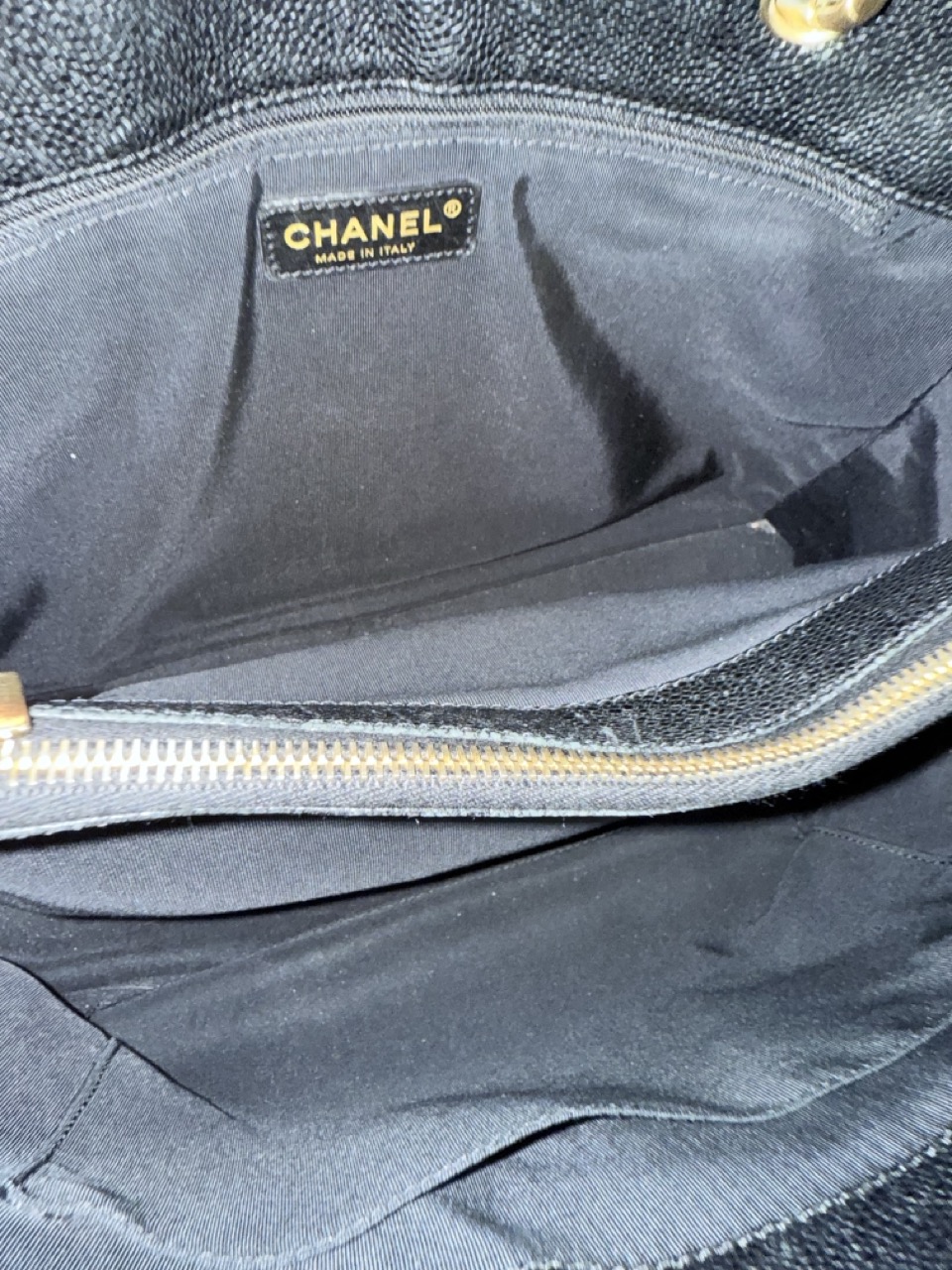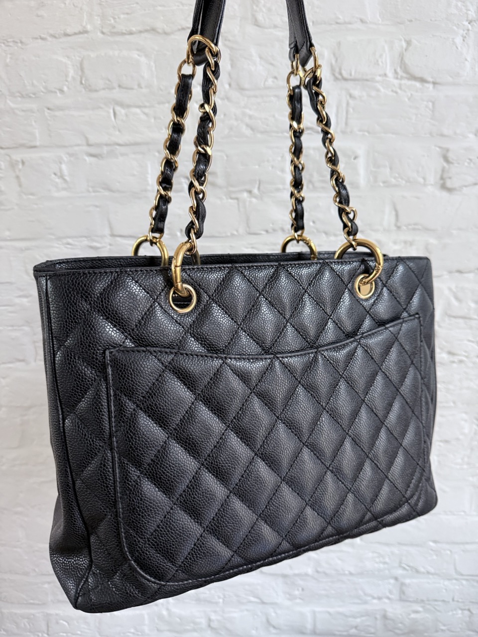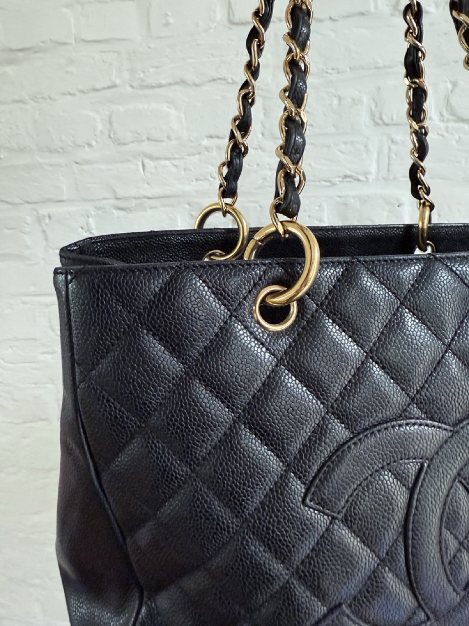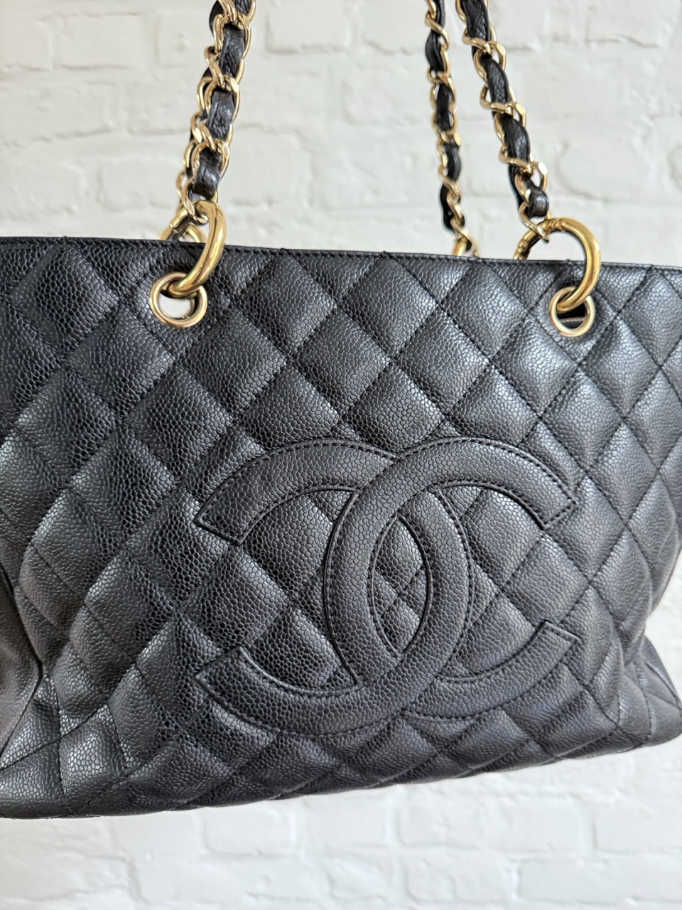 Het caviar leder is in topconditie, net als de gouden hardware.