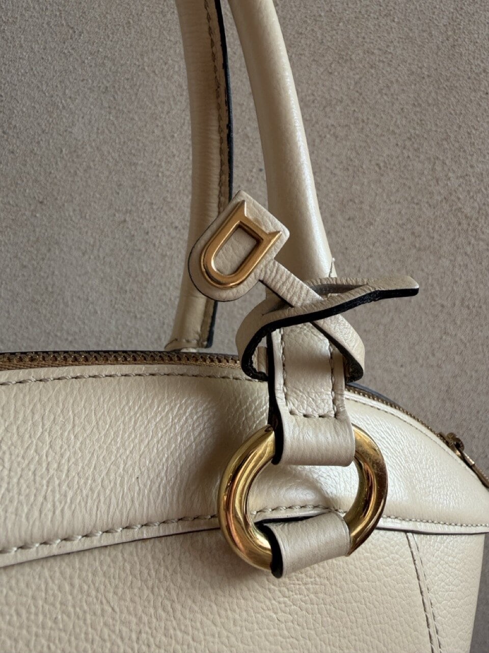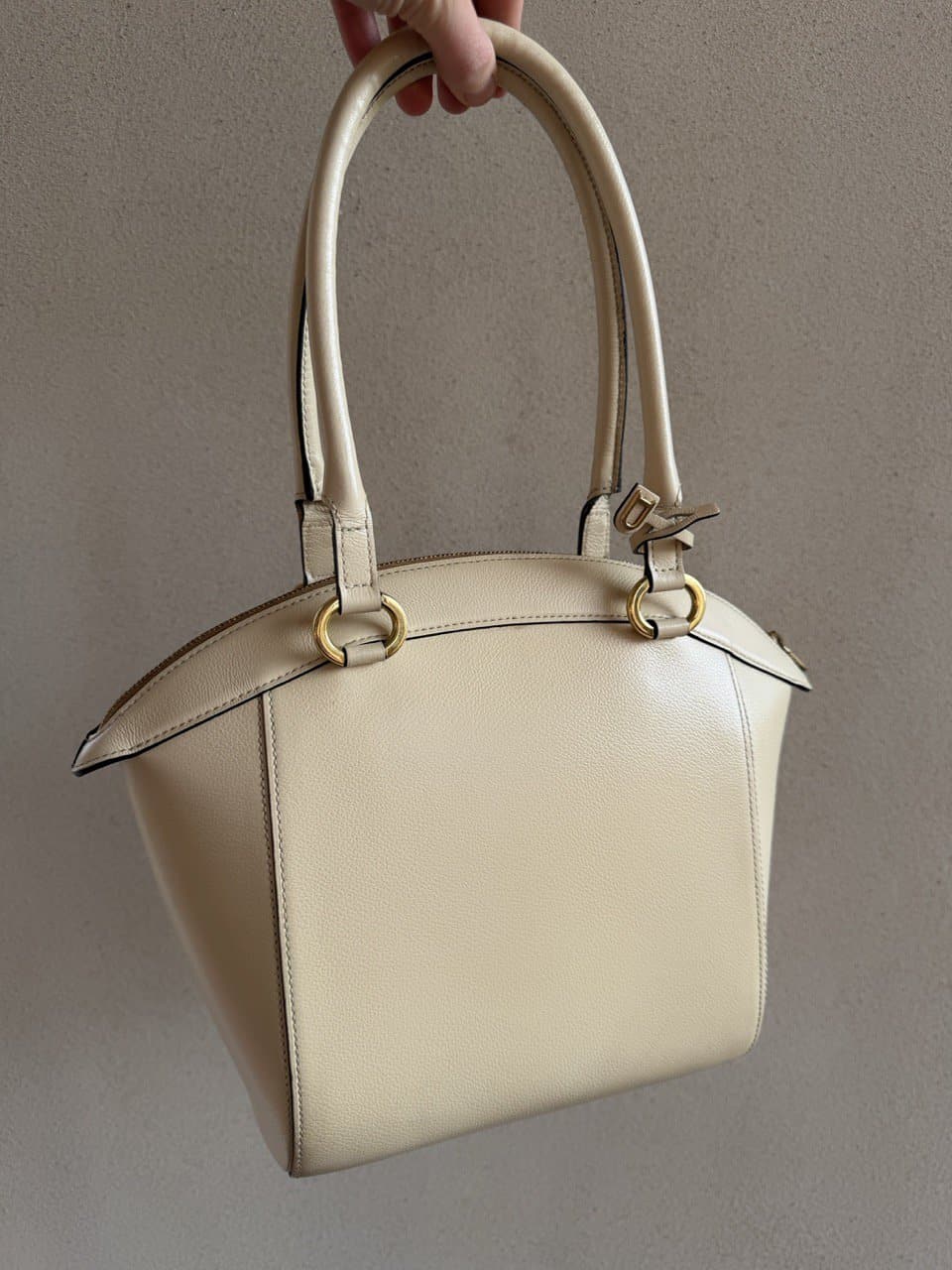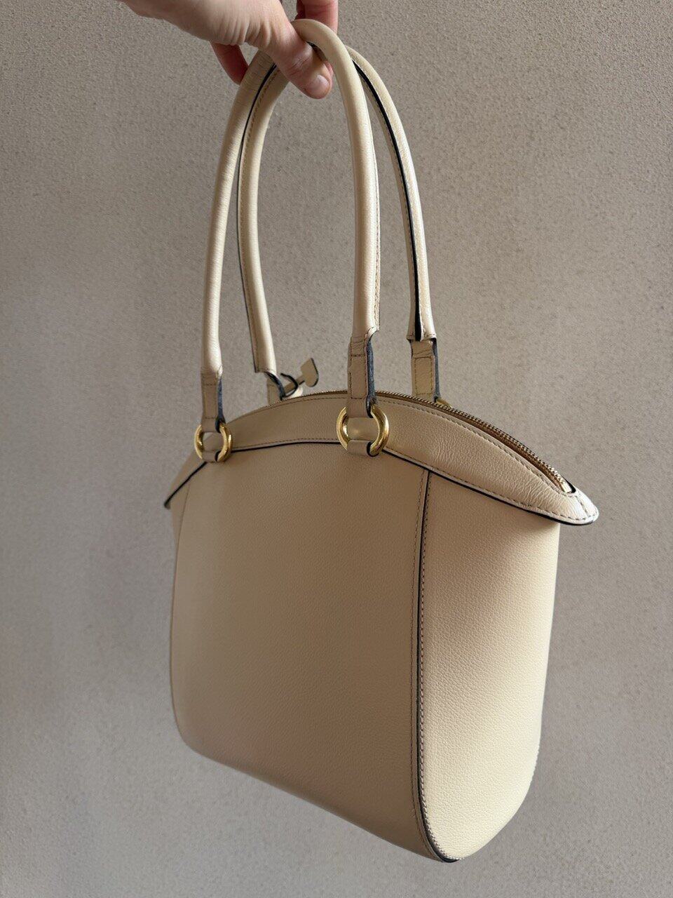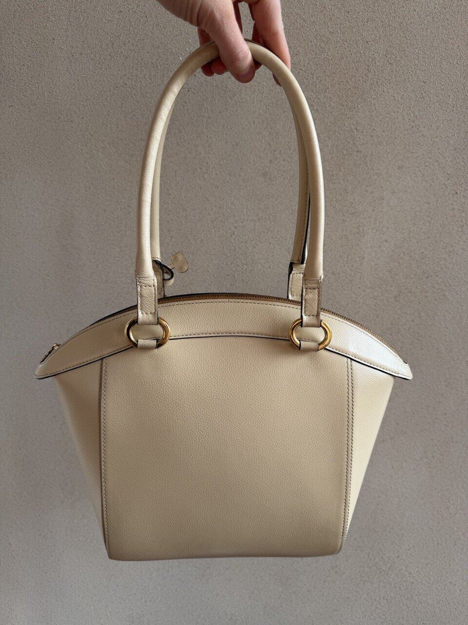 De Charme tas past helemaal bij zijn naam! Deze prachtige Delvaux tas is gemaakt van prachtig ivoorkleurig leder en heeft bijpassende goudkleurige hardware. Dit elegante ontwerp is net zo praktisch als stijlvol. De relatief grote tas opent met de bovenste rits naar het cognac suède interieur, dat twee zijvakken heeft.
