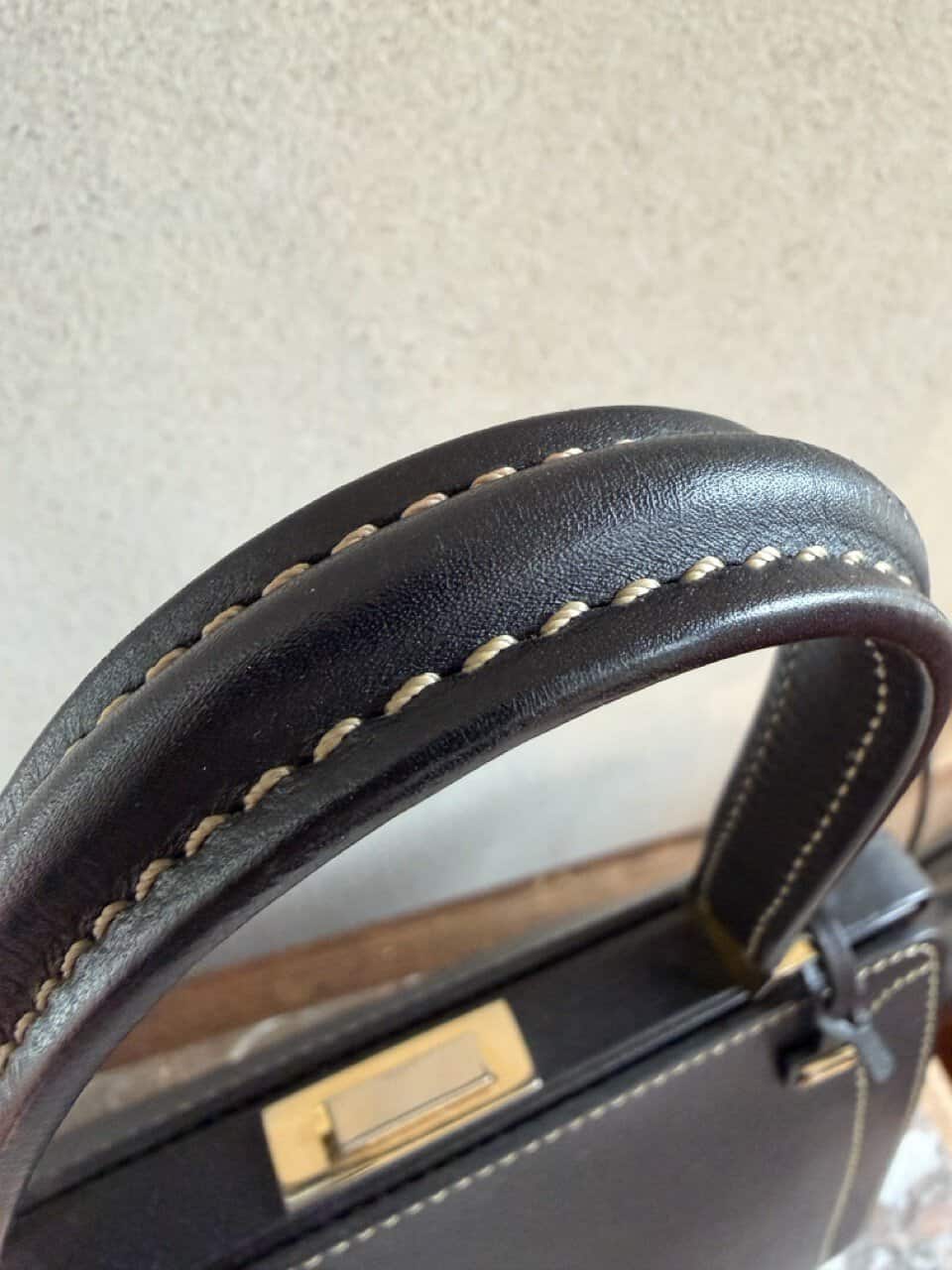 Atelier Mémé besteedt veel tijd en aandacht aan het zorgvuldig selecteren en, indien nodig, retoucheren van originele Delvaux handtassen. De tas is zo correct mogelijk in beeld gebracht met imperfecties die horen bij de vintage staat en manuele ambacht van zowel de Delvauxtas als de ambacht van het restaureren.