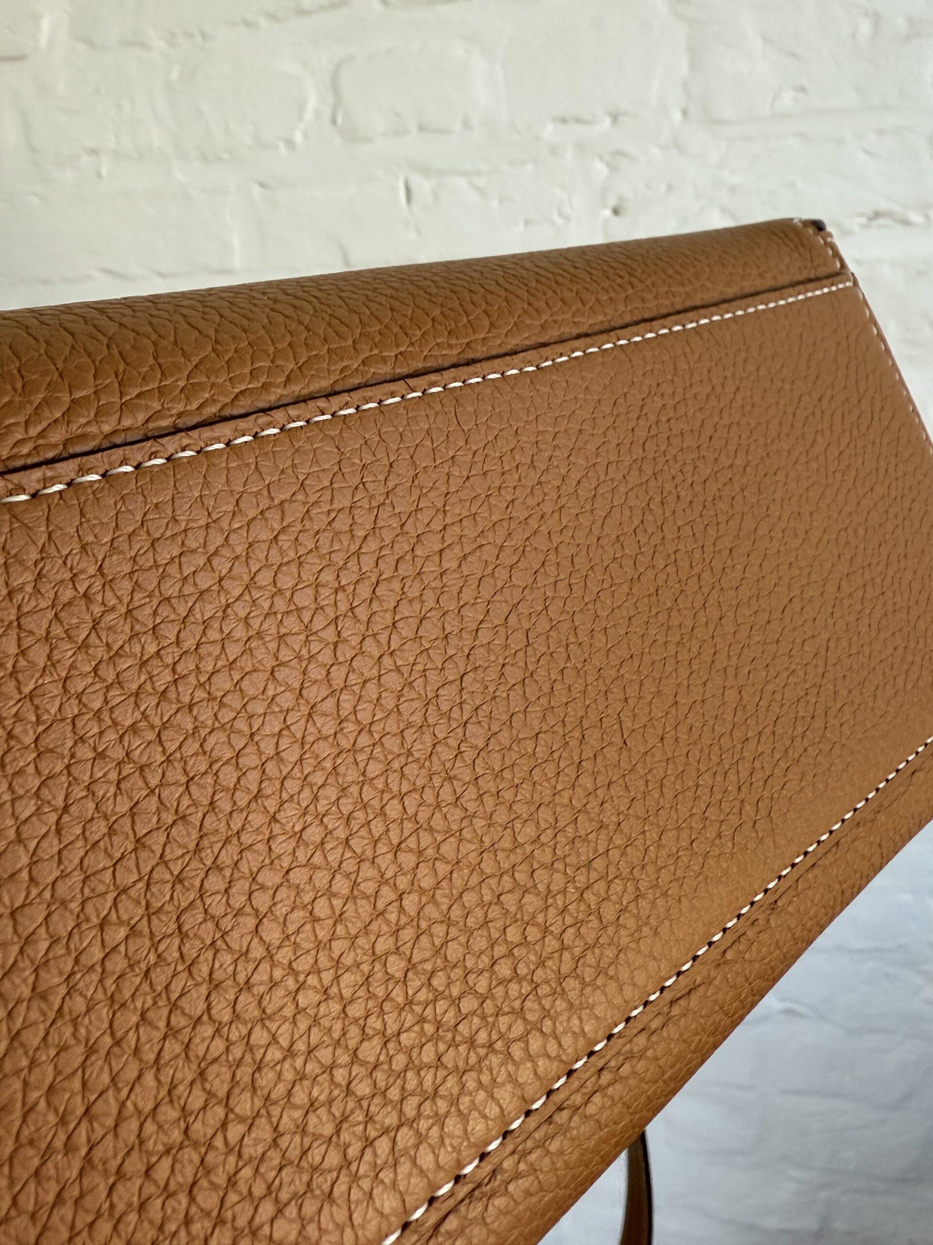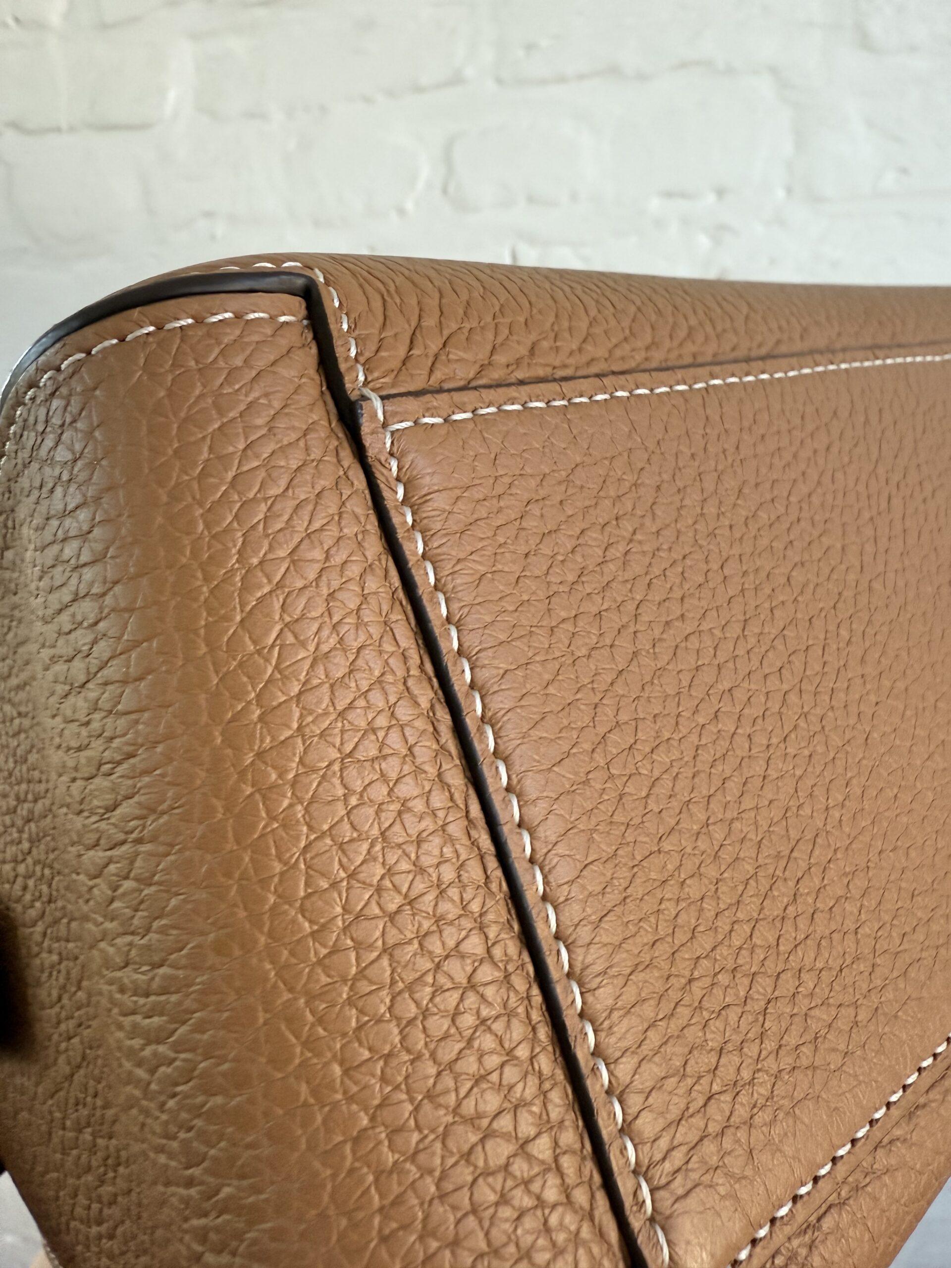 De kantverf werd uitgevoerd in donkerbruin, een mooi detail waar je van zal zwijmelen, zo in combinatie met het Végétal – kleurige leder met ivoire stiksel.