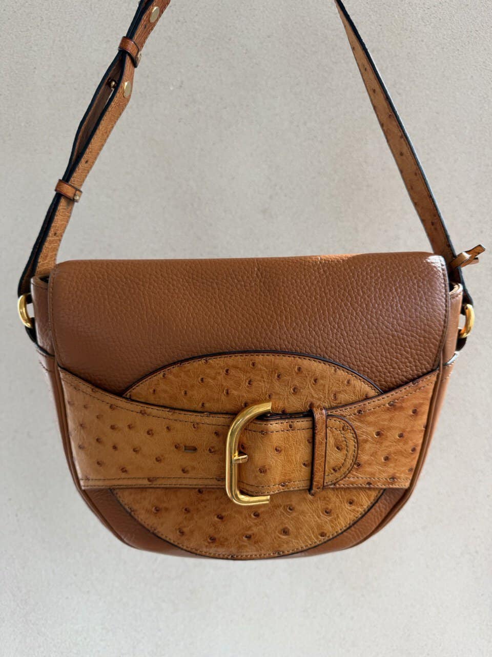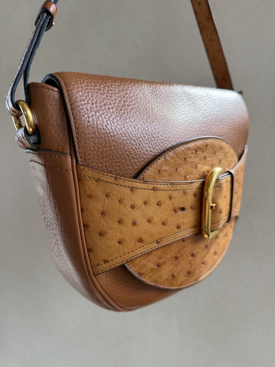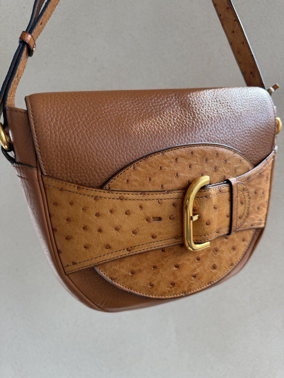 Een crossbody met gesp in autruche.