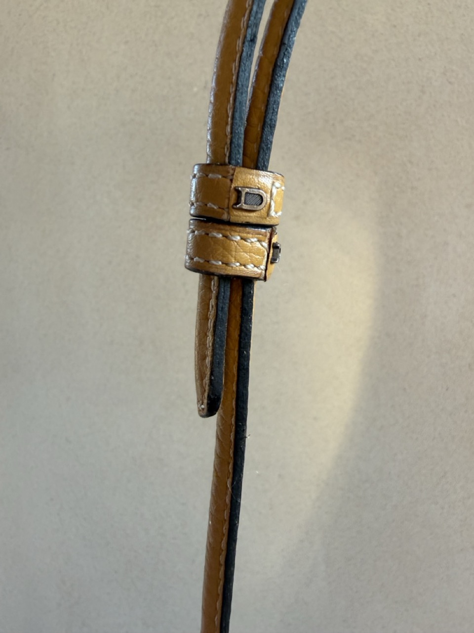 De riem is te verstellen naar eender welke lengte met een gesp. De hardware komt in palladium.