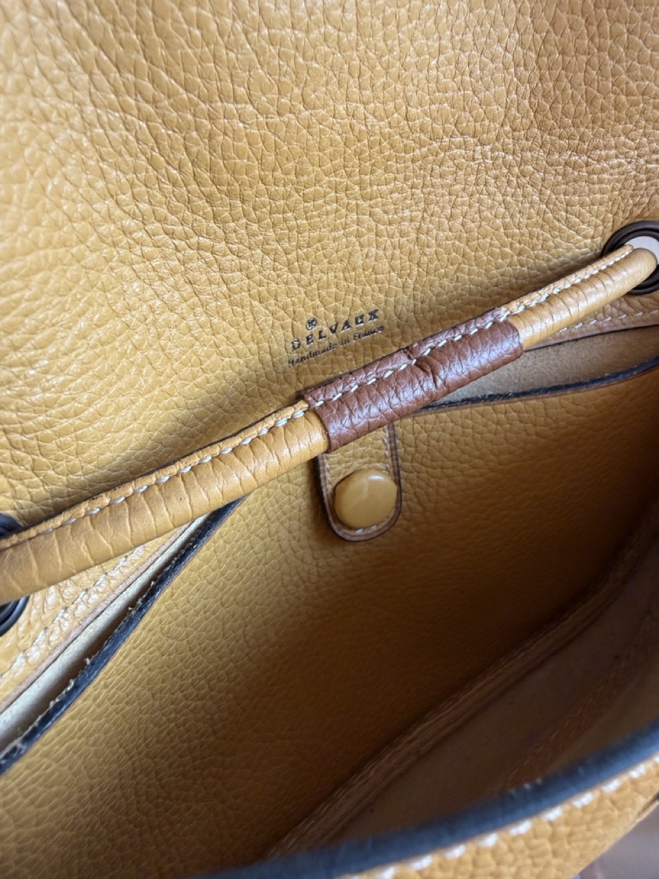 Atelier Mémé besteedt veel tijd en aandacht aan het zorgvuldig selecteren en, indien nodig, retoucheren van originele Delvaux handtassen. De tas is zo correct mogelijk in beeld gebracht met imperfecties die horen bij de vintage staat en manuele ambacht van zowel de Delvauxtas als de ambacht van het restaureren.