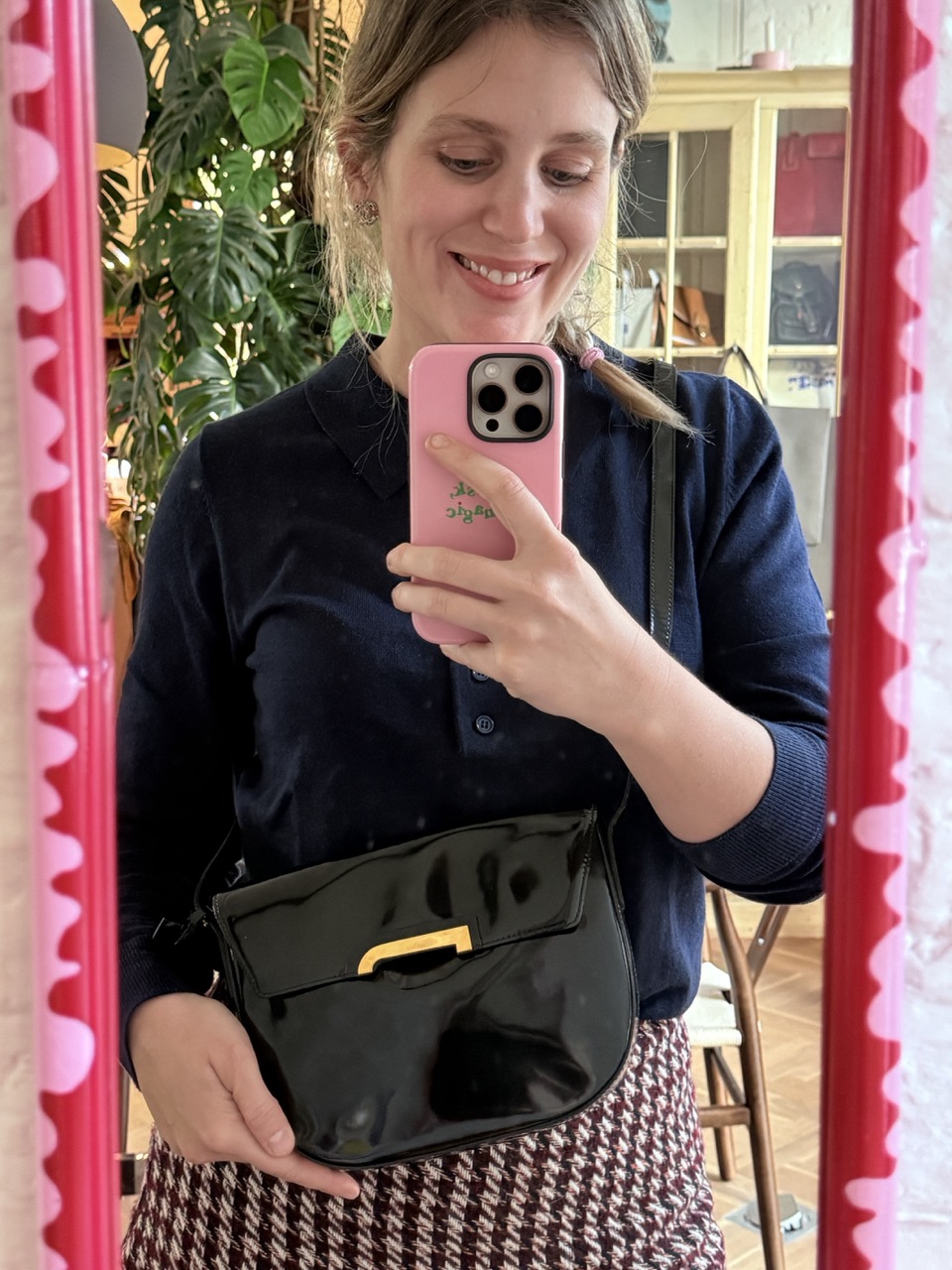 Een Deluré uit 1987 in Laqué kalfsleder in het zwart.
