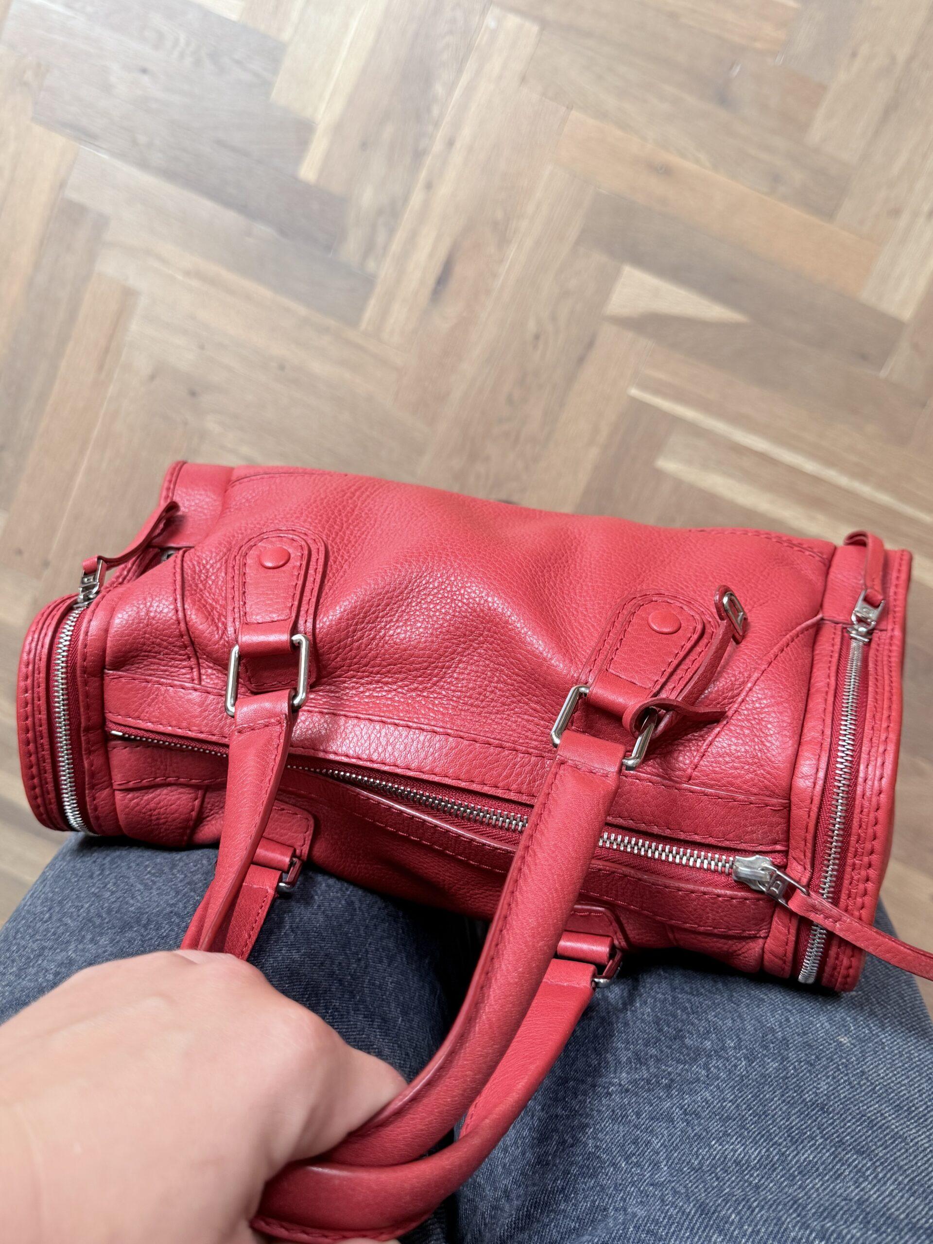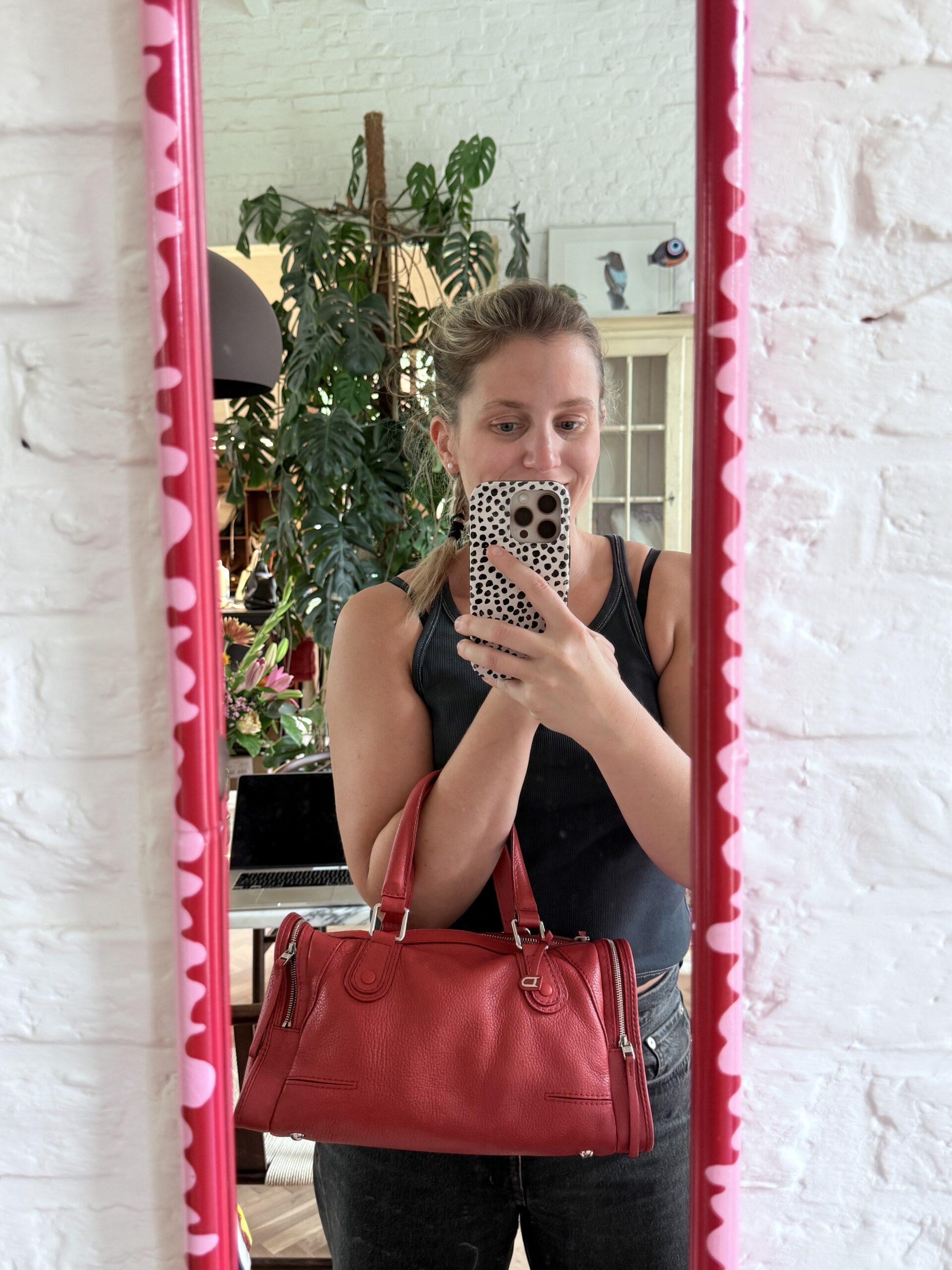 Een magnifieke ruime tophandle in rood kalfsleder: niks minder dan de Vendredi van Delvaux.