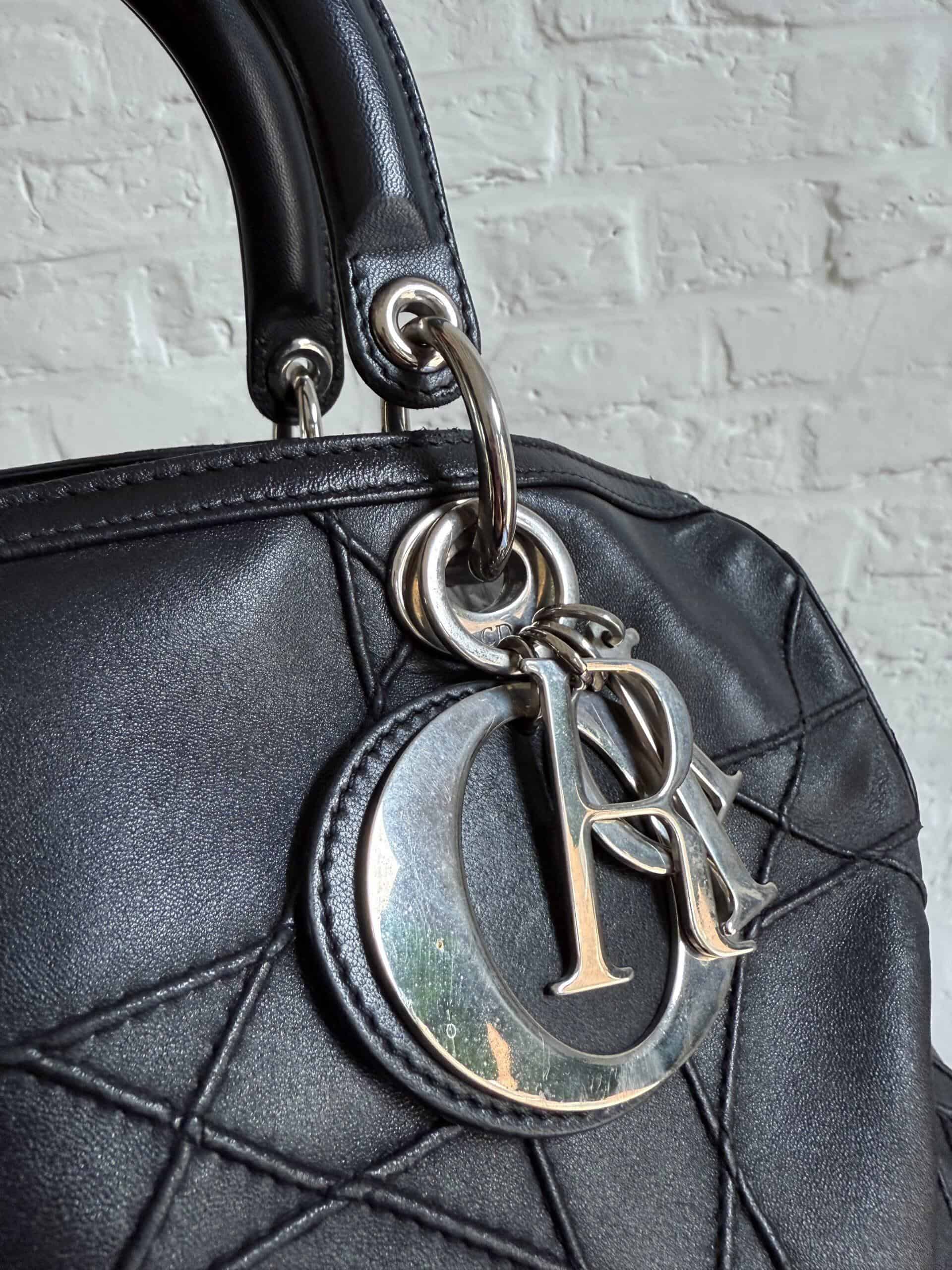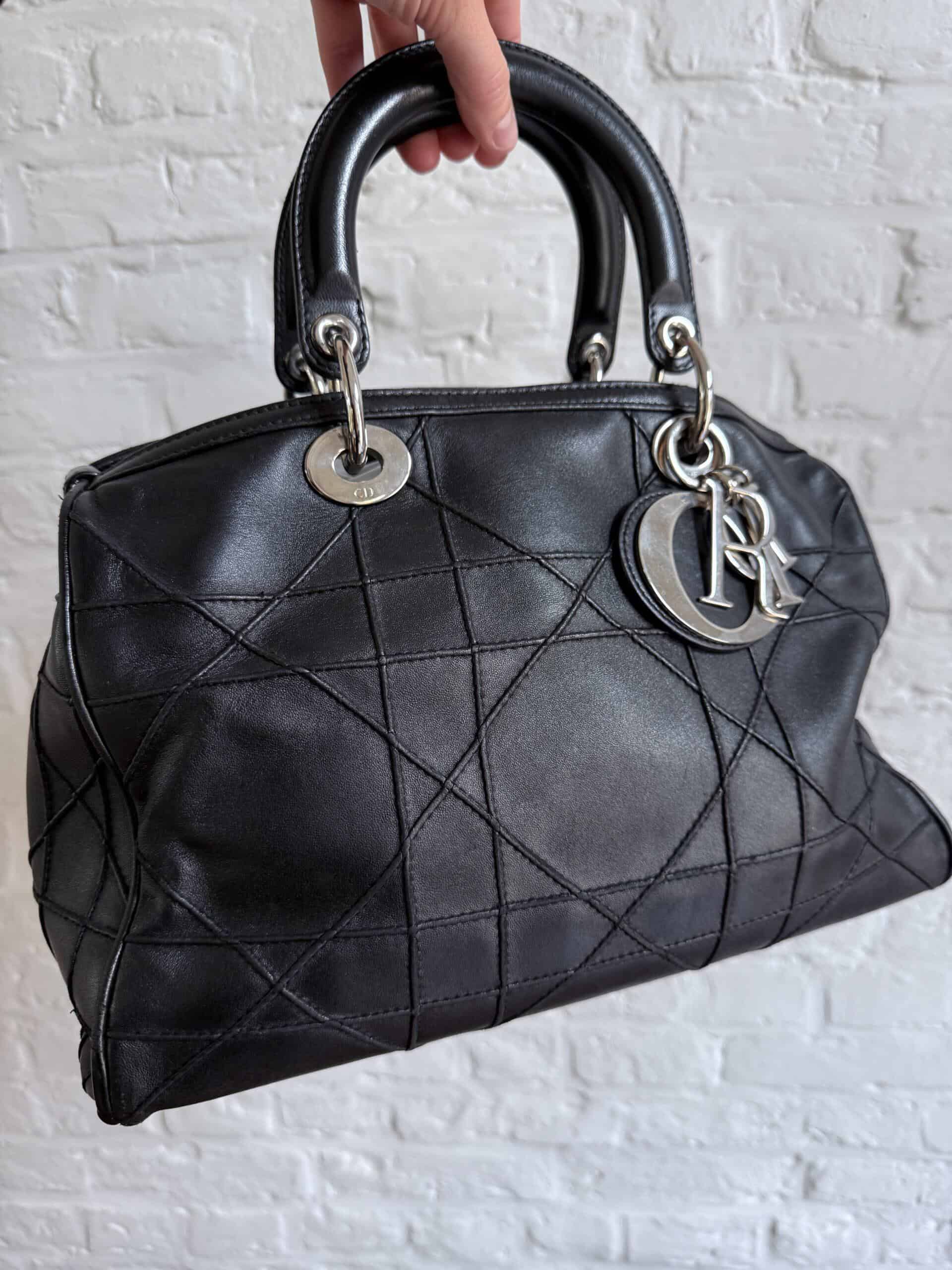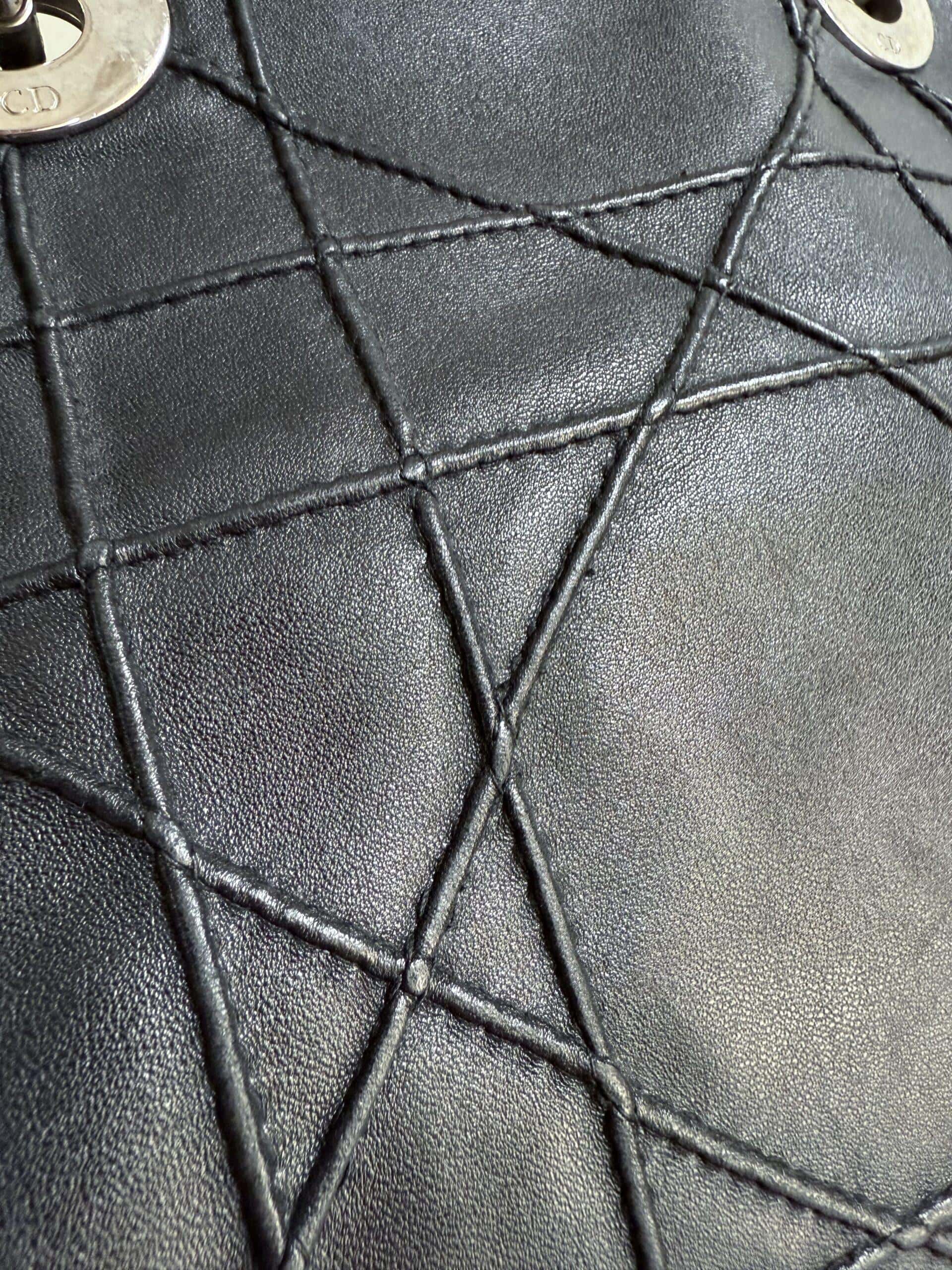 Een Dior Granville in Cannage leder. Je draagt ze aan het dubbele handvat.