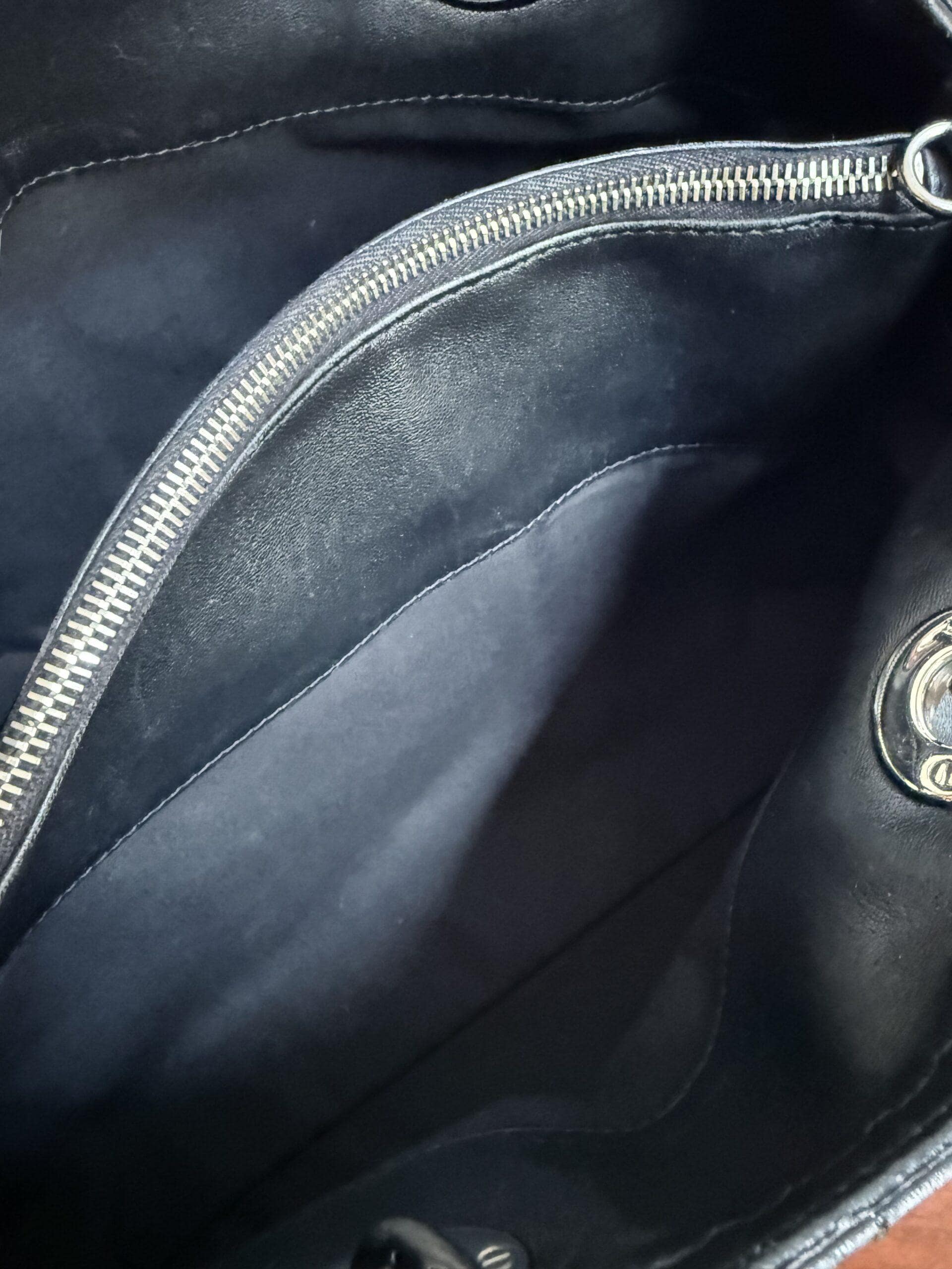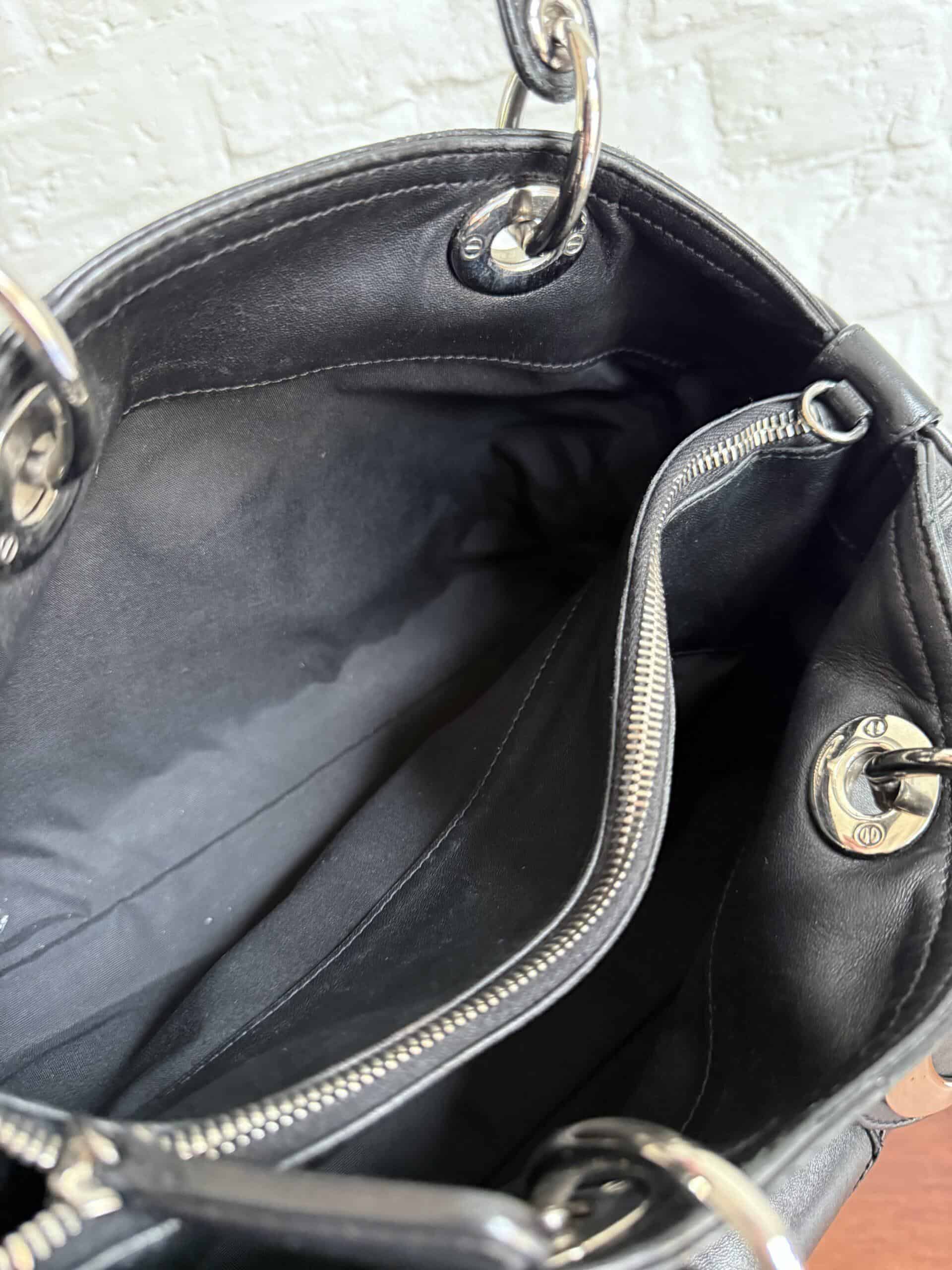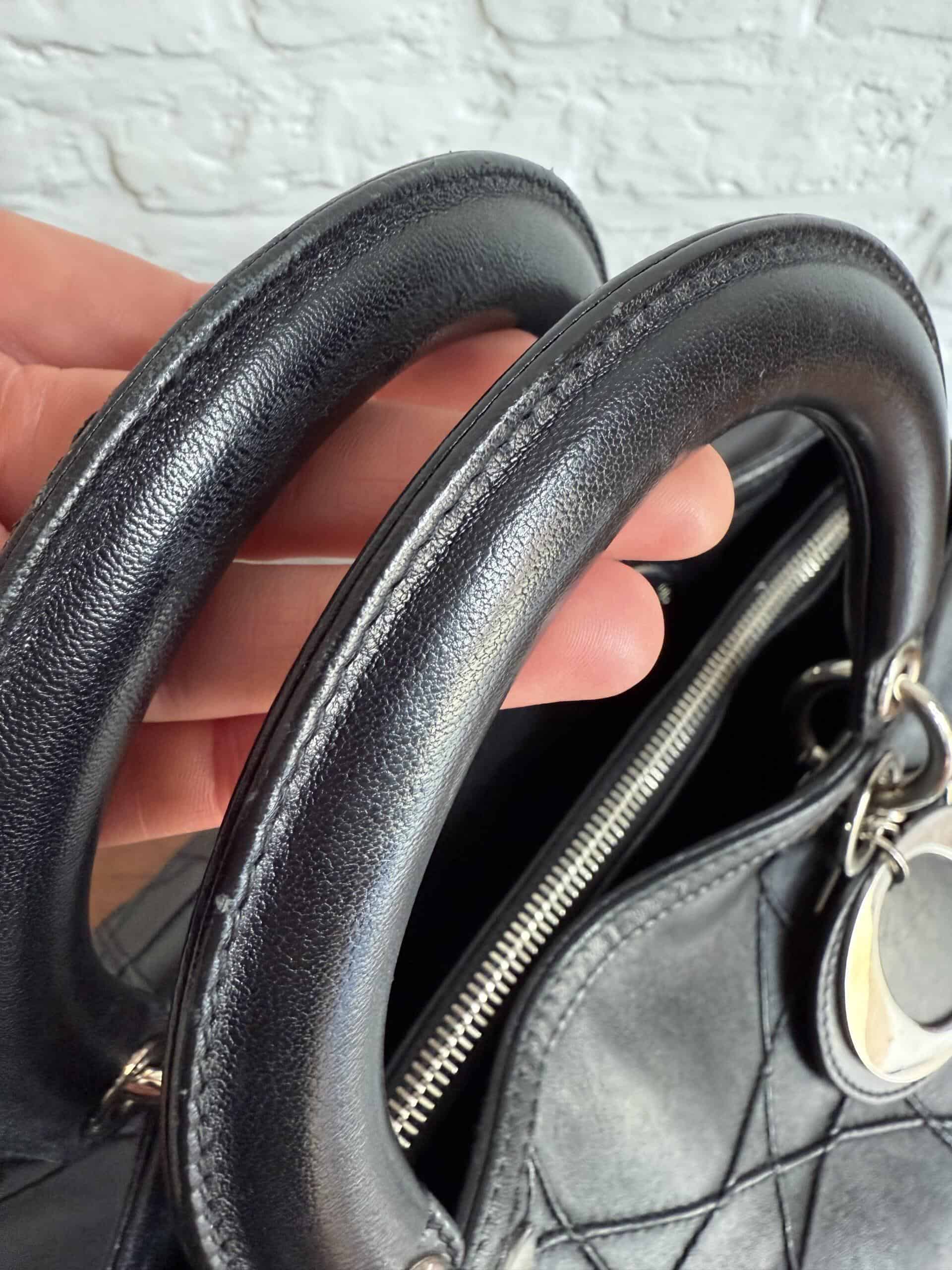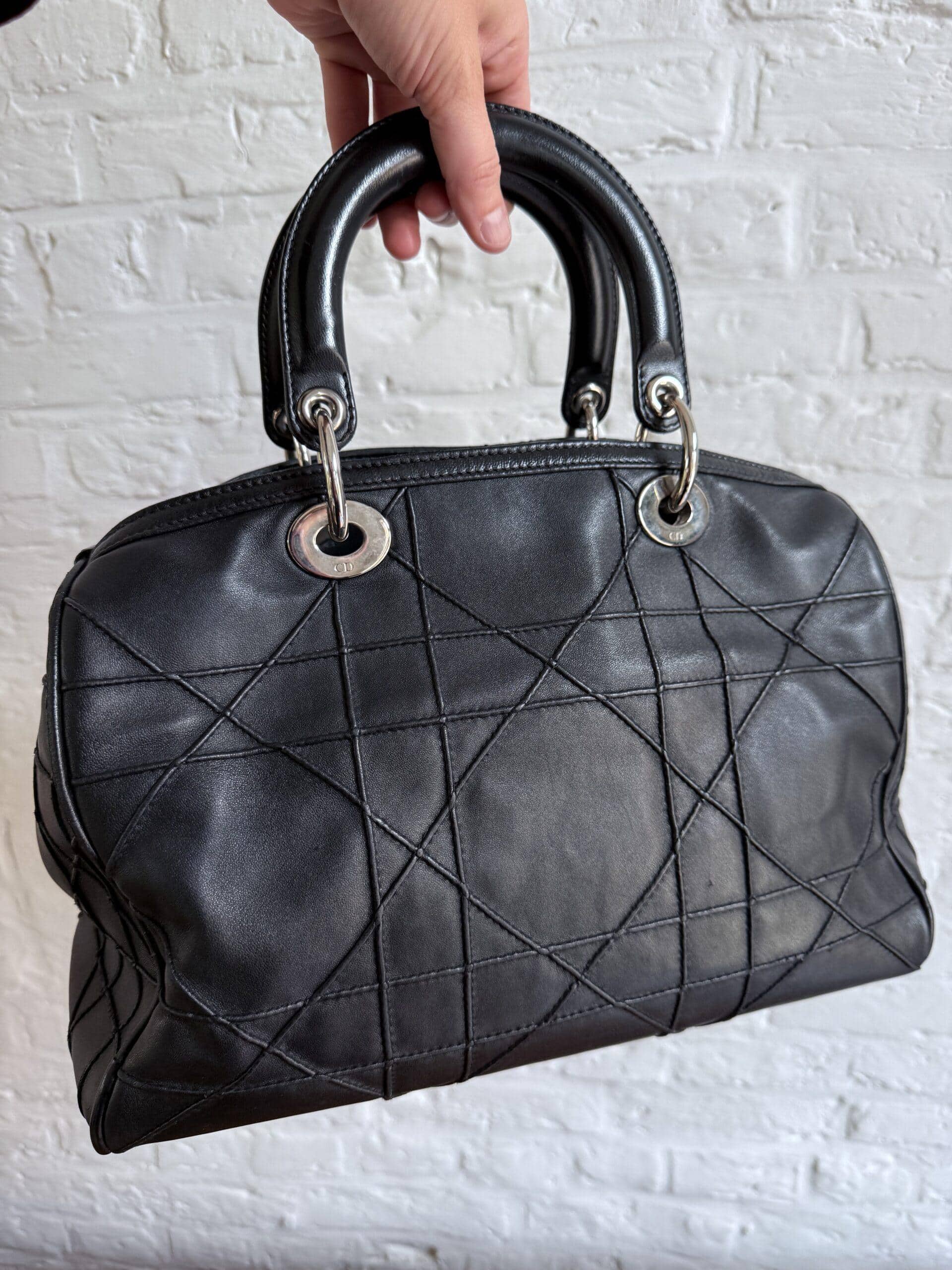Een Dior Granville in Cannage leder. Je draagt ze aan het dubbele handvat.