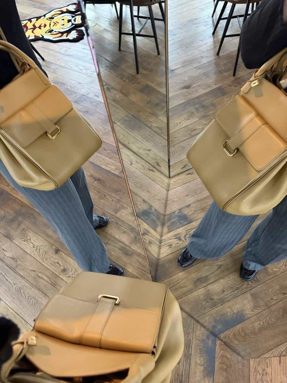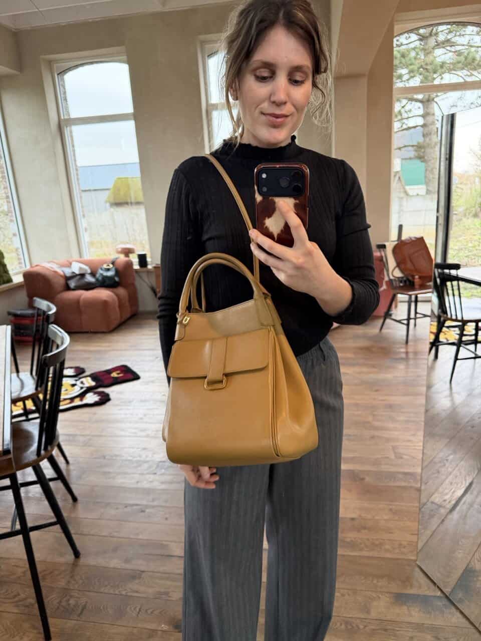 Atelier Mémé besteedt veel tijd en aandacht aan het zorgvuldig selecteren en, indien nodig, retoucheren van originele Delvaux handtassen. De tas is zo correct mogelijk in beeld gebracht met imperfecties die horen bij de vintage staat en manuele ambacht van zowel de Delvauxtas als de ambacht van het restaureren.