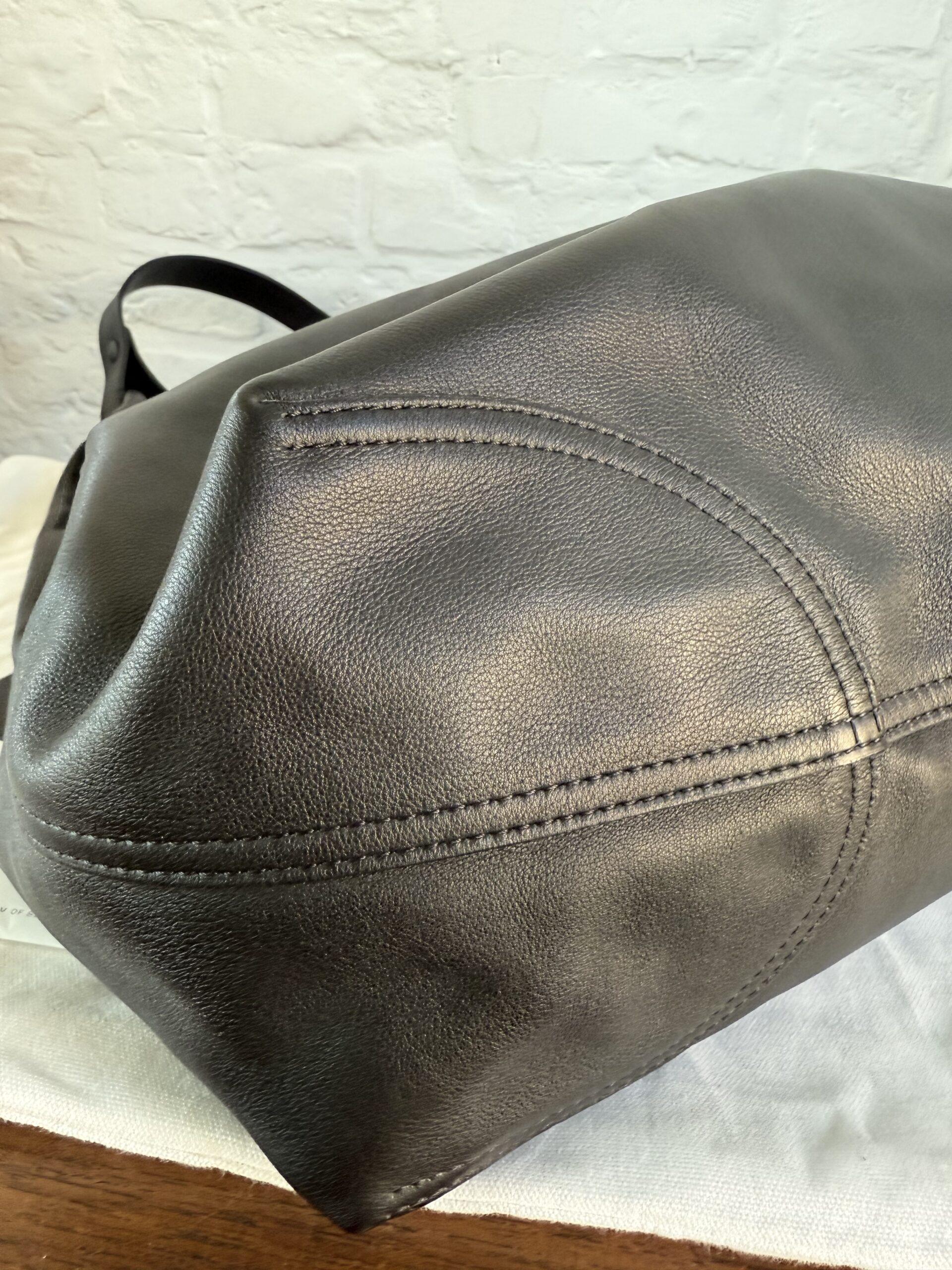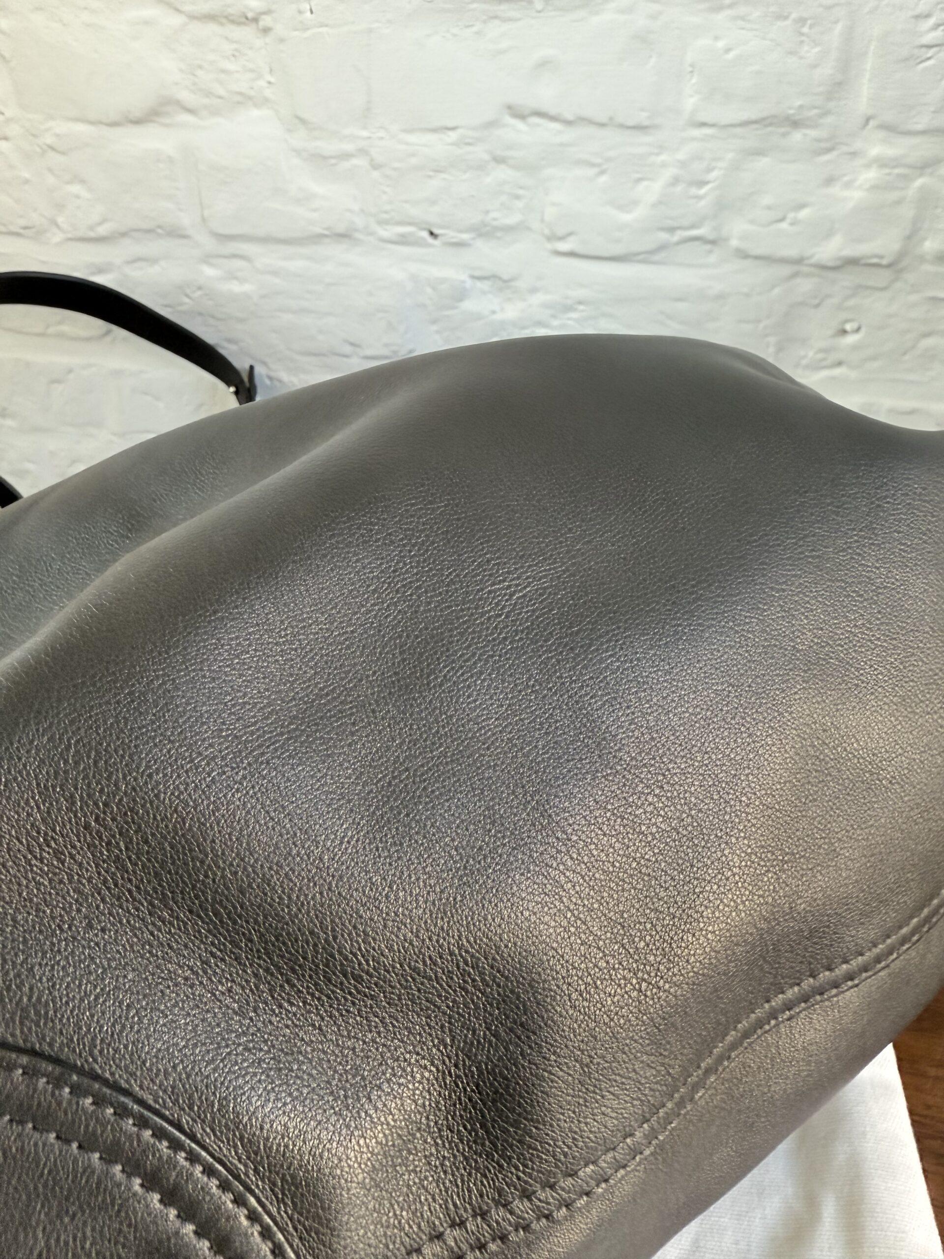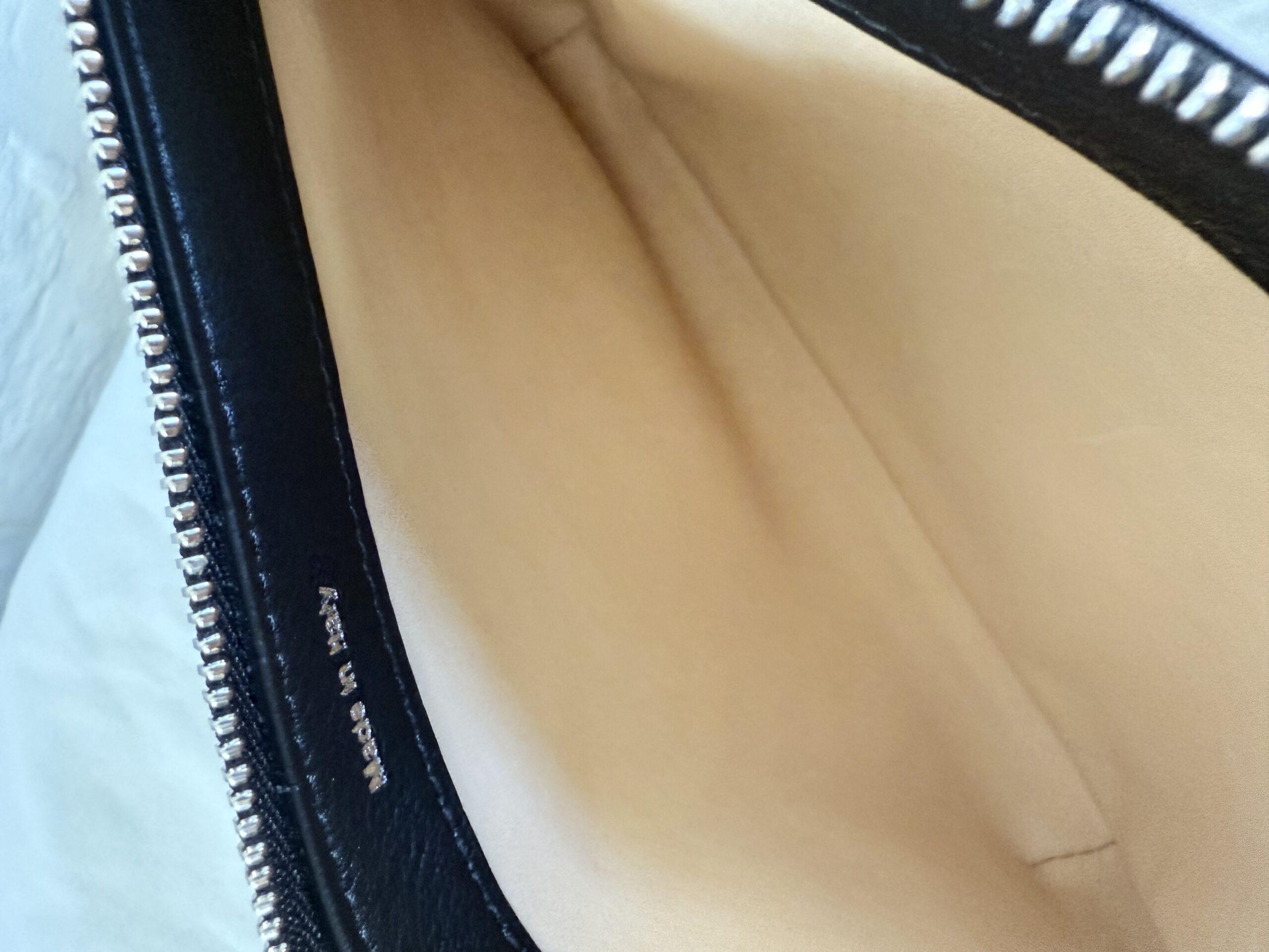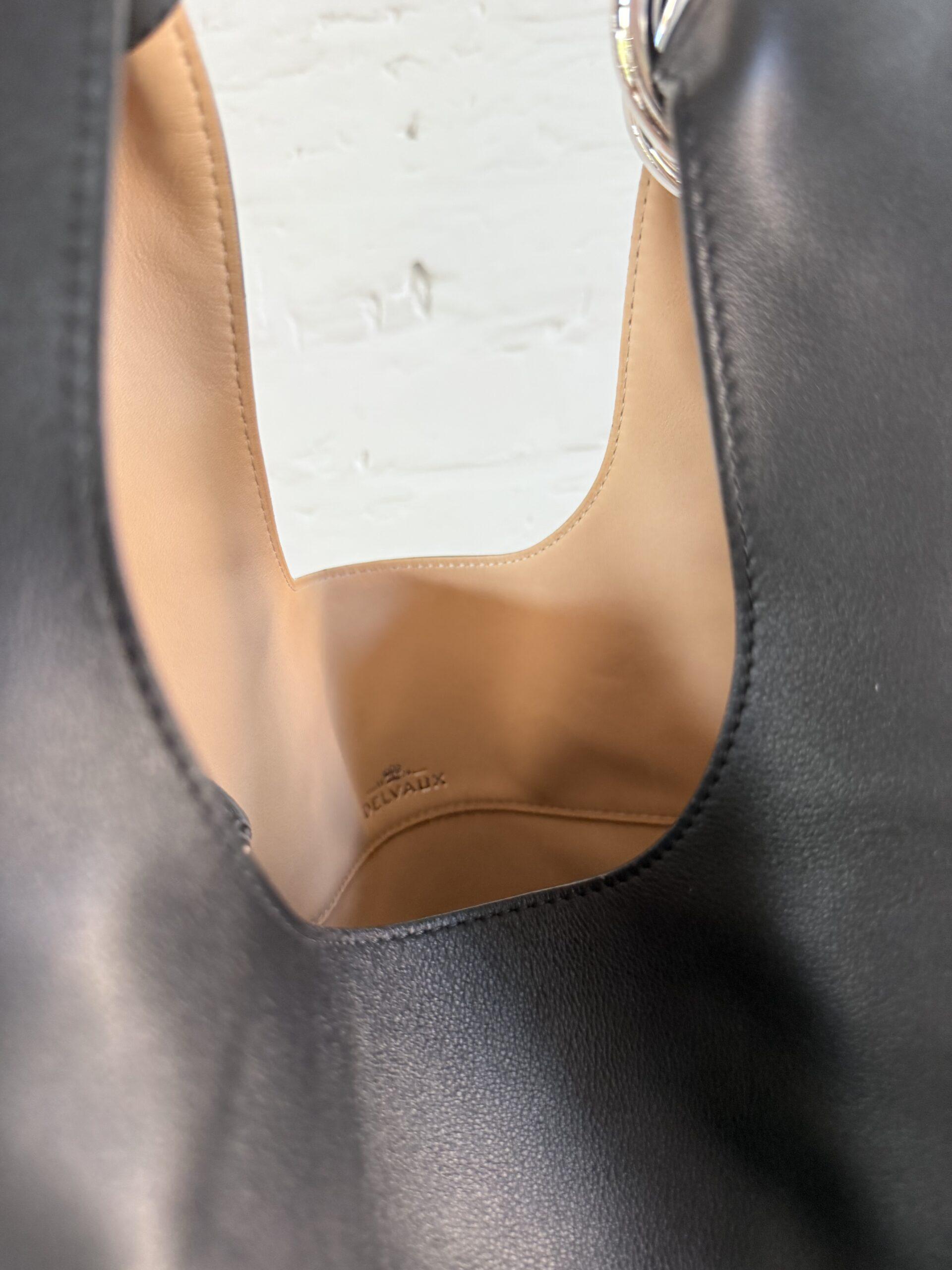 Uitgevoerd in calf souple in zwart met zilveren hardware.