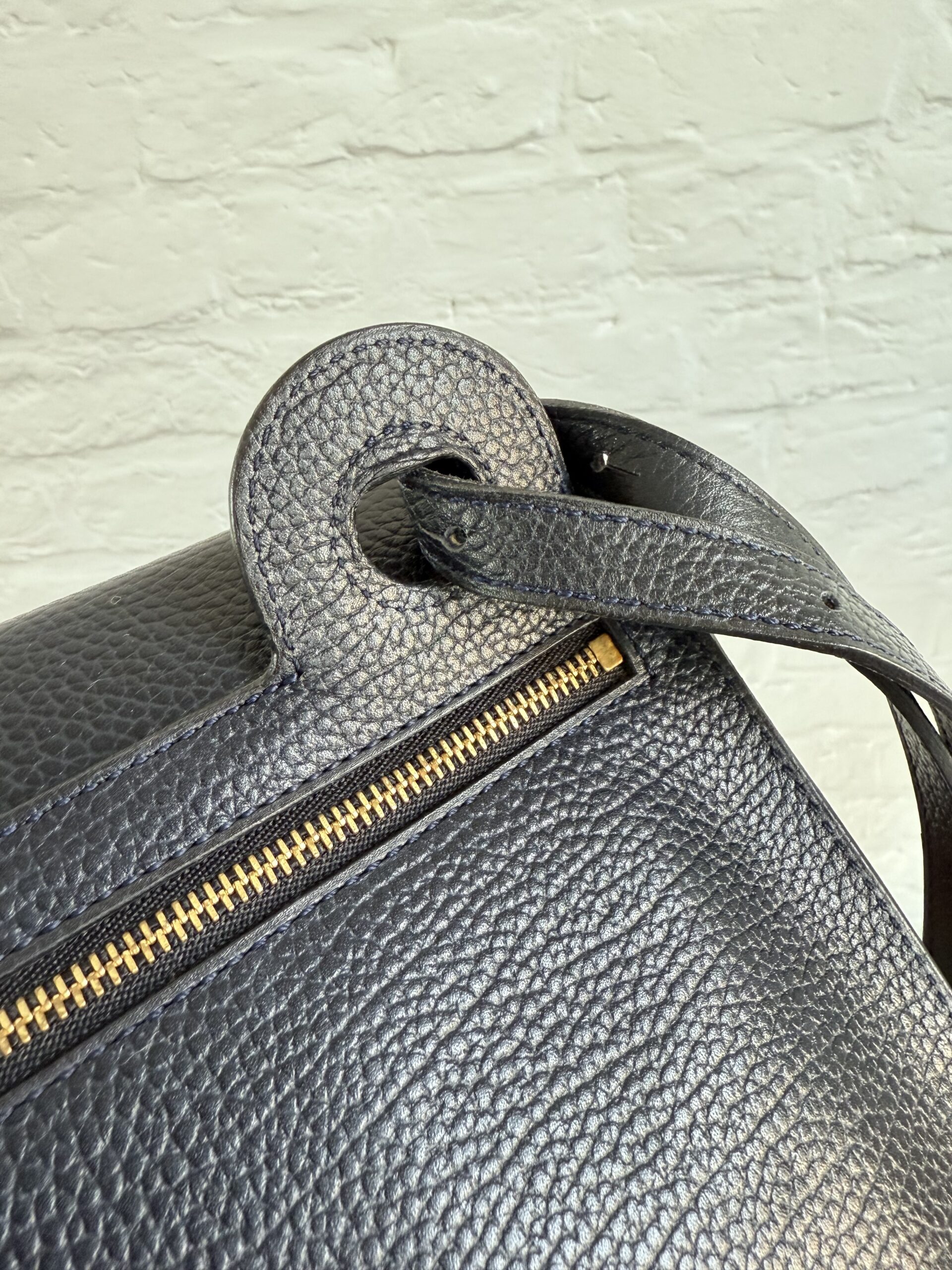 – een prachtige uitvoering in marinekleurige jumping calf.