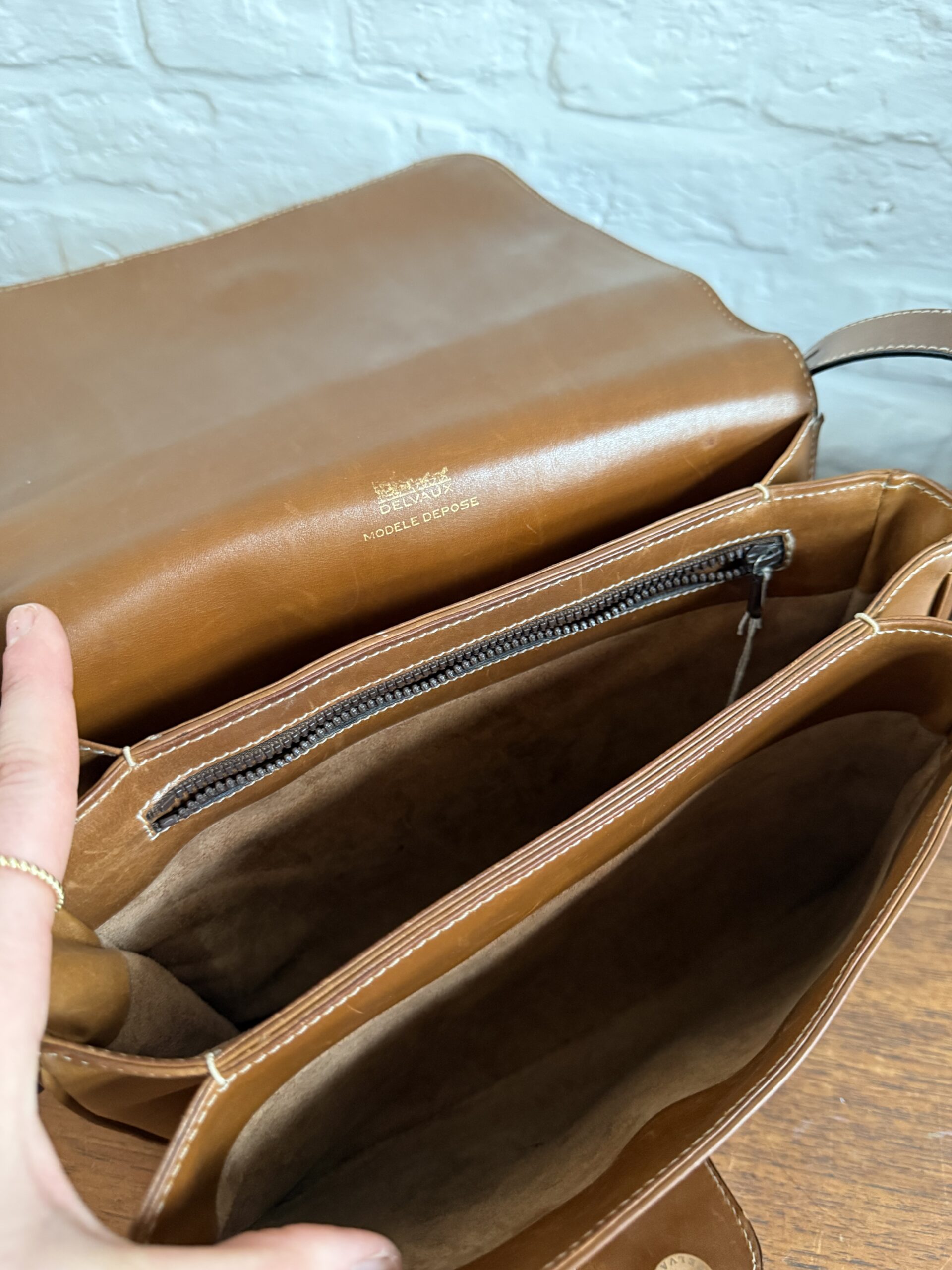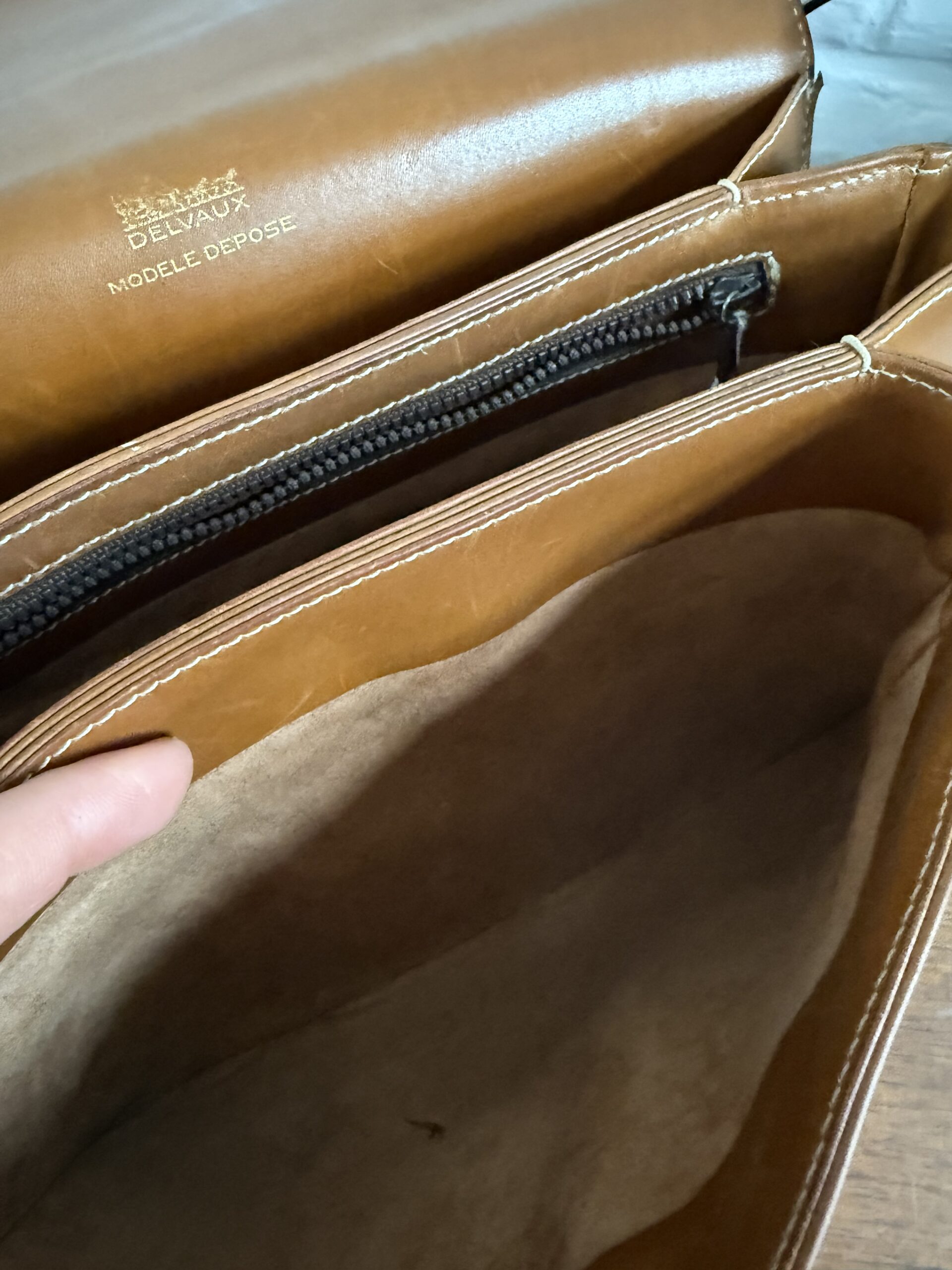 Atelier Mémé besteedt veel tijd en aandacht aan het zorgvuldig selecteren en, indien nodig, retoucheren van originele Delvaux handtassen. De tas is zo correct mogelijk in beeld gebracht met imperfecties die horen bij de vintage staat en manuele ambacht van zowel de Delvauxtas als de ambacht van het restaureren.
