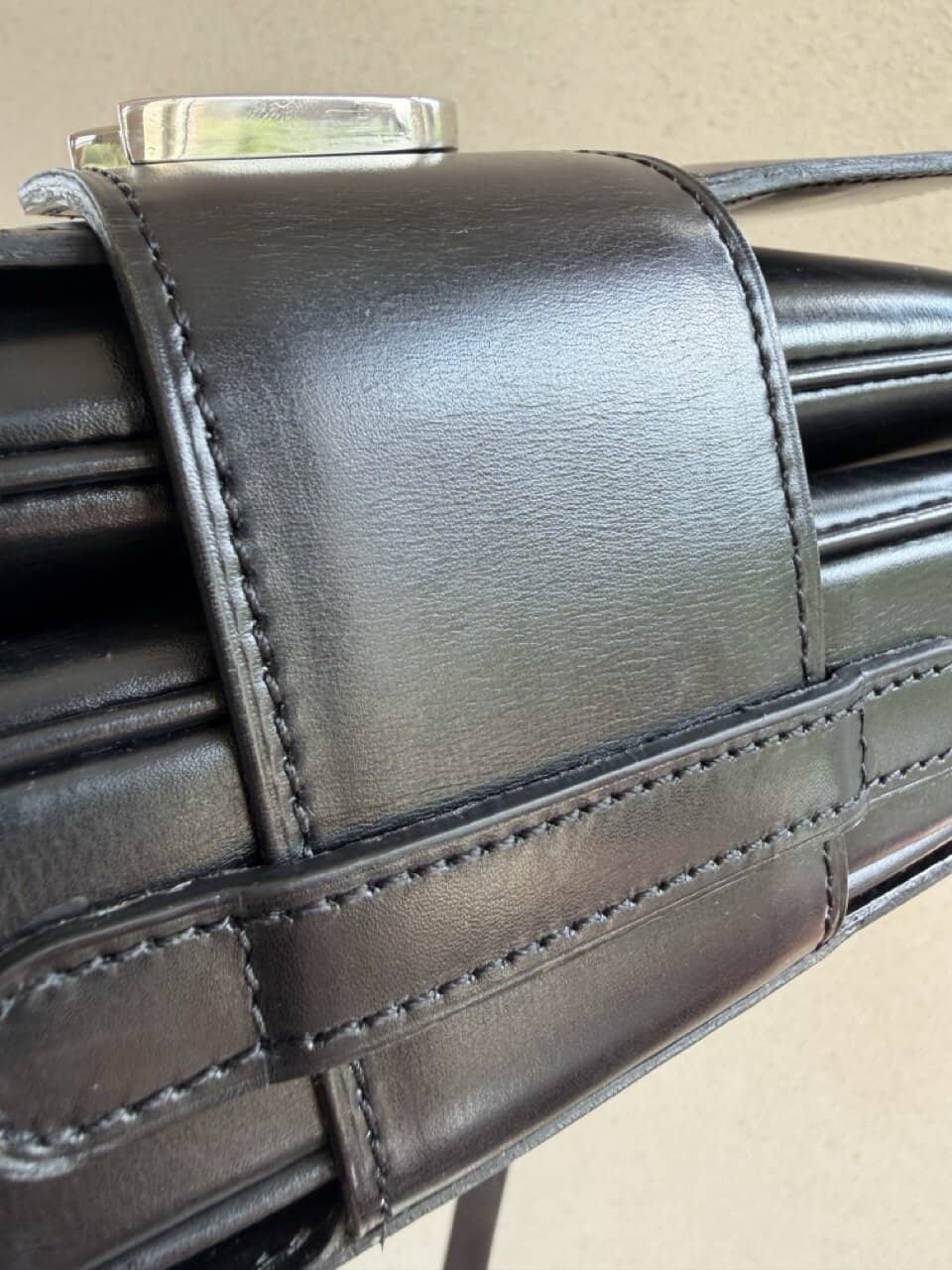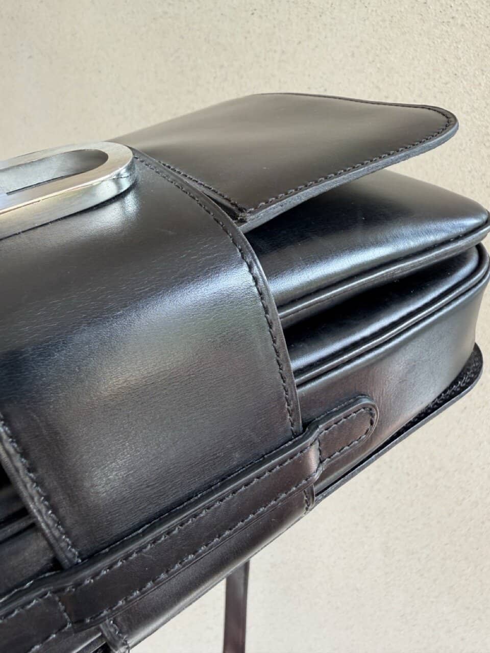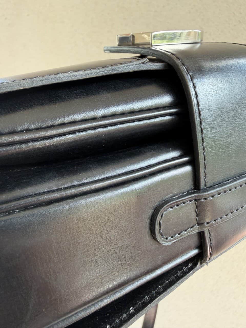 Deze Heureux is uitgevoerd in zwarte box calf en verkeert in ‘vintage nieuwstaat’ ofwel ‘eentje die nooit uit de kast is geweest’.