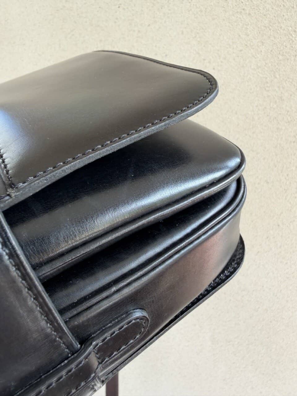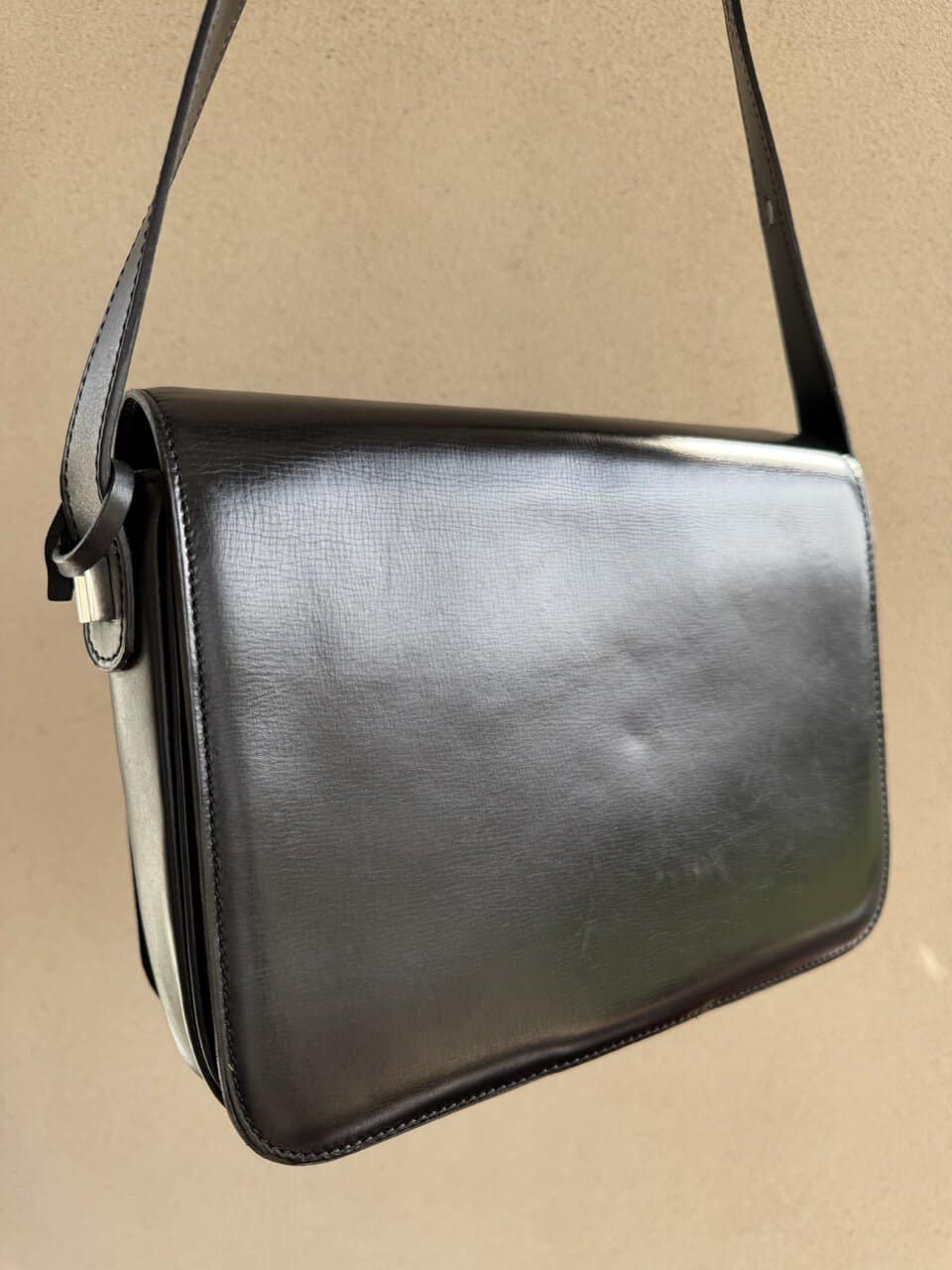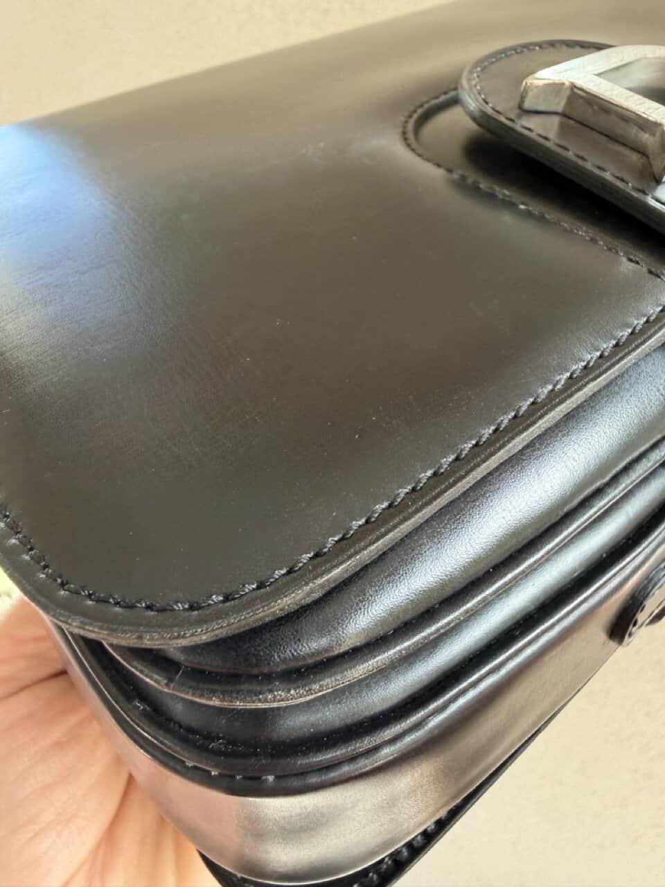 Deze Heureux is uitgevoerd in zwarte box calf en verkeert in ‘vintage nieuwstaat’ ofwel ‘eentje die nooit uit de kast is geweest’.
