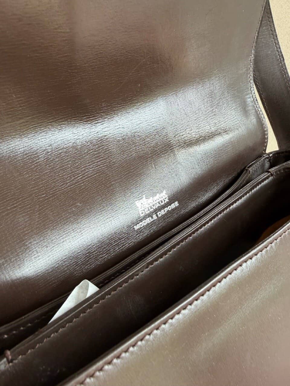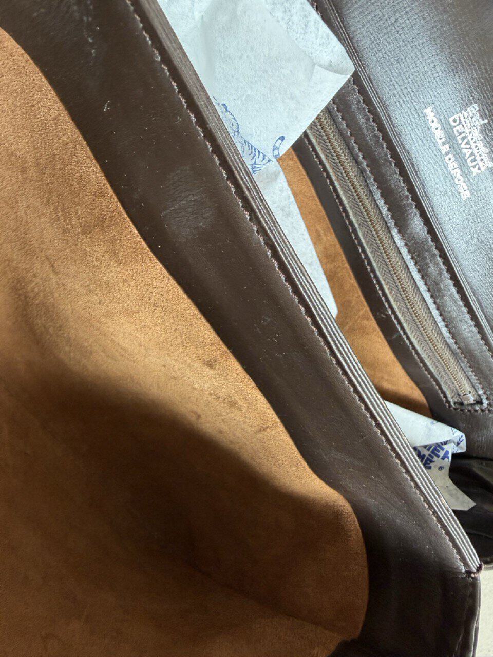 Atelier Mémé besteedt veel tijd en aandacht aan het zorgvuldig selecteren en, indien nodig, retoucheren van originele Delvaux handtassen. De tas is zo correct mogelijk in beeld gebracht met imperfecties die horen bij de vintage staat en manuele ambacht van zowel de Delvauxtas als de ambacht van het restaureren.