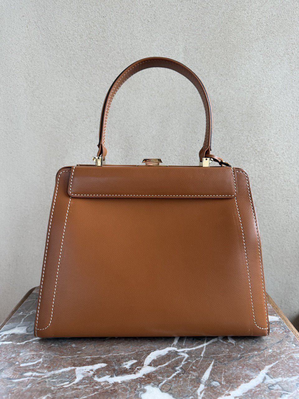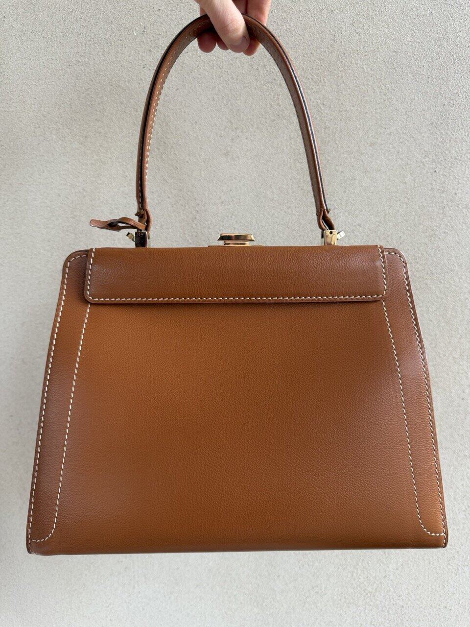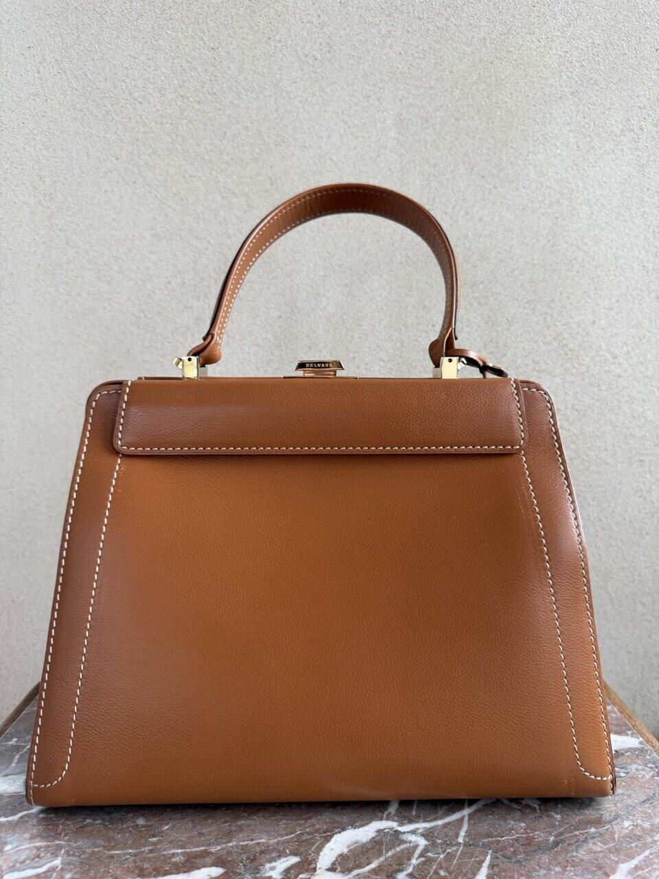 Een prachtige, chique en super elegante top handle tas van Delvaux. Vervaardigd in cognackleurig leer.