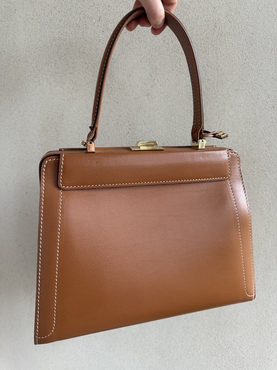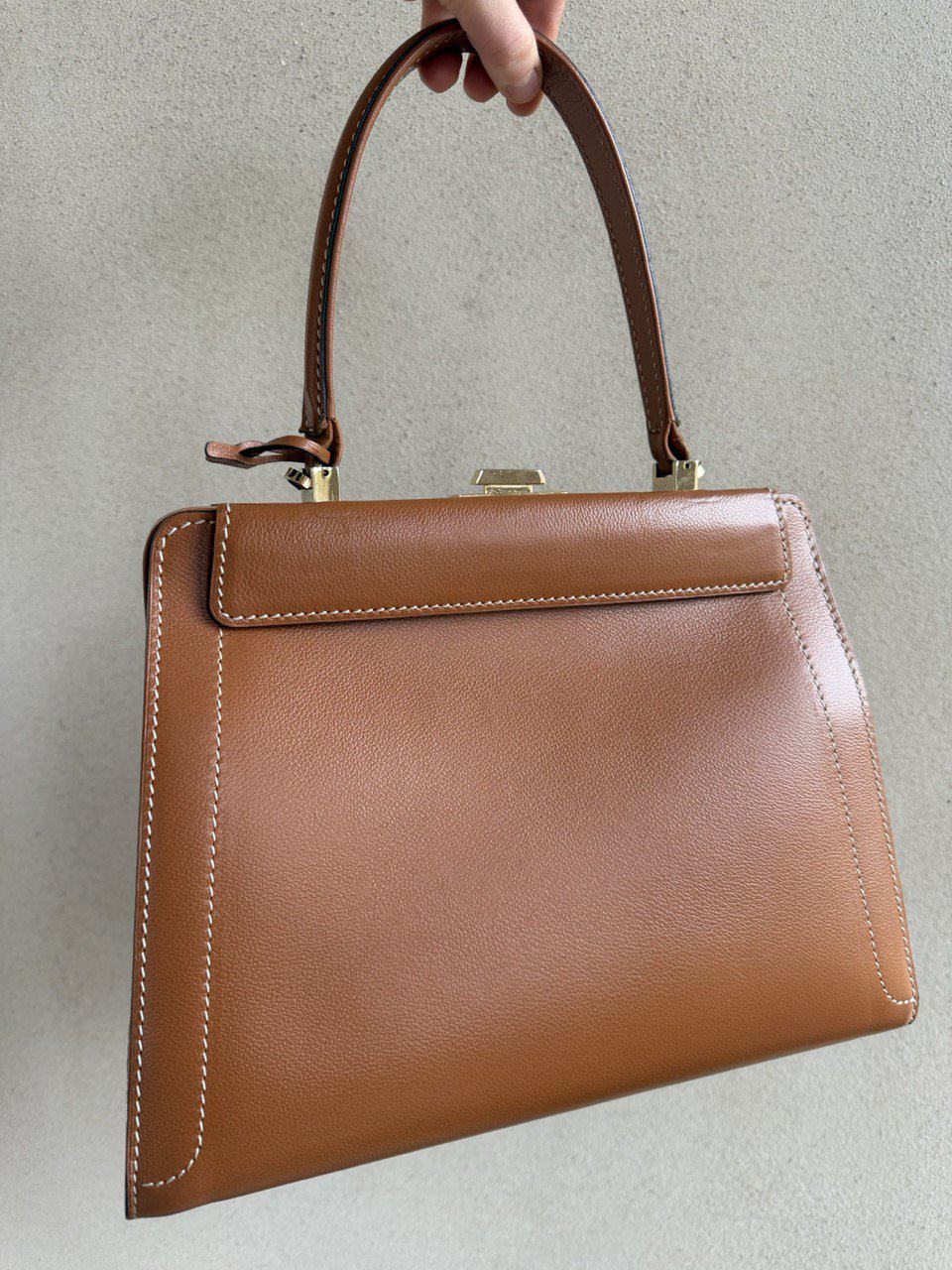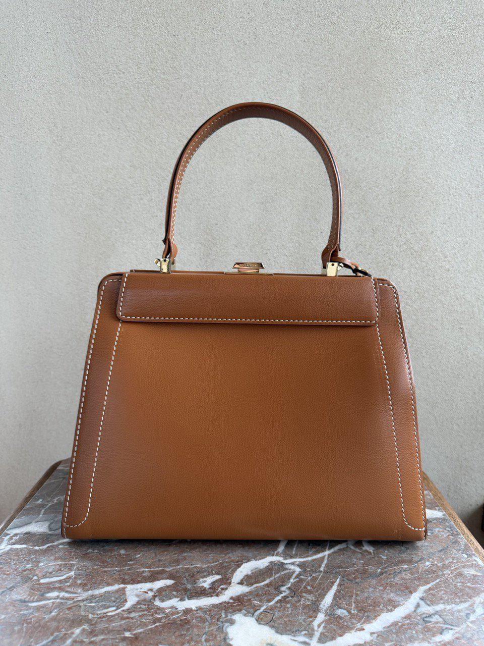 Een prachtige, chique en super elegante top handle tas van Delvaux. Vervaardigd in cognackleurig leer.