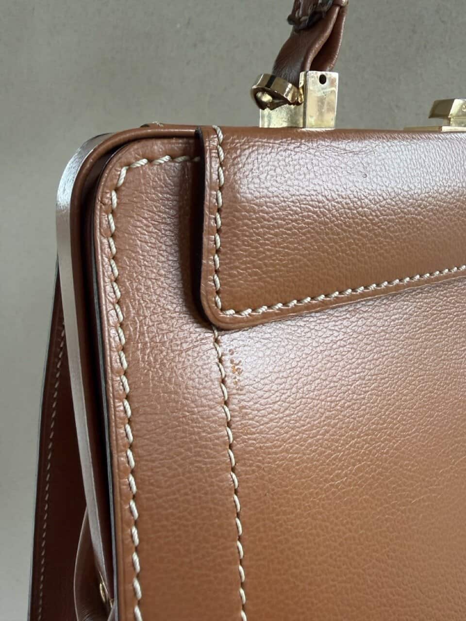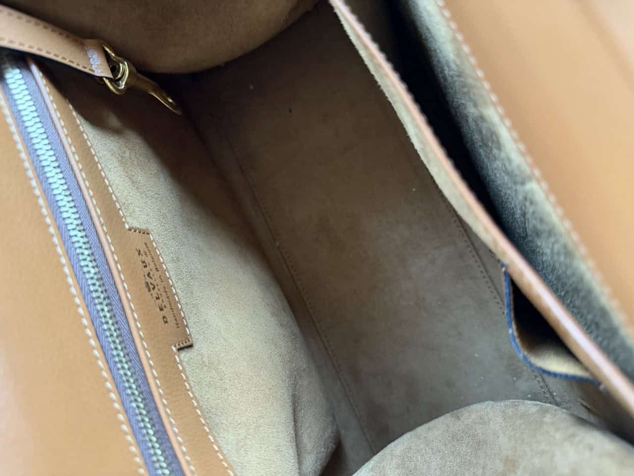 Atelier Mémé besteedt veel tijd en aandacht aan het zorgvuldig selecteren en, indien nodig, retoucheren van originele Delvaux handtassen. De tas is zo correct mogelijk in beeld gebracht met imperfecties die horen bij de vintage staat en manuele ambacht van zowel de Delvauxtas als de ambacht van het restaureren.