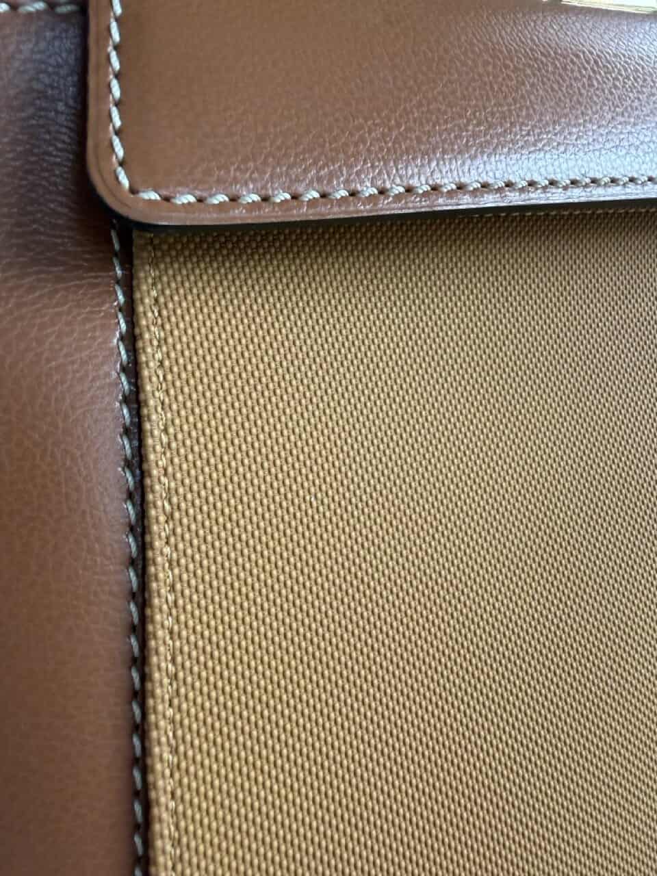 Er is een mogelijkheid om de buitenste laag van de tas te verwijderen en de tas te restylen zoals je wenst, met ecru, bordeaux of oker waterbestendig front.