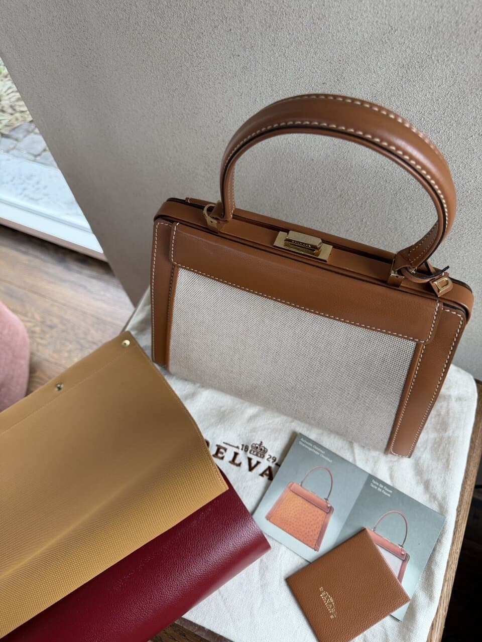 | Accessories | Authentieke Delvaux stofzak, Booklet, Spiegel |