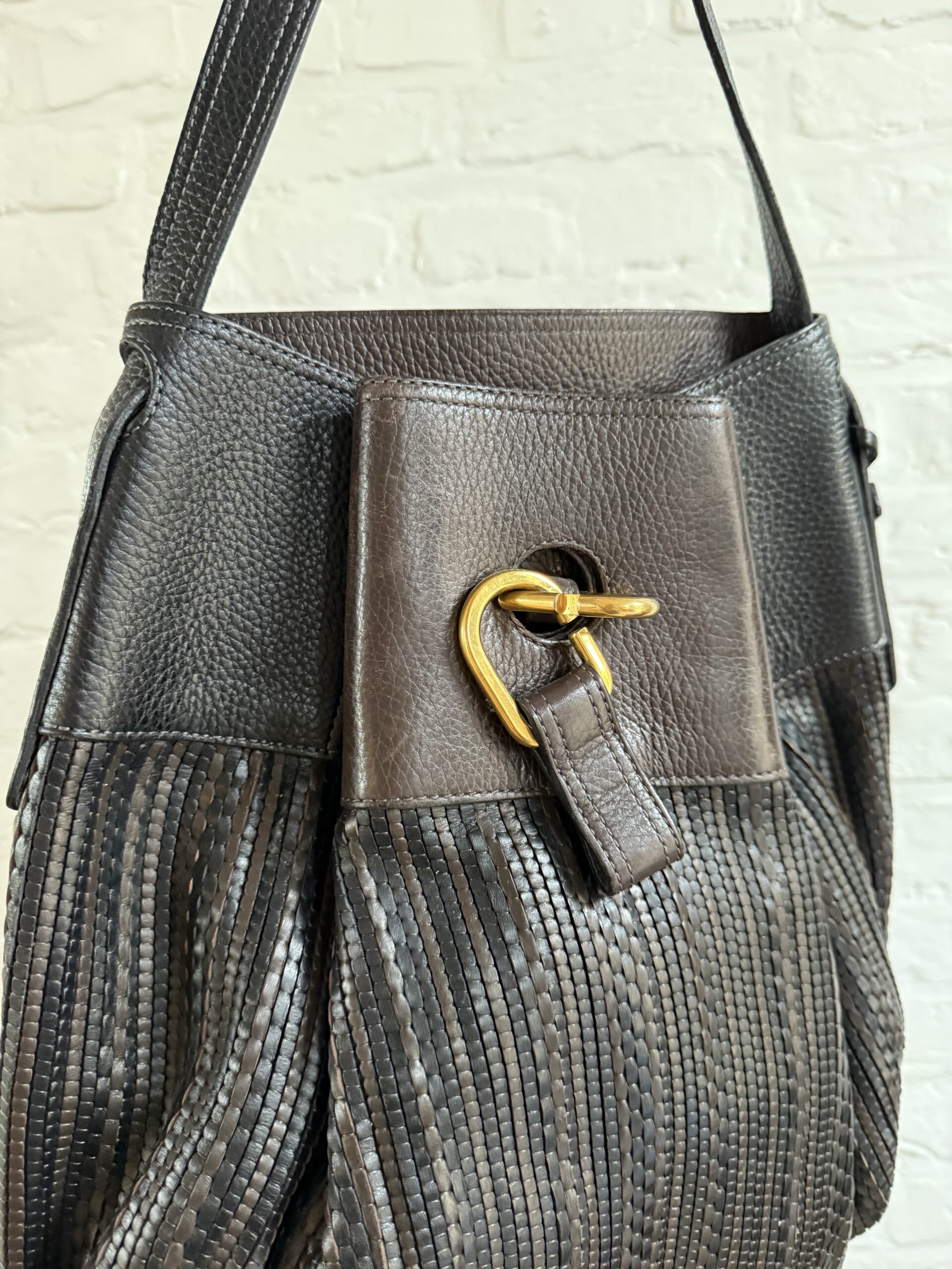 De Faust heeft de ambities van een heuse bucketbag, maar is heel erg draagbaar omdat hij eigenlijk maar zo groot is als een ruime handtas. Ideaal, want je draagt hem daardoor ook als hoge crossbody of over de schouder.