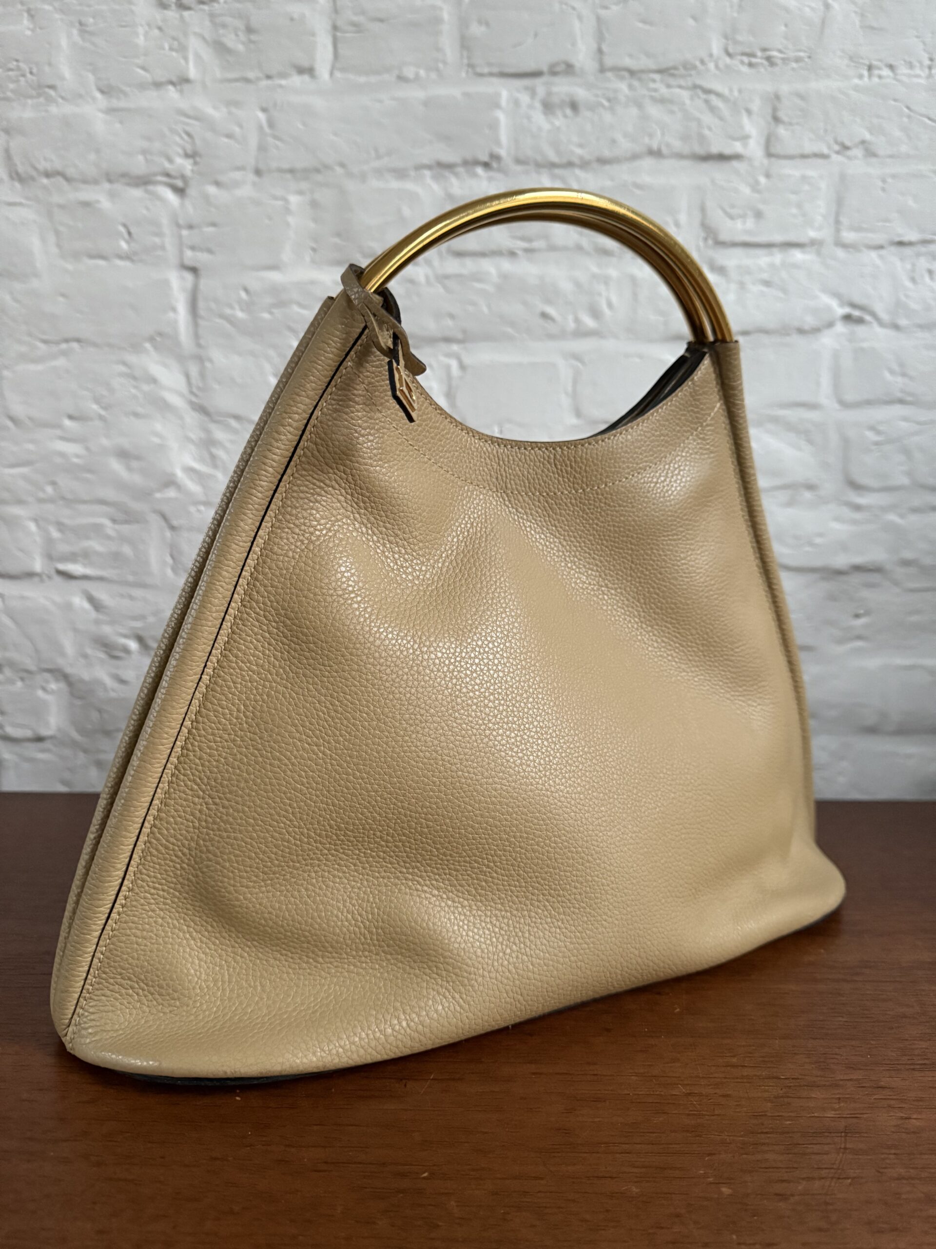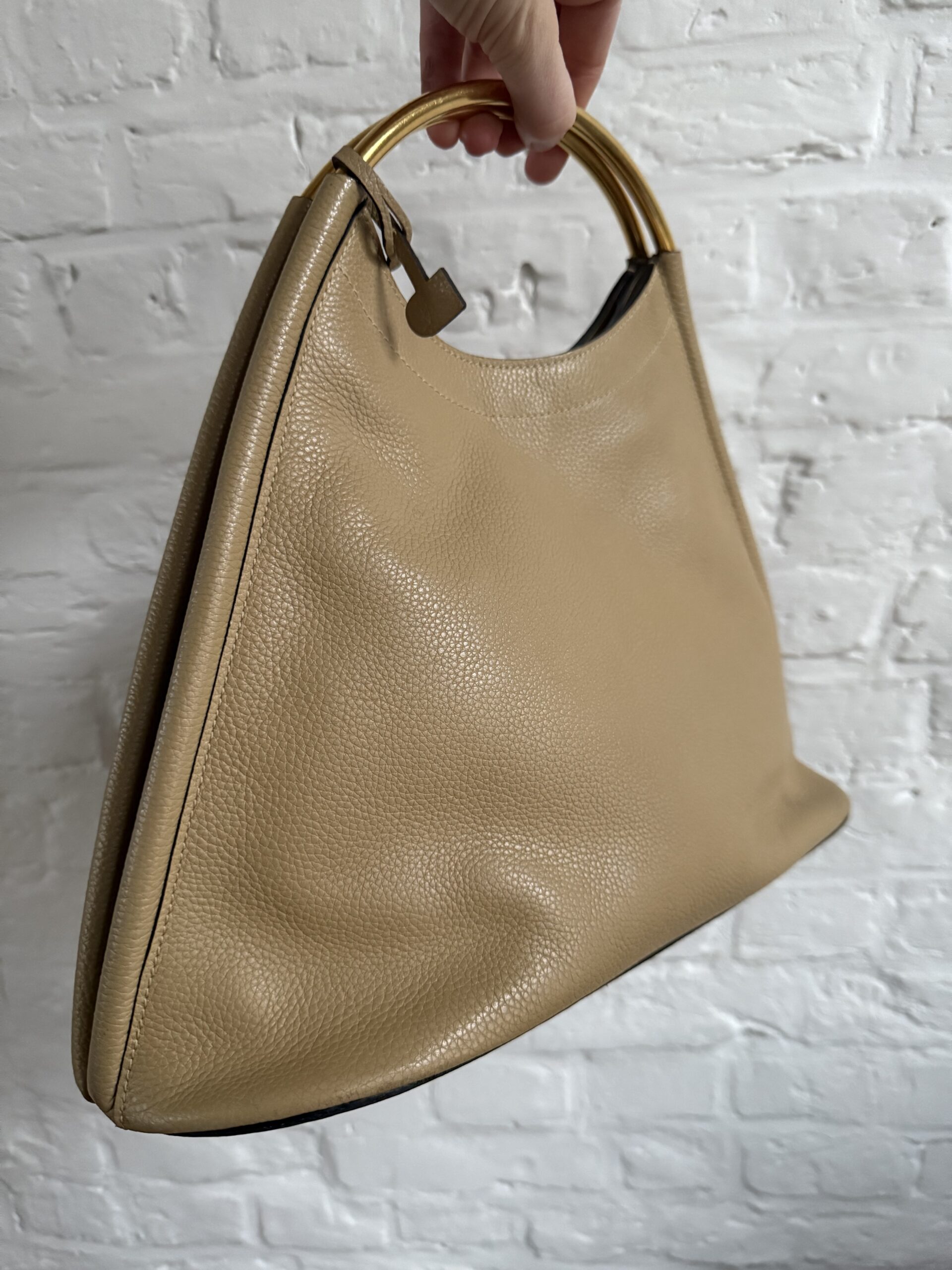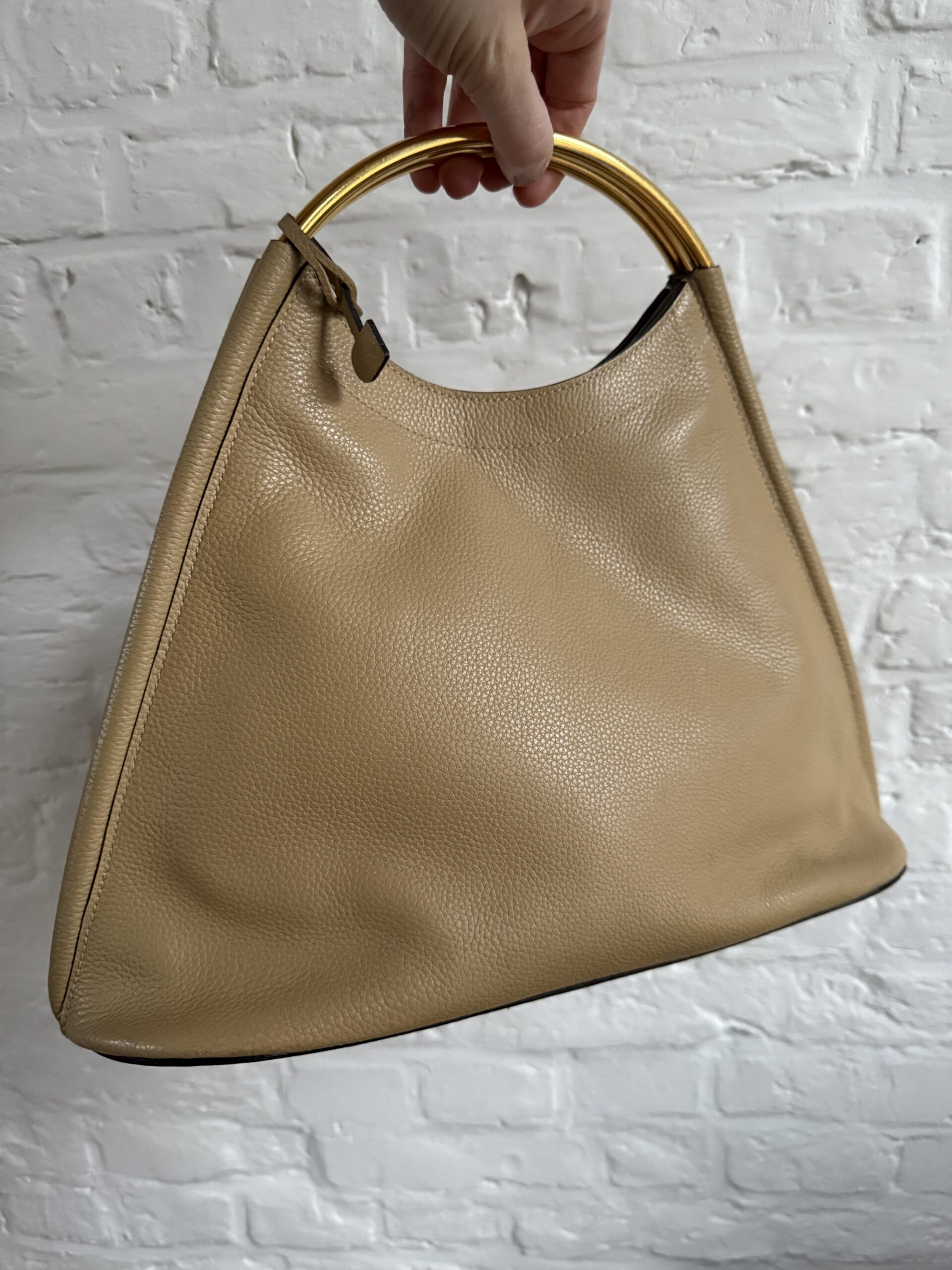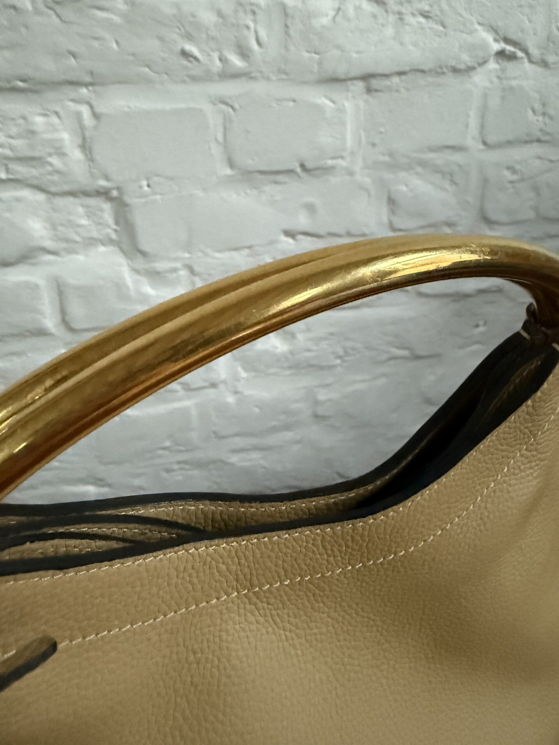 Ze komt in camel met prachtige goudkleurige handgrepen.