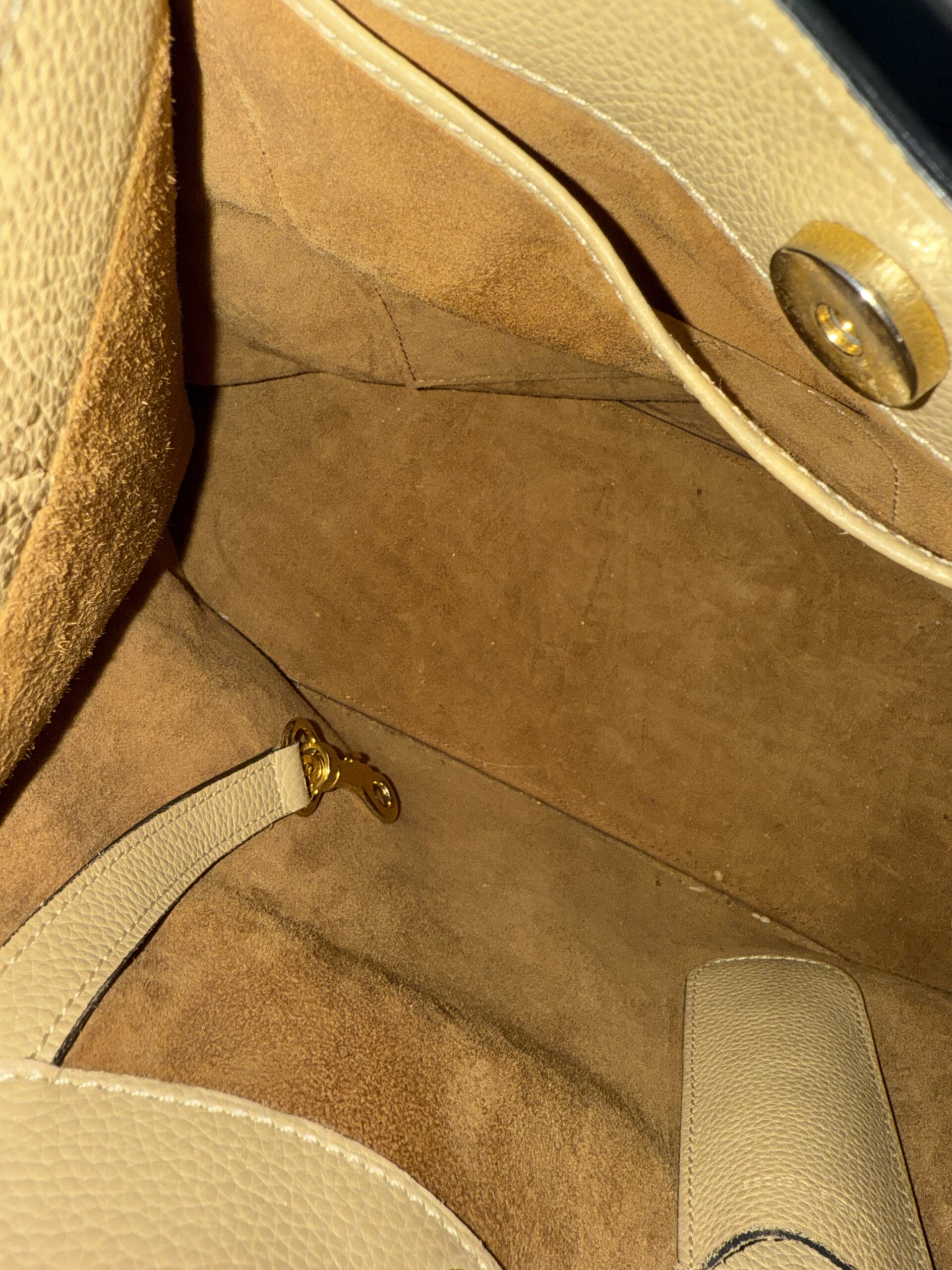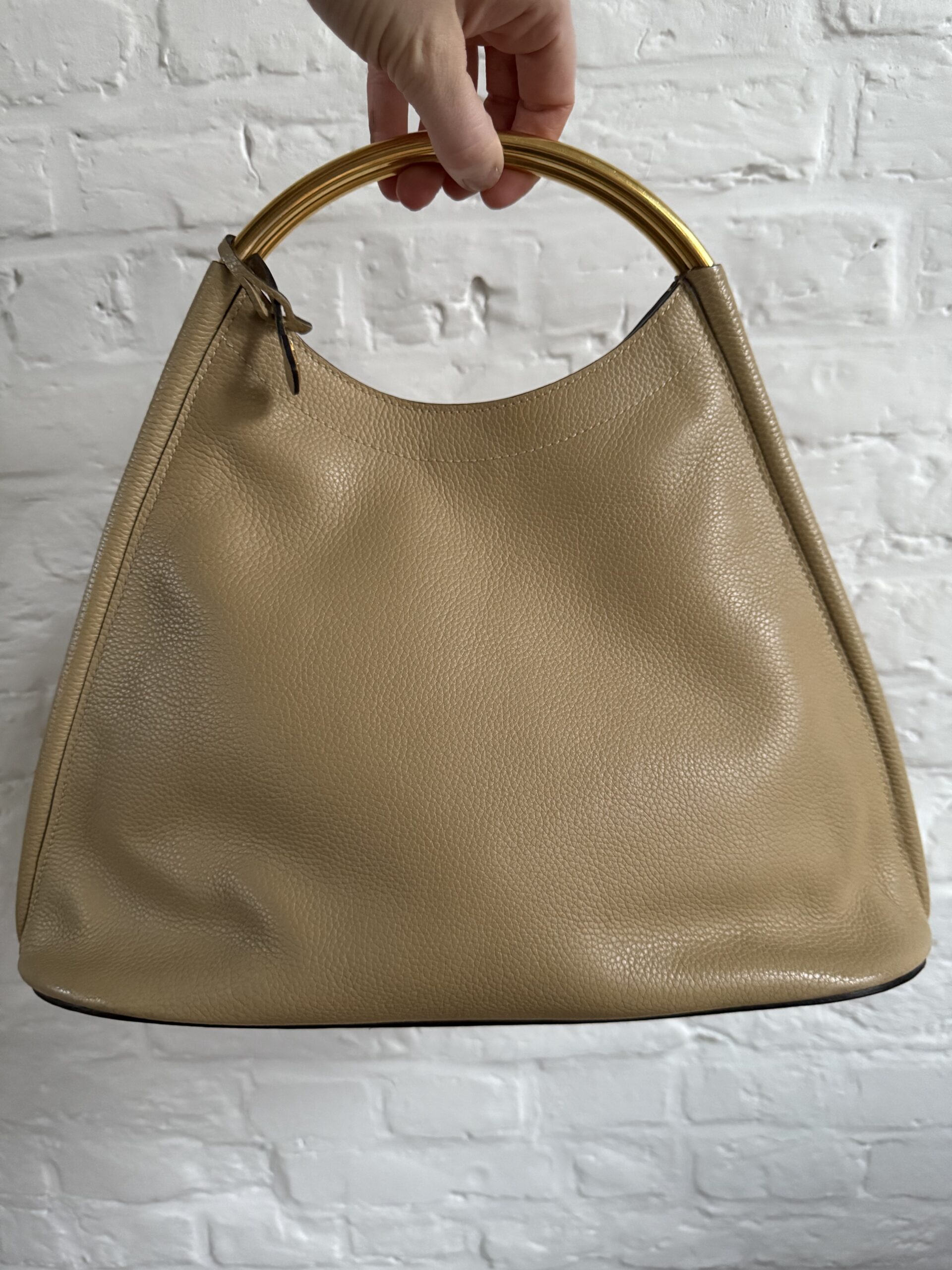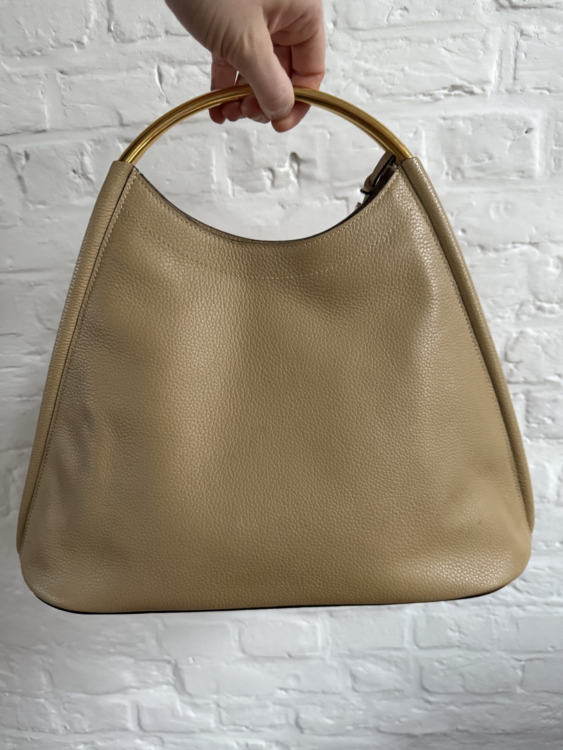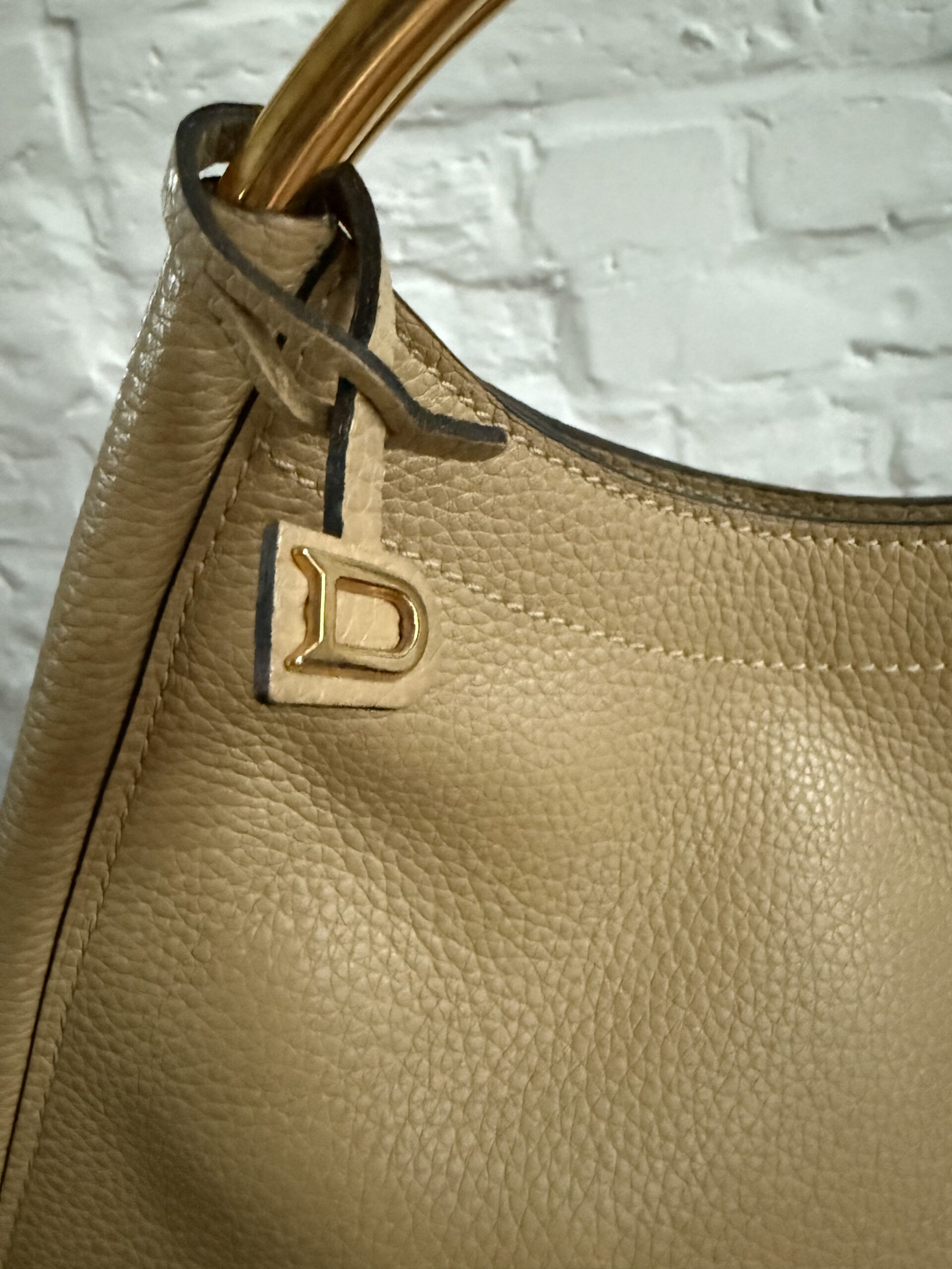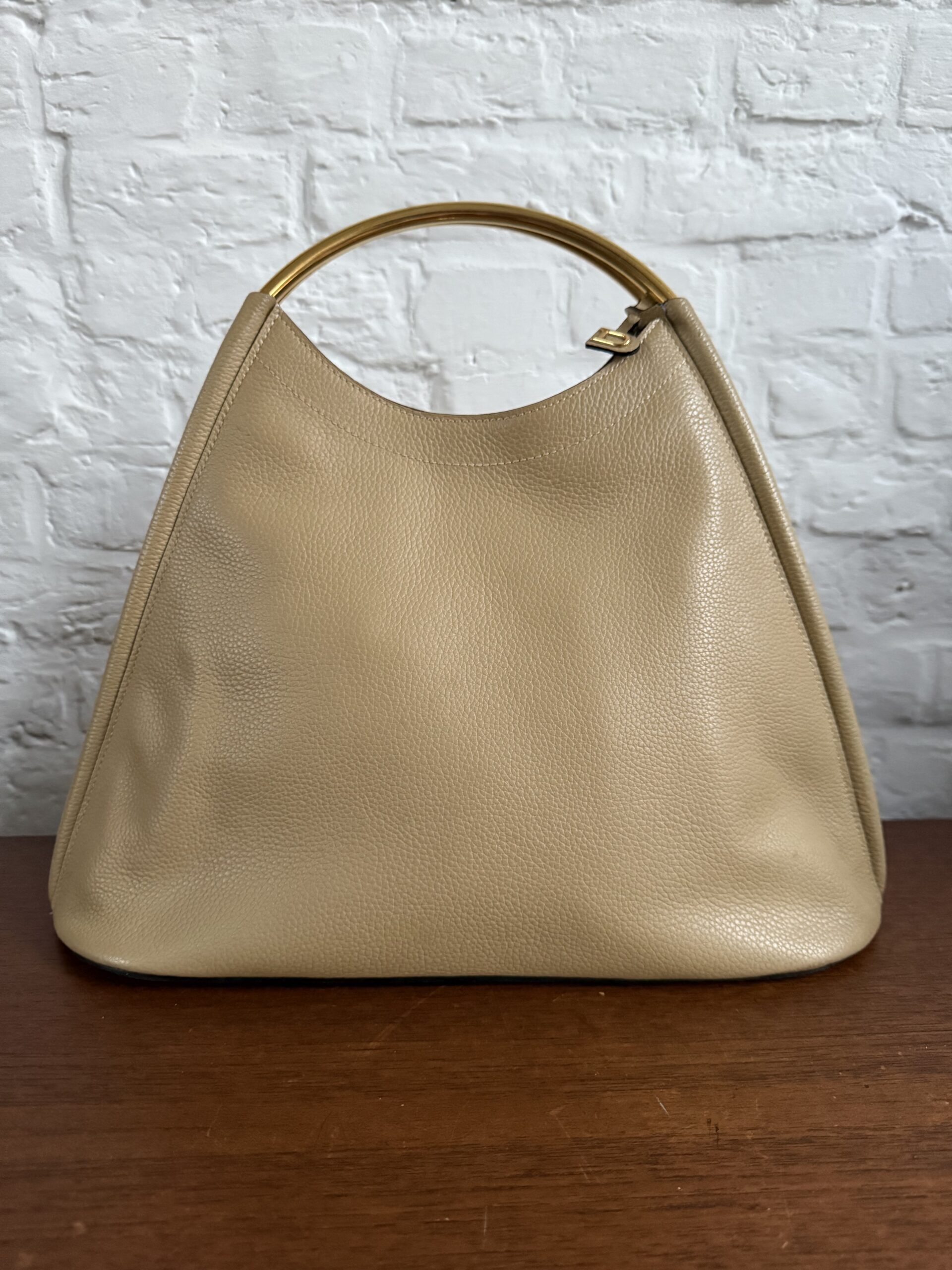 Ze komt in camel met prachtige goudkleurige handgrepen.