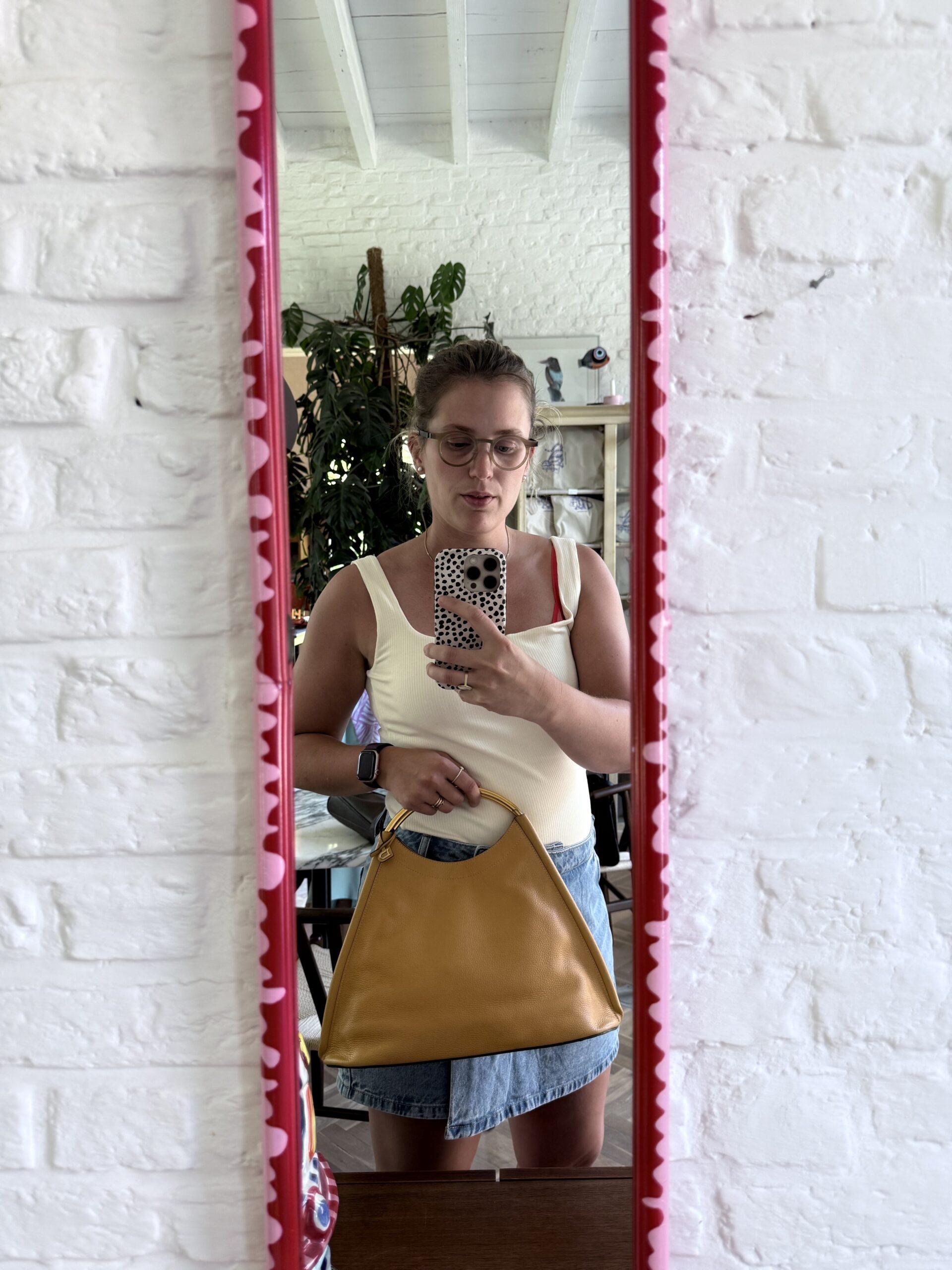 Bij deze tas voel en zie je dat je een authentieke Delvaux in de hand hebt.