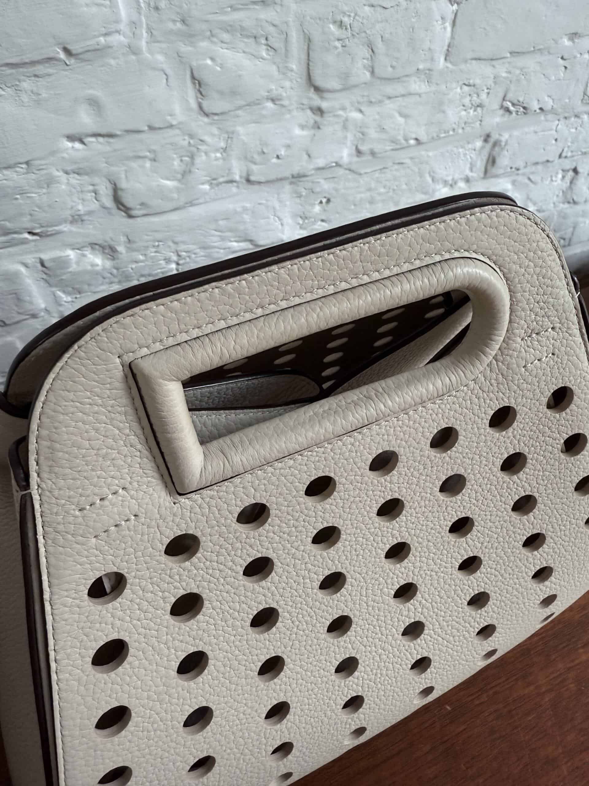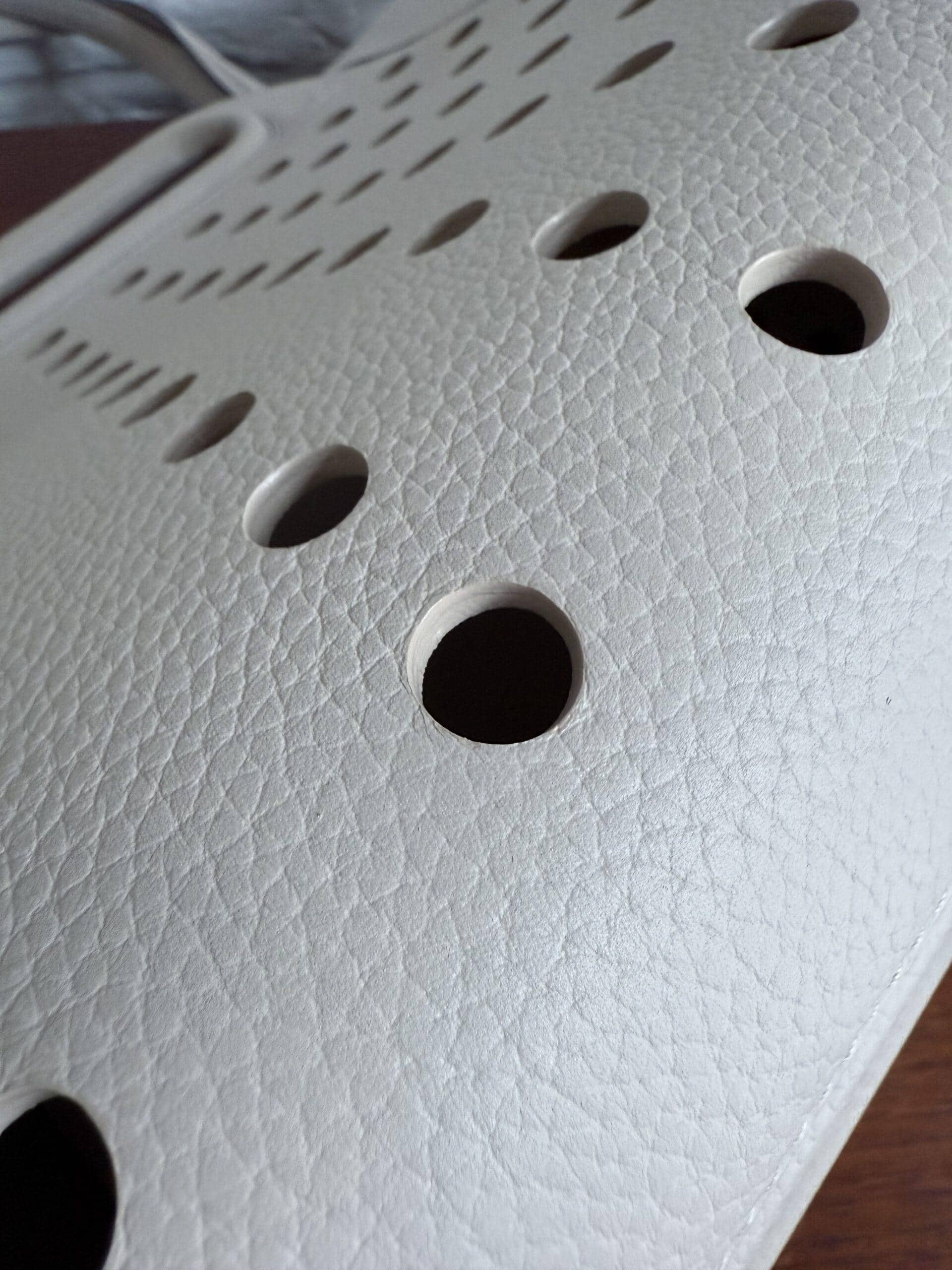 Slim ontworpen met zijn magnetische handle, schouderriemen, maar ook de perforaties zijn een technisch hoogstandje.