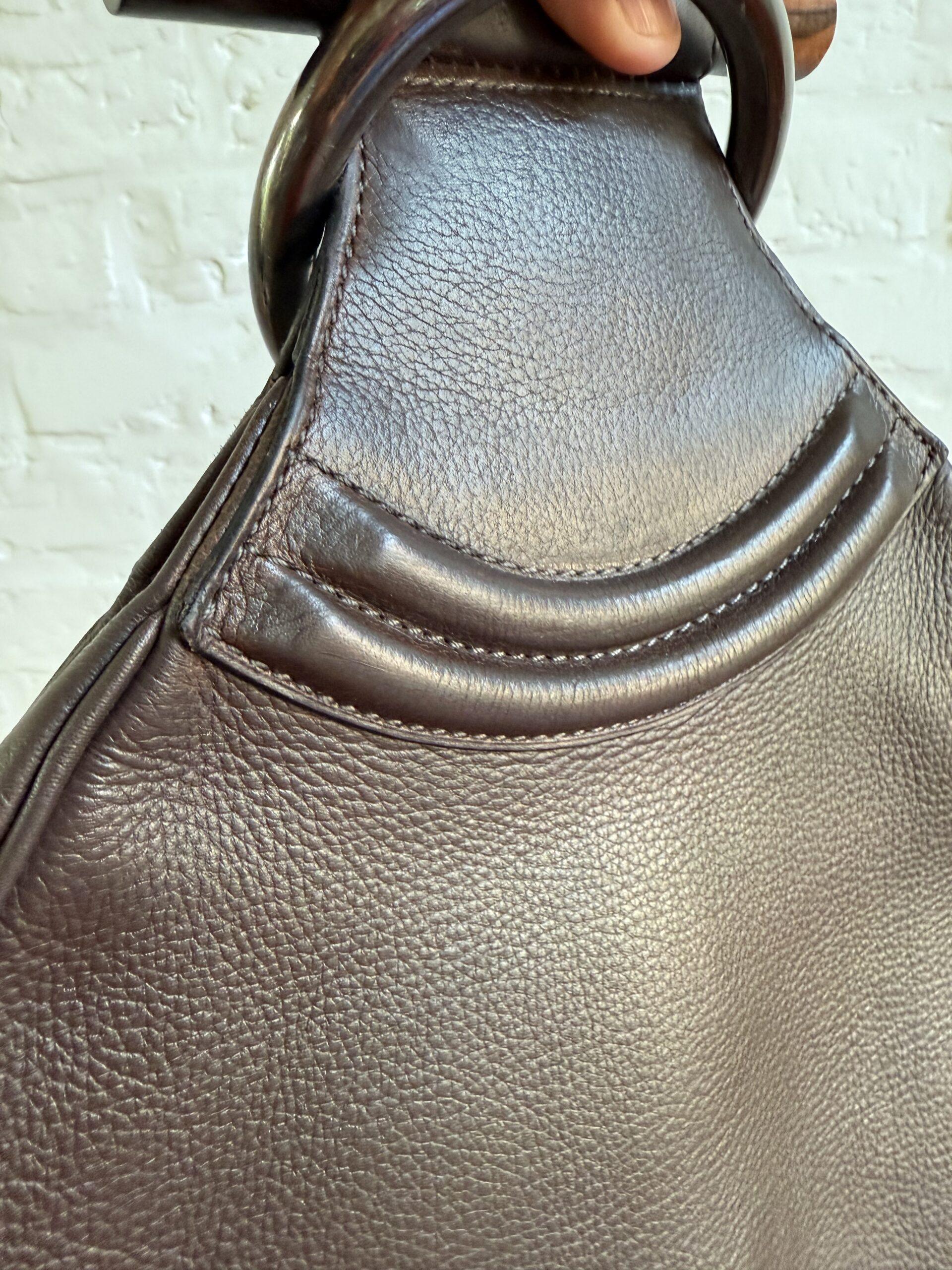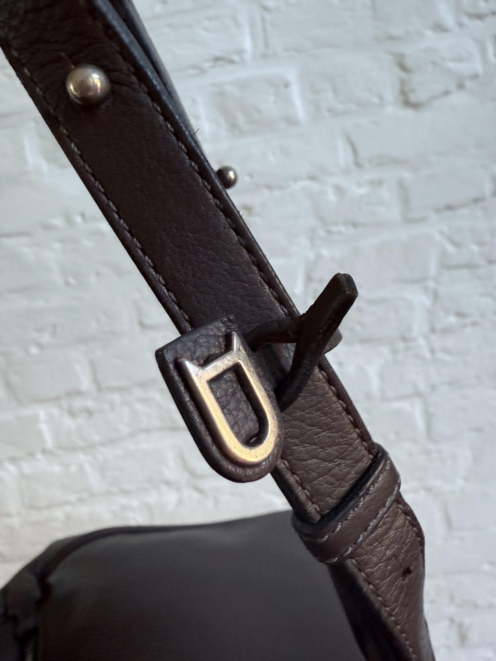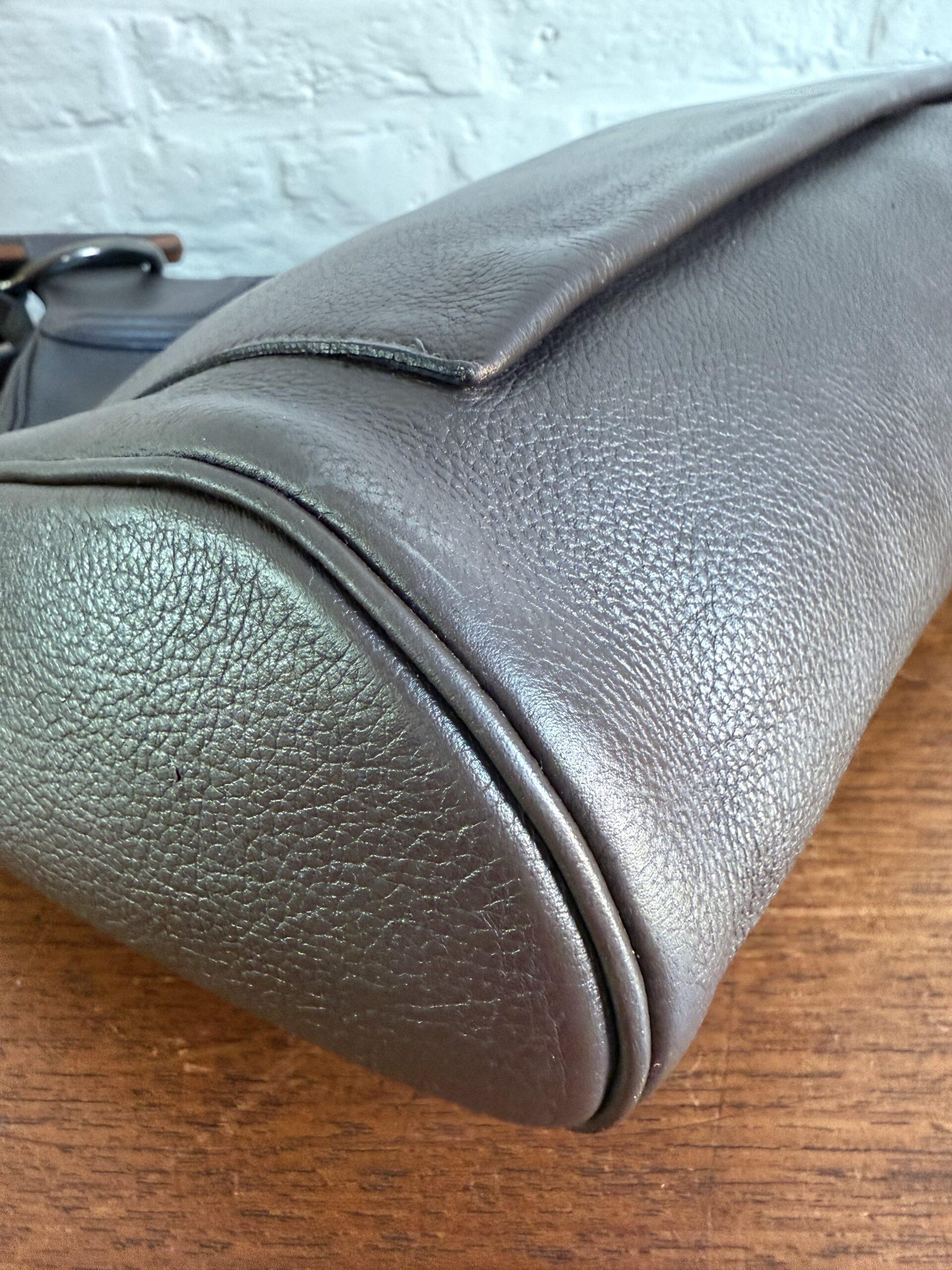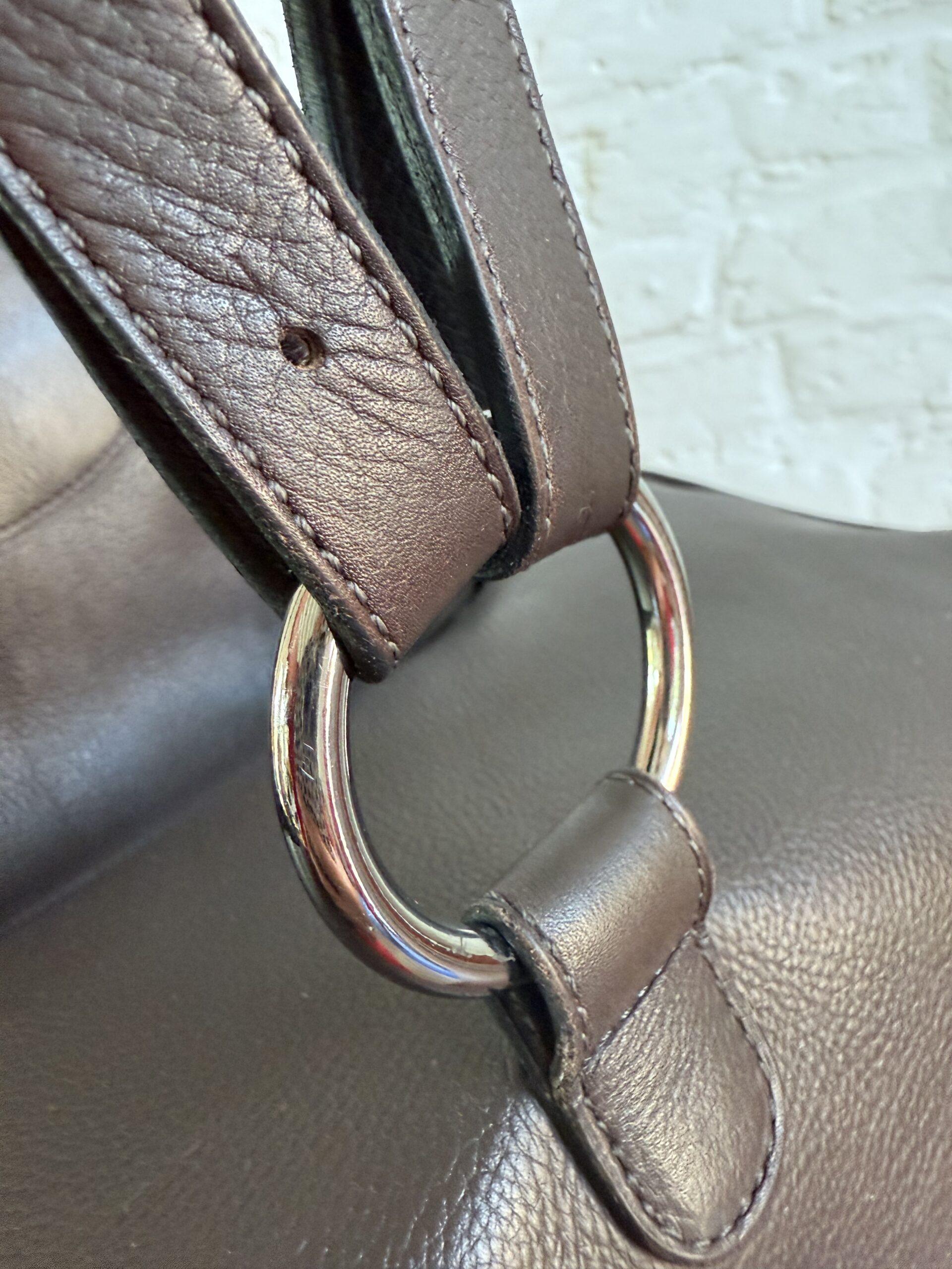 Een rugzakje in bruine jumping calf met mooie details (typisch delvaux!) in palladium en fineer.