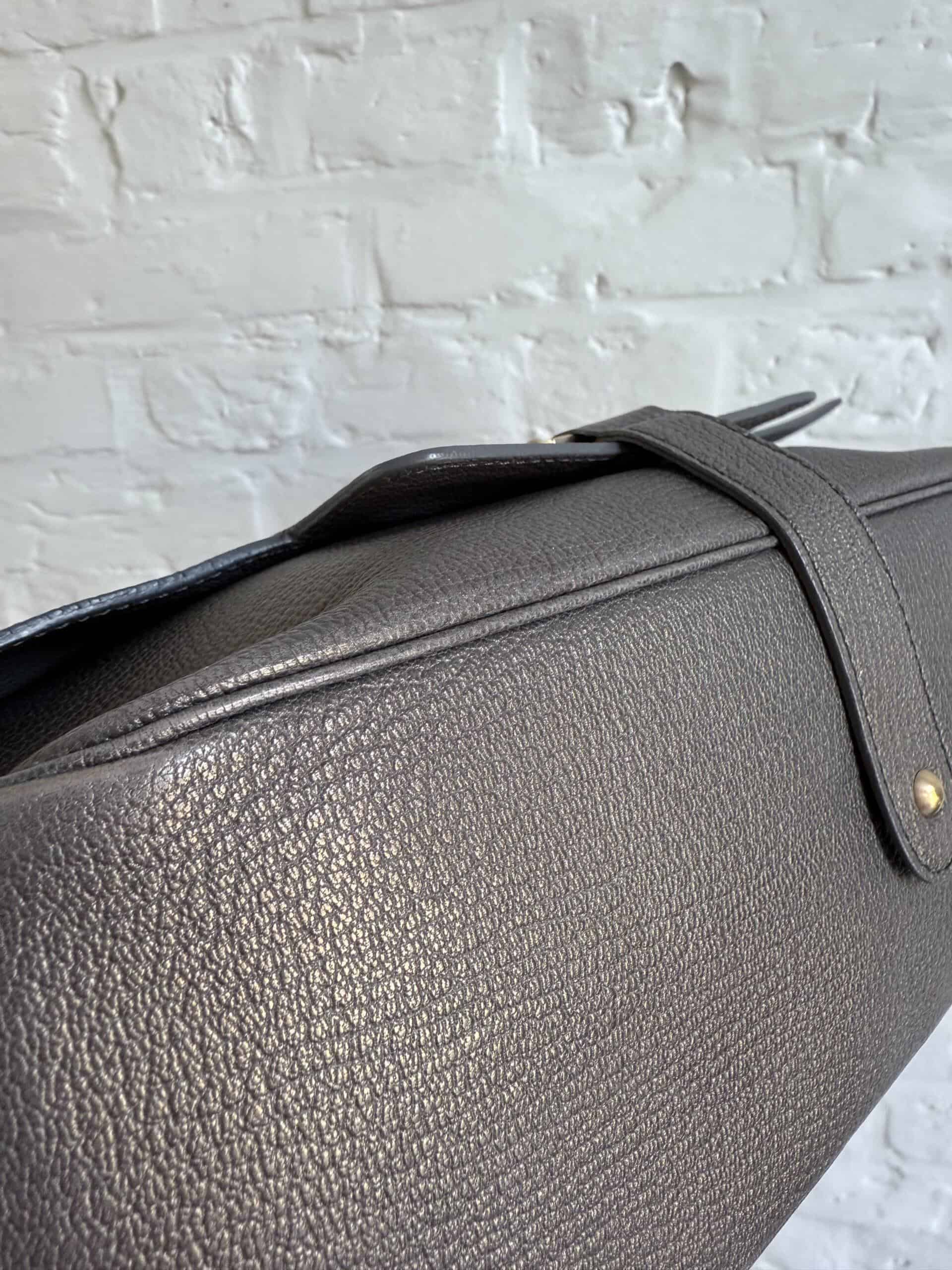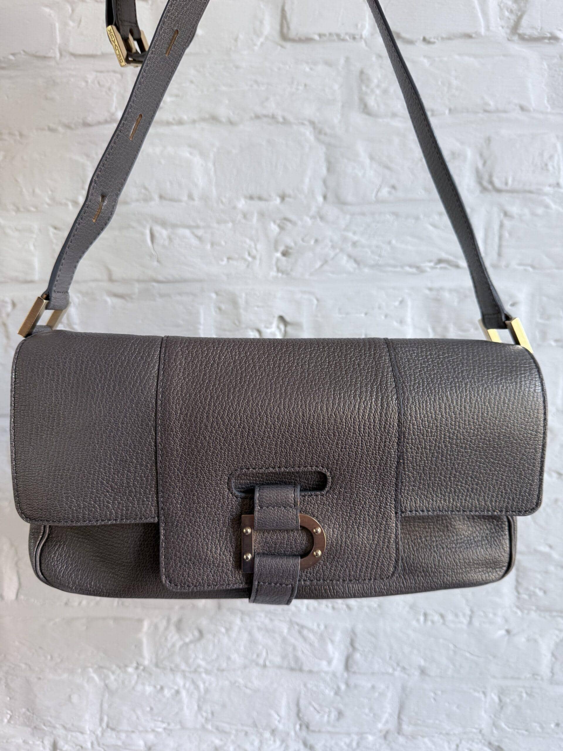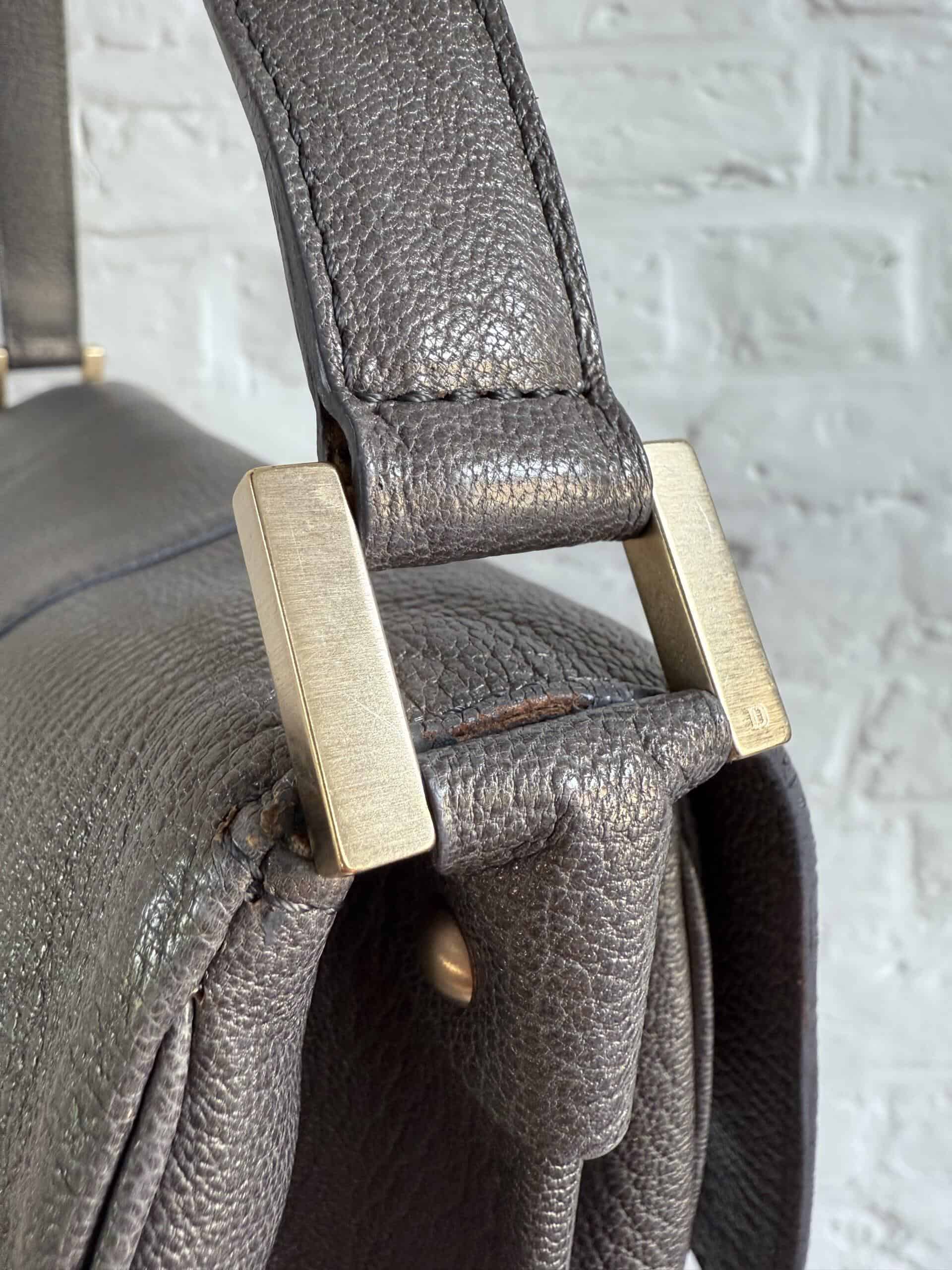 Een handige crossbody uitgevoerd in shimmery grijs geitenleder en afgewerkt met waanzinnige details.