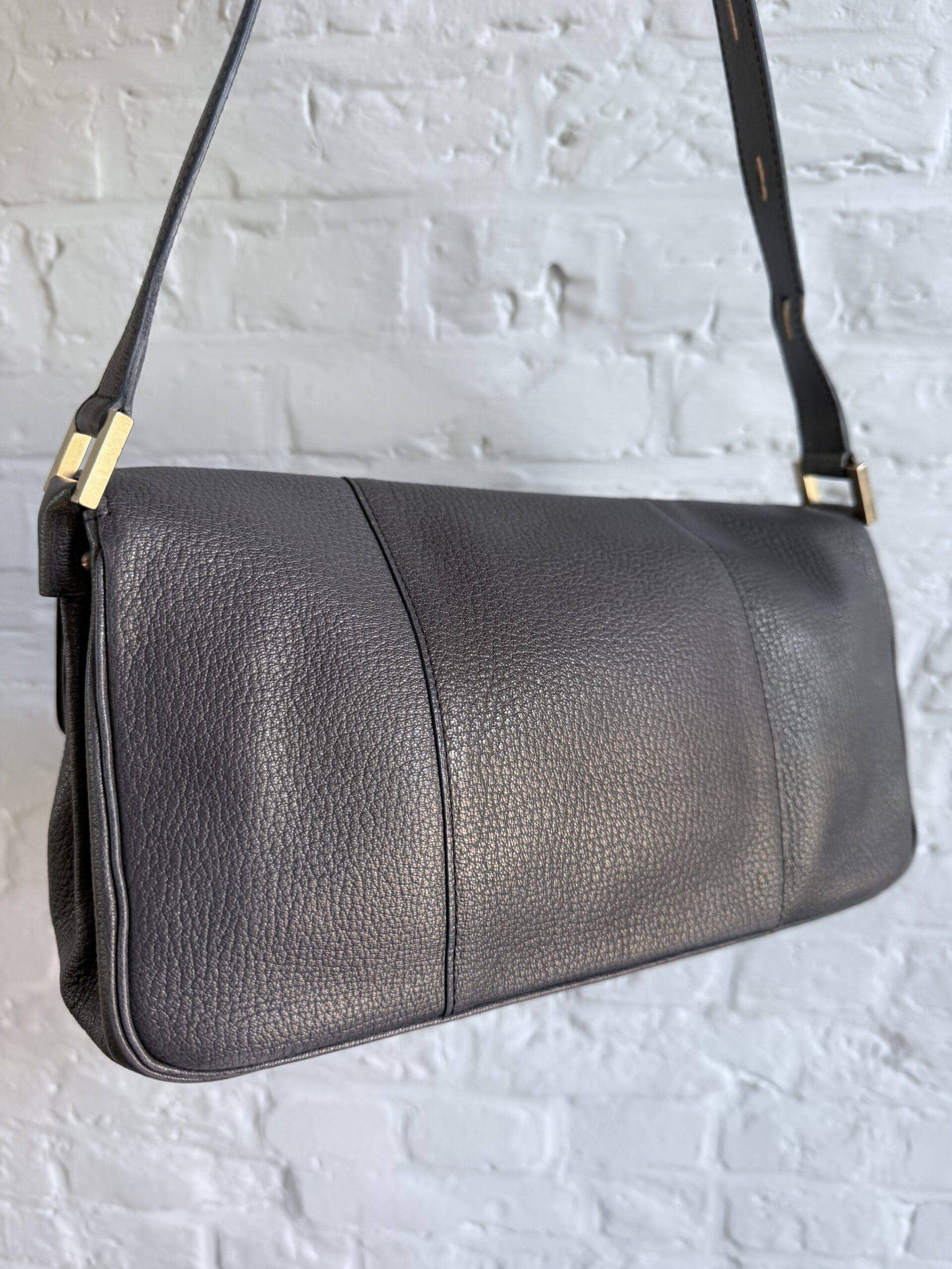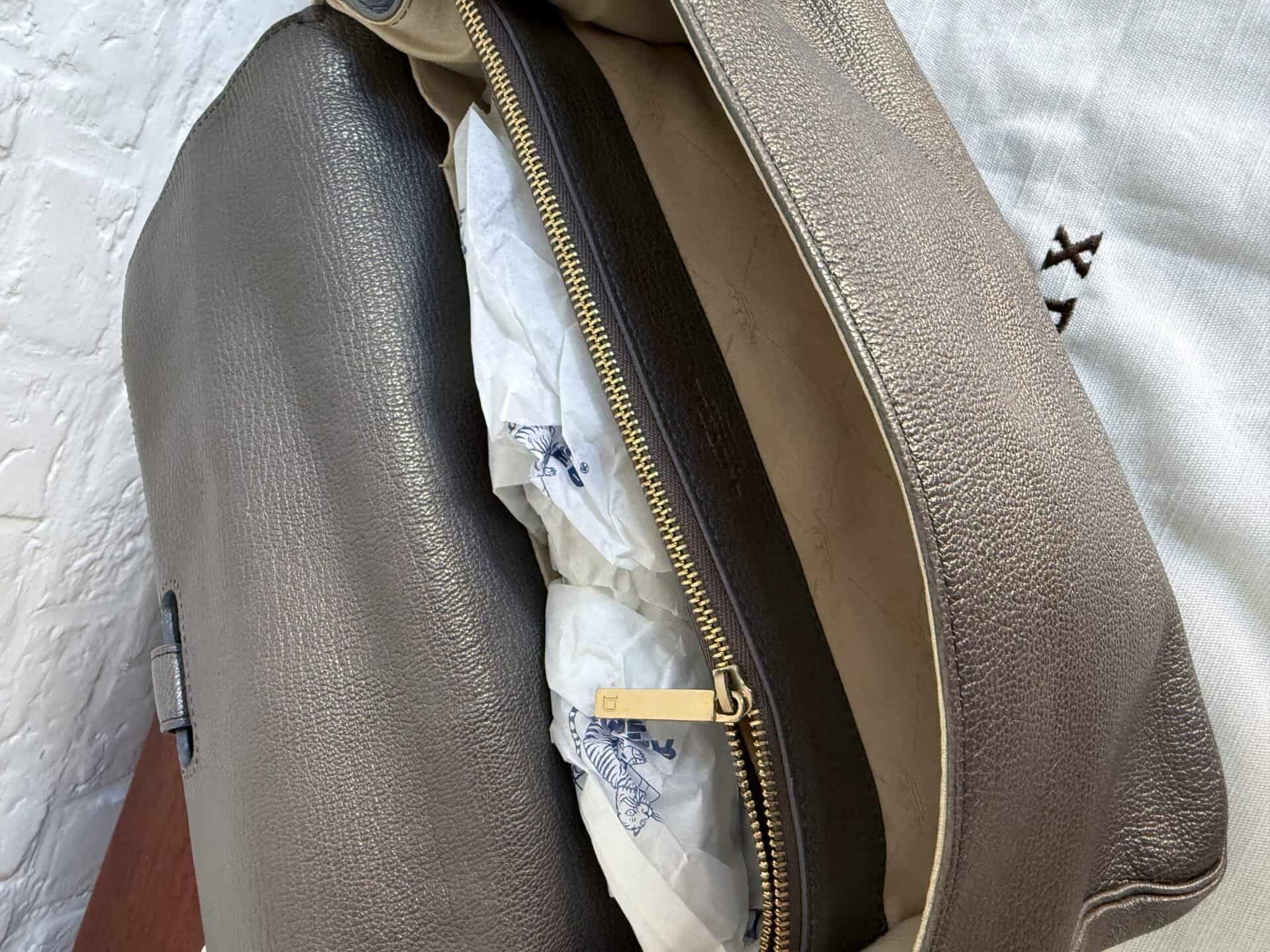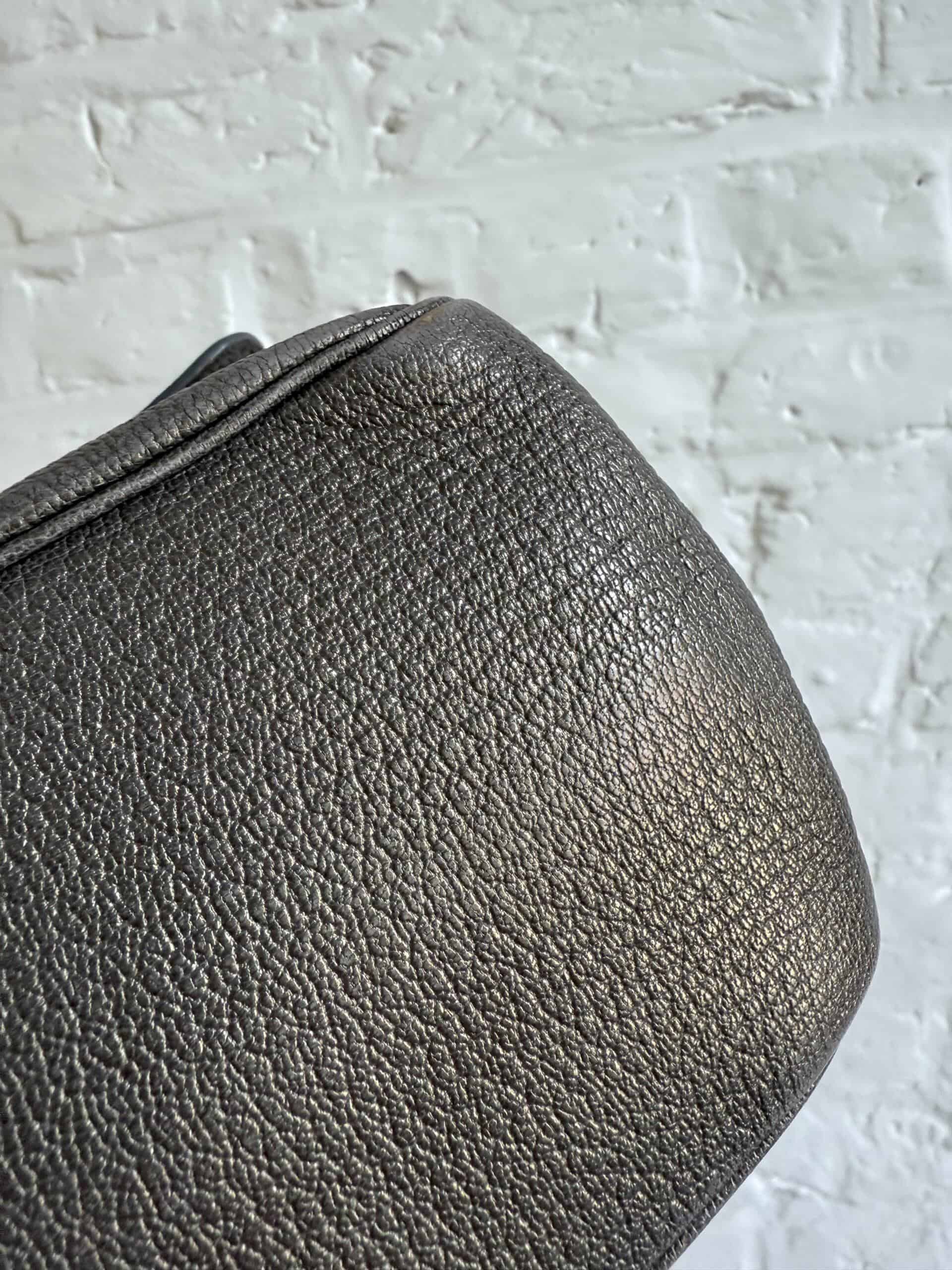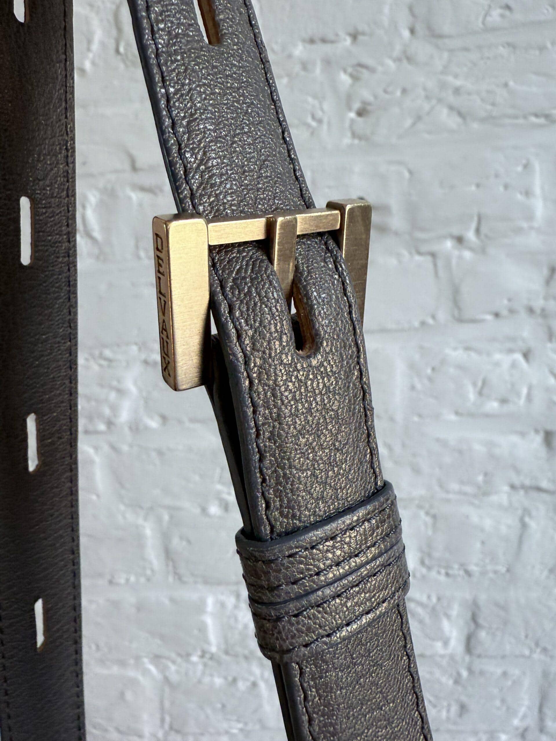 Een handige crossbody uitgevoerd in shimmery grijs geitenleder en afgewerkt met waanzinnige details.