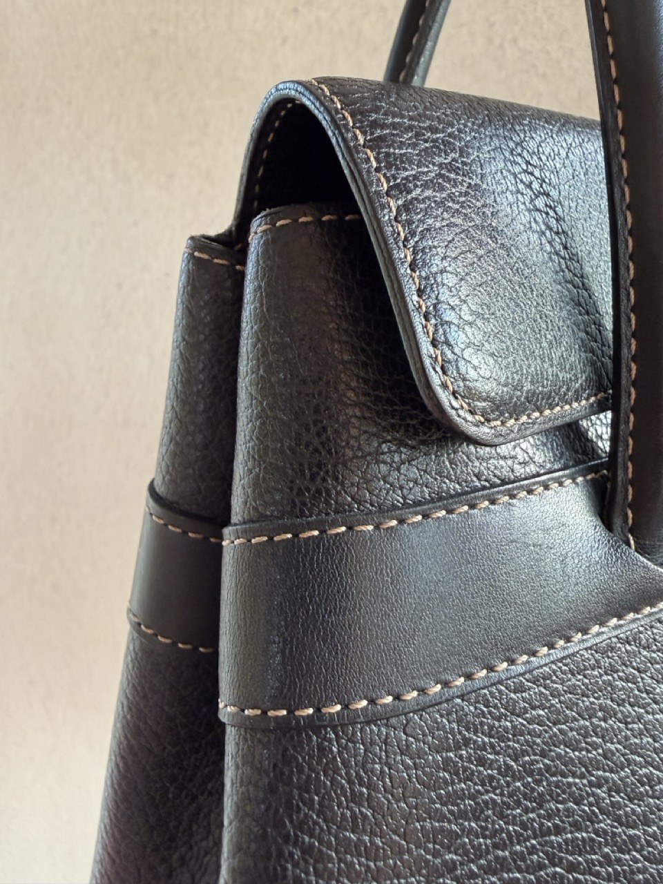 Atelier Mémé besteedt veel tijd en aandacht aan het zorgvuldig selecteren en, indien nodig, retoucheren van originele Delvaux handtassen. De tas is zo correct mogelijk in beeld gebracht met imperfecties die horen bij de vintage staat en manuele ambacht van zowel de Delvauxtas als de ambacht van het restaureren.