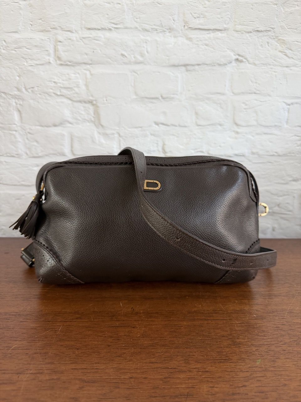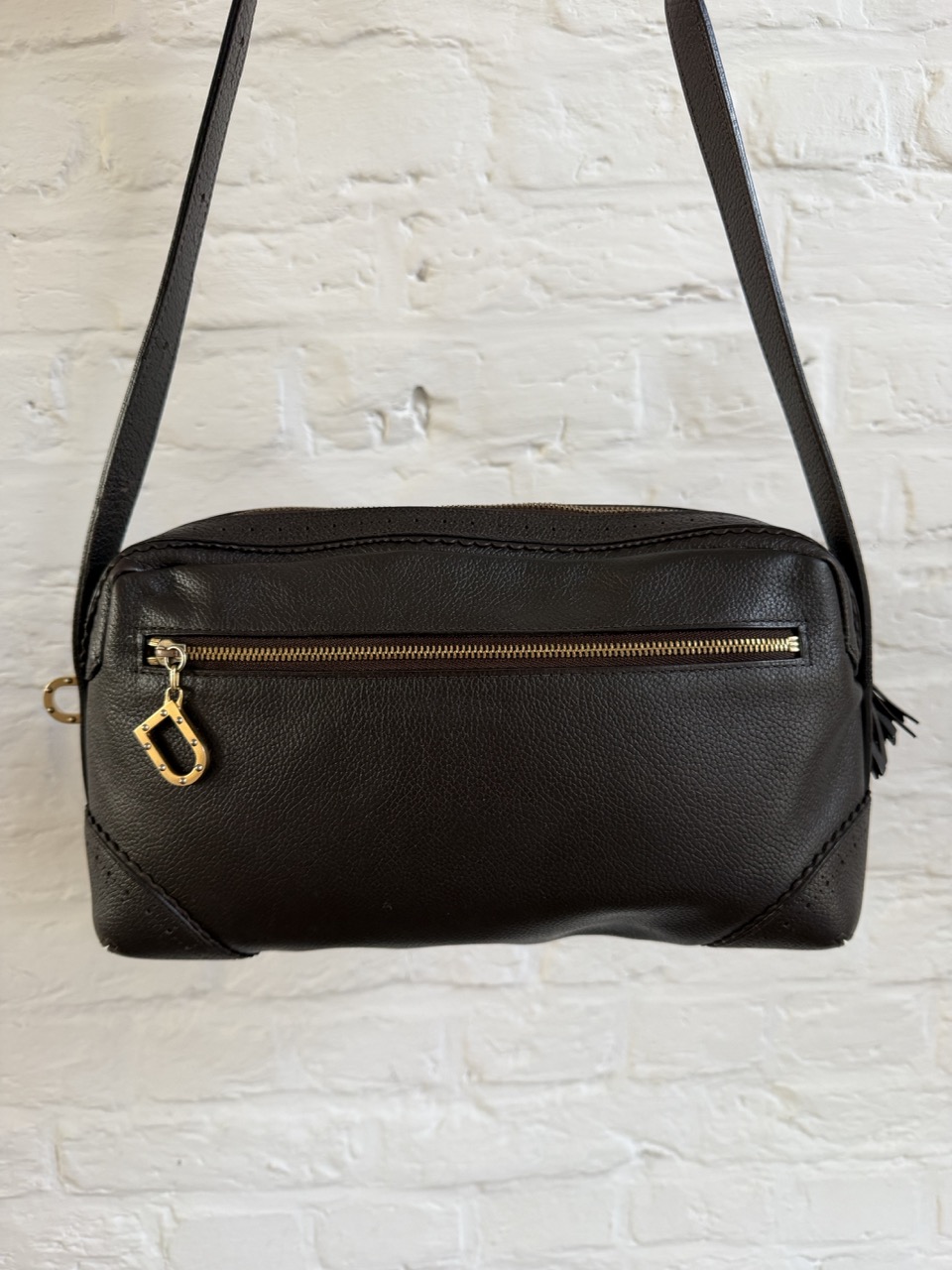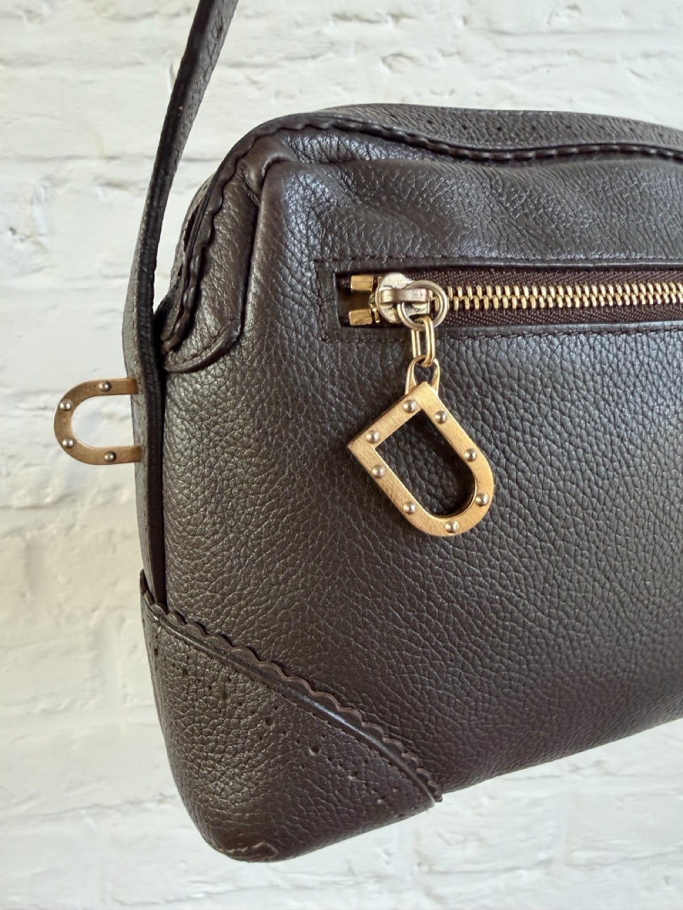 Een handige crossbody uitgevoerd in Café jumping calf  en afgewerkt met waanzinnige details, zo eigen aan Delvaux.