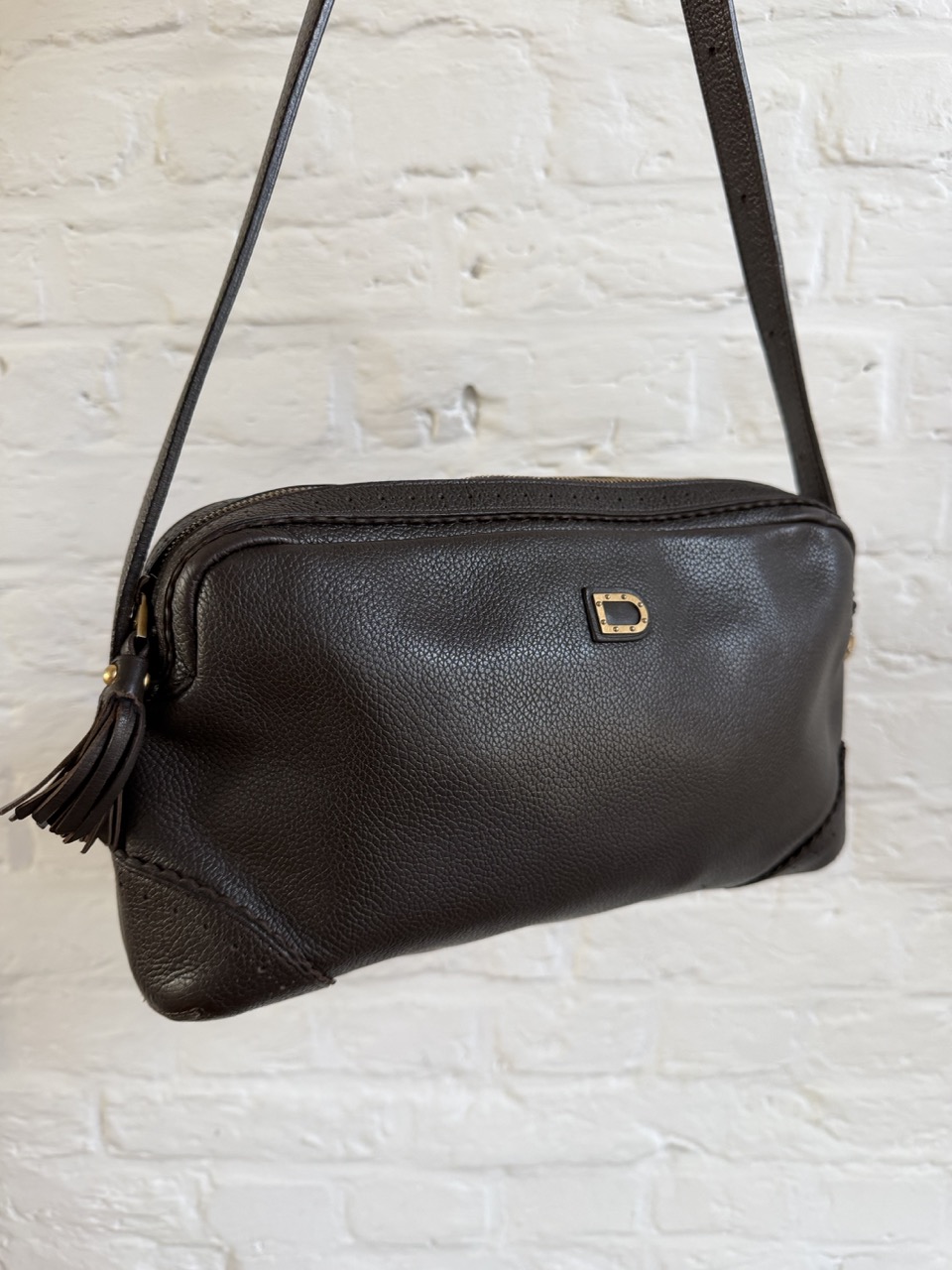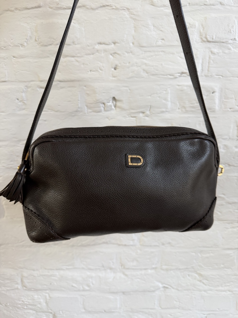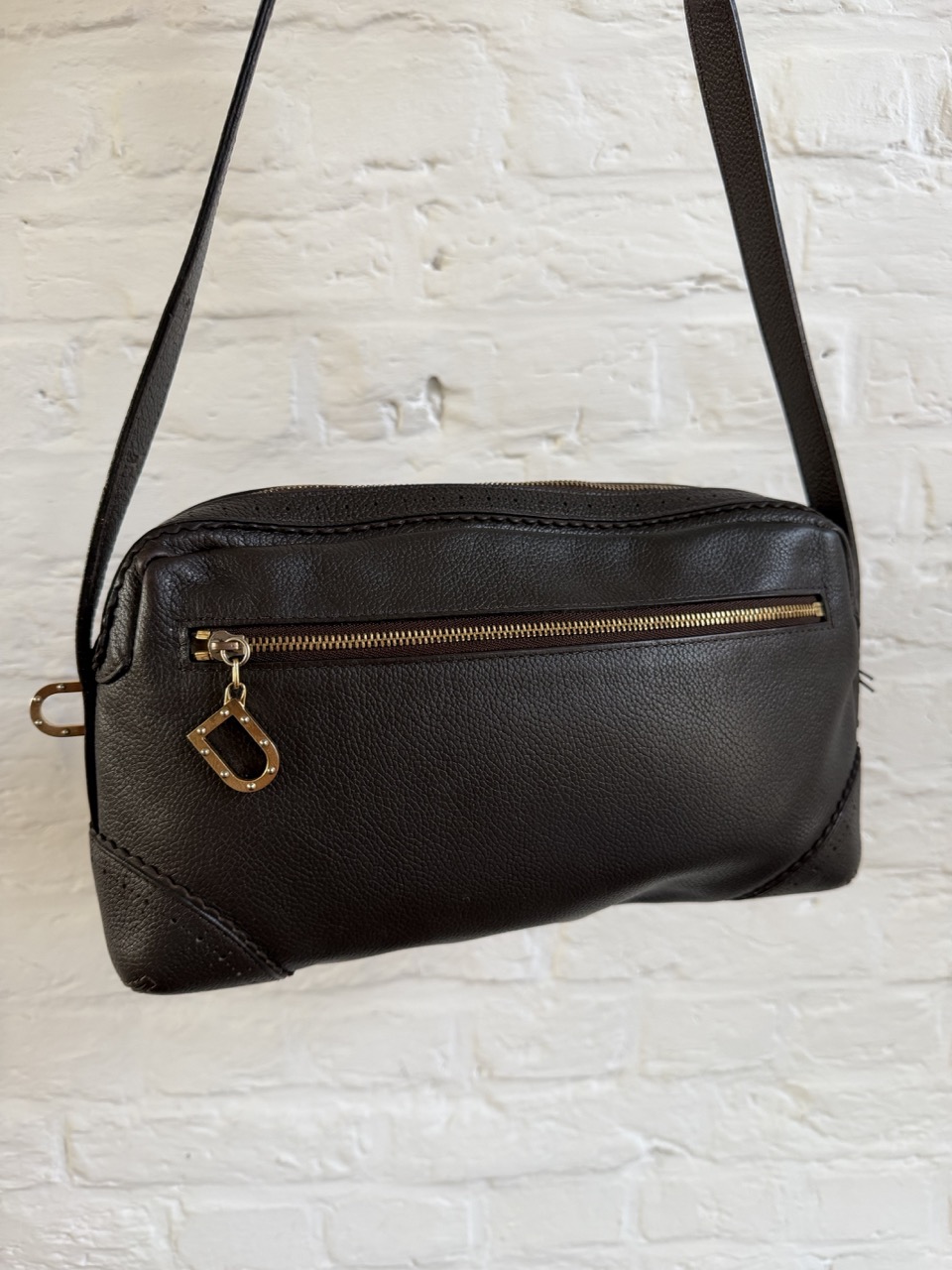 Een handige crossbody uitgevoerd in Café jumping calf  en afgewerkt met waanzinnige details, zo eigen aan Delvaux.