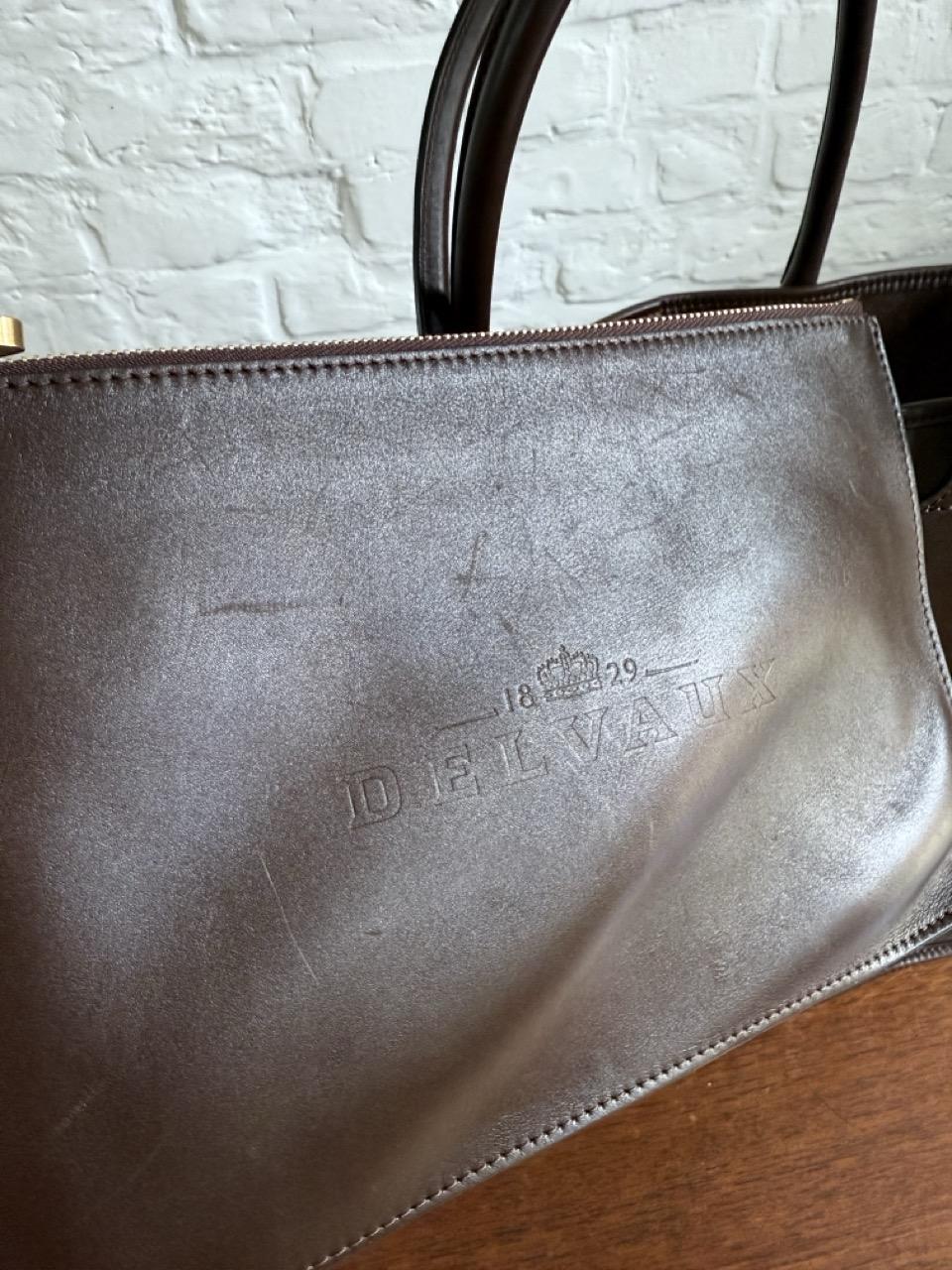 Atelier Mémé besteedt veel tijd en aandacht aan het zorgvuldig selecteren en, indien nodig, retoucheren van originele Delvaux handtassen. De tas is zo correct mogelijk in beeld gebracht met imperfecties die horen bij de vintage staat en manuele ambacht van zowel de Delvauxtas als de ambacht van het restaureren.