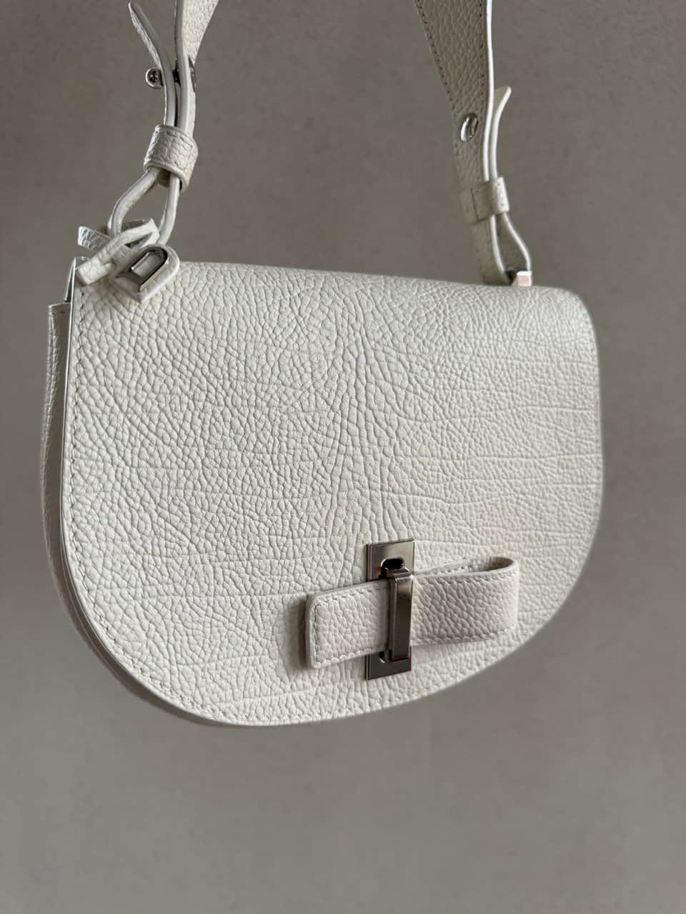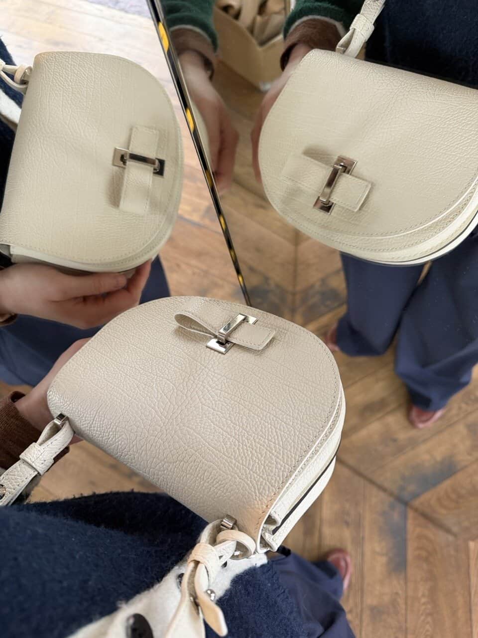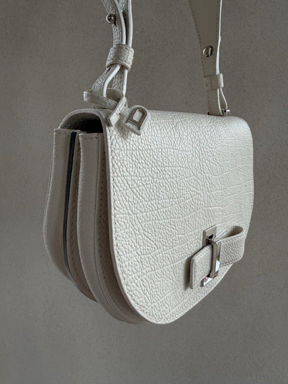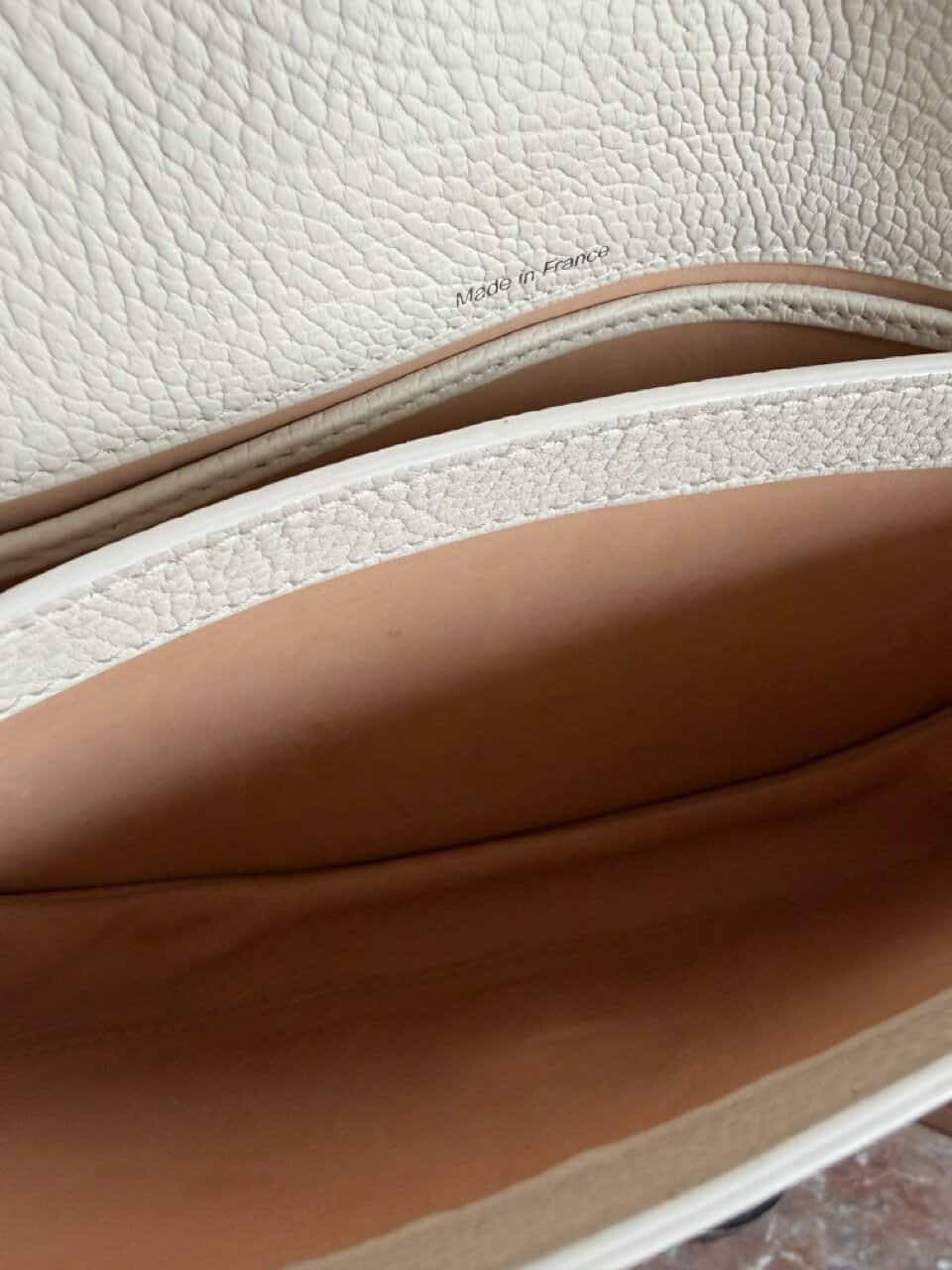 Le Mutin mini in crispy calf in ivoorkleur met zilveren hardware. De beste combinatie! Delvaux beschrijft de Mutin als een crossbody voor de dynamische vrouw. Zijn ledersoort -crispy calf- is ook heel bewust gekozen om deze reden: onverwoestbaar voor het dagelijkse gebruik (en ook de allermooiste ledersoort als je het mij vraagt). Ze bestaat uit 2 compartimenten met steekzakje en ook aan de achterzijde heeft de Mutin een onzichtbare steekzak om je essentials binnen handbereik te hebben.