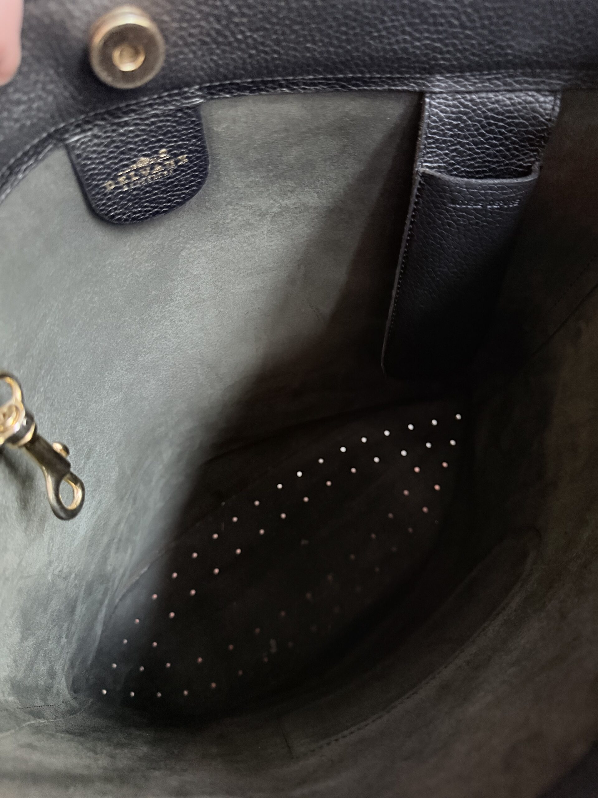 De tas werd volledig gerestaureerd en ziet er ongelofelijk goed uit. Het leder is stevig, de onderzijde mooi gebogen en hij gaat open met een magneet!
