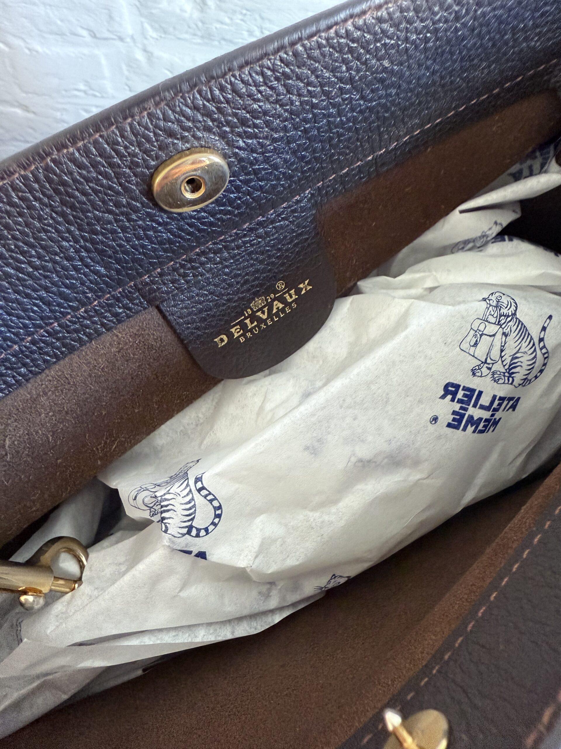 Atelier Mémé besteedt veel tijd en aandacht aan het zorgvuldig selecteren en, indien nodig, retoucheren van originele Delvaux handtassen. De tas is zo correct mogelijk in beeld gebracht met imperfecties die horen bij de vintage staat en manuele ambacht van zowel de Delvauxtas als de ambacht van het restaureren.
